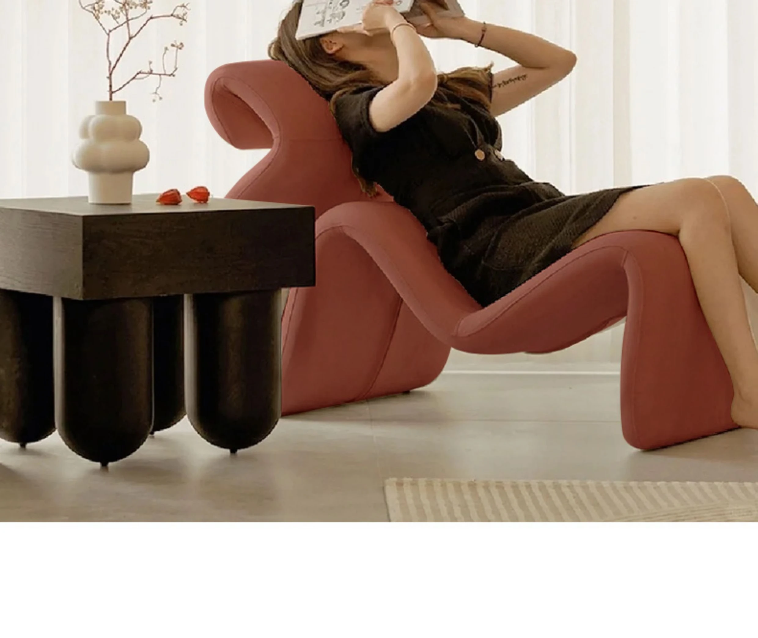北欧デザインの現代的なミルクベルベット異形リクライニングチェア、抽象的なミニマリズムの折り紙スタイル、軽やかでラグジュアリーなクリエイティブなソファ、リラックスできる完璧な選択!