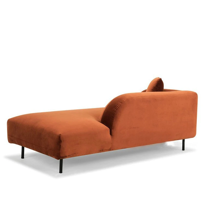 北欧スタイルのラグジュアリーな貴妃椅子 - シンプルで現代的なデザイン、エルメスオレンジのベルベット生地を使用した美しい寝椅子。寝室にぴったりの贅沢なリラックス空間を演出します!