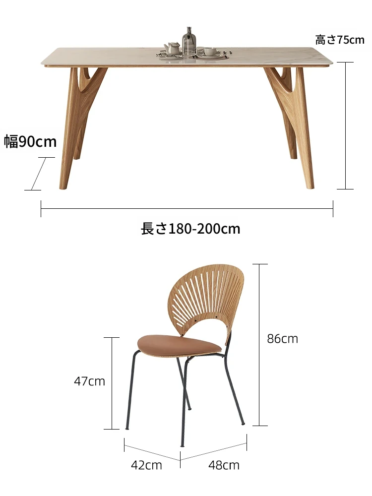 【12mm岩板】2.0メートルフライングバードダイニングテーブル