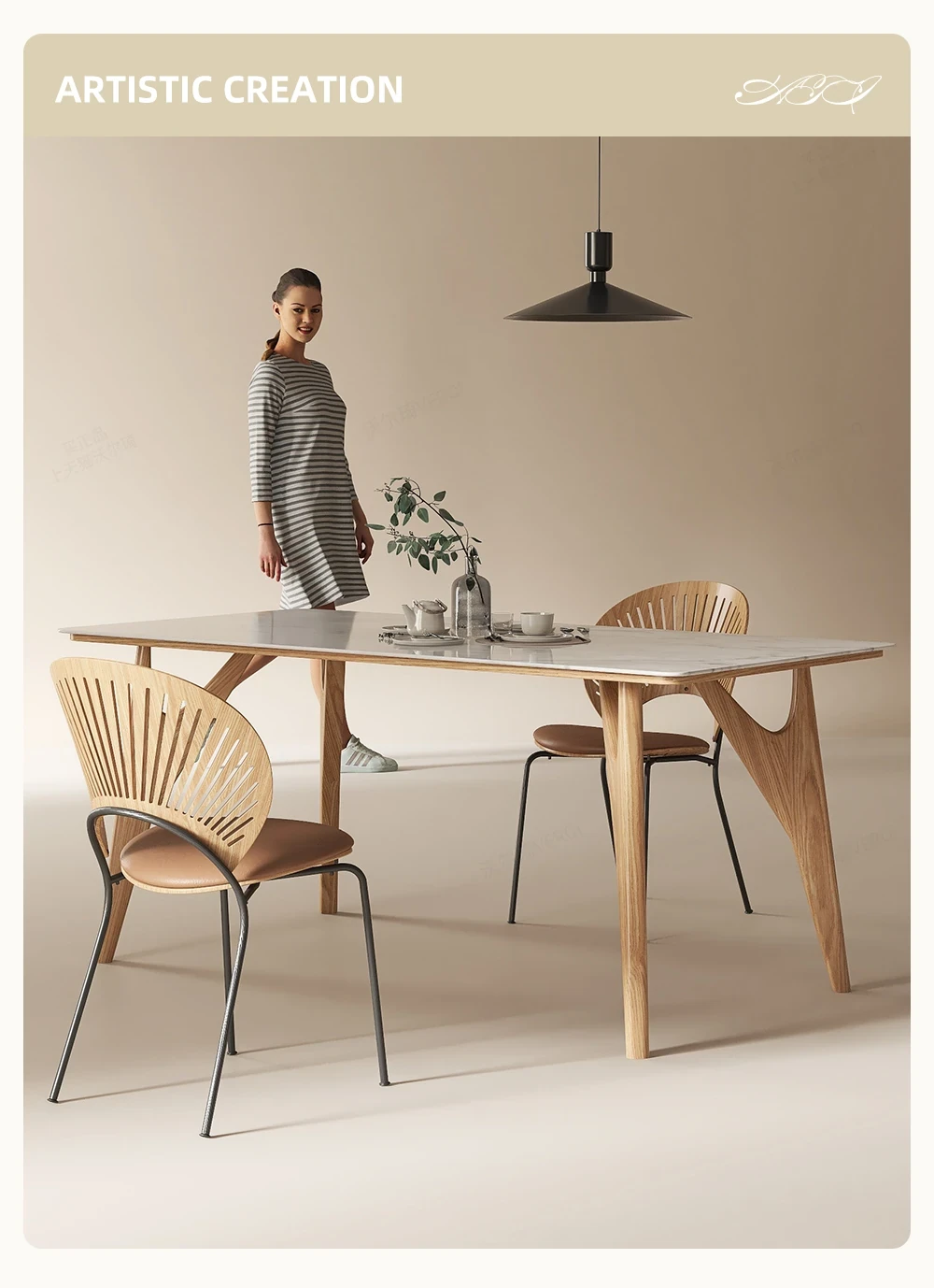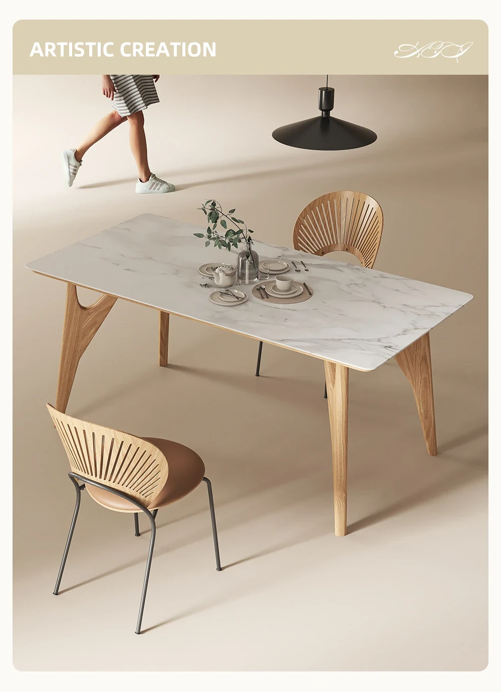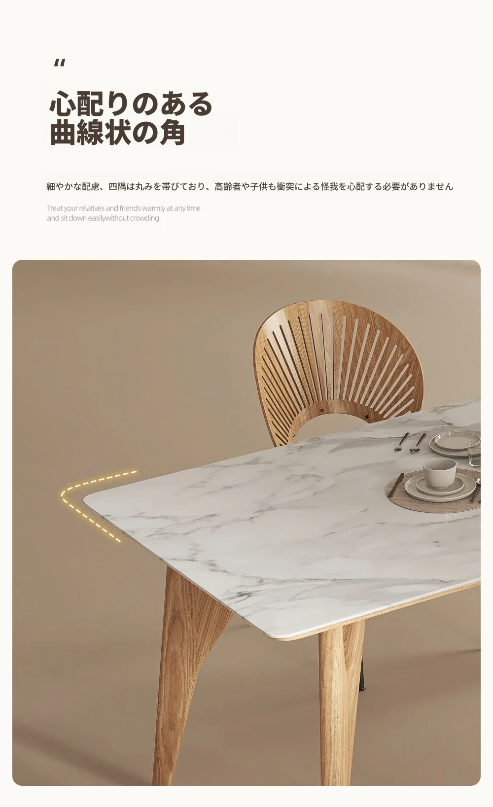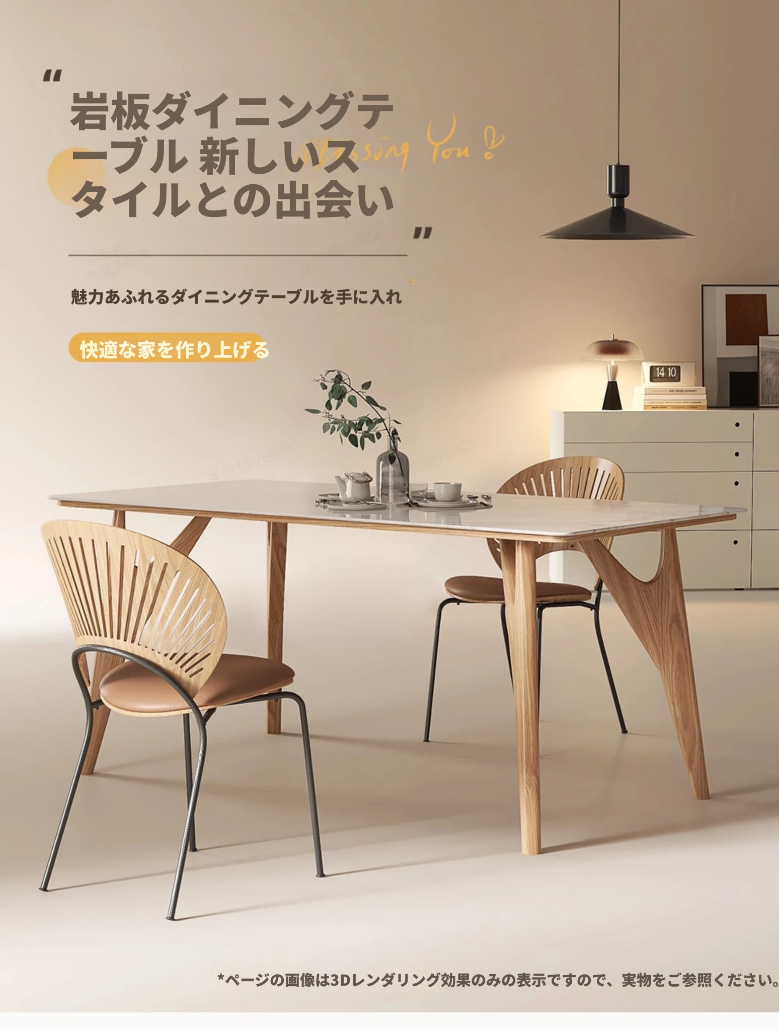 北欧スタイルの飛鳥ダイニングテーブル - 実木と岩板のコンビネーション、シンプルでモダンなデザイン。小型住宅にもぴったりの多機能デスクセット。家族や友人との素敵な食事の時間を演出します!