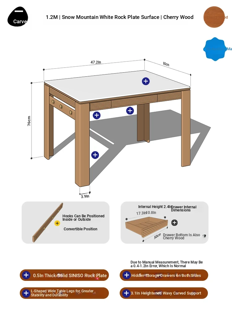 [Cherry Wood | No Auxiliary Material] 47.24 in Snow Mountain White Rock Slab | With Power Track