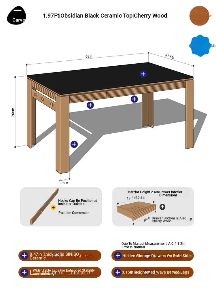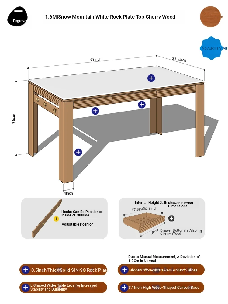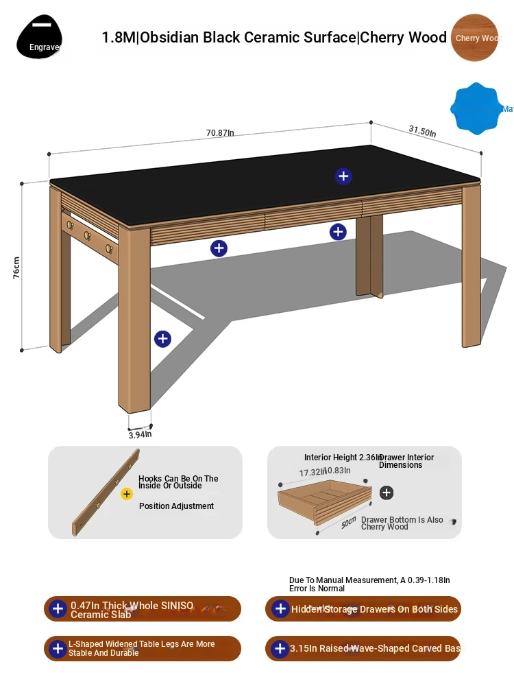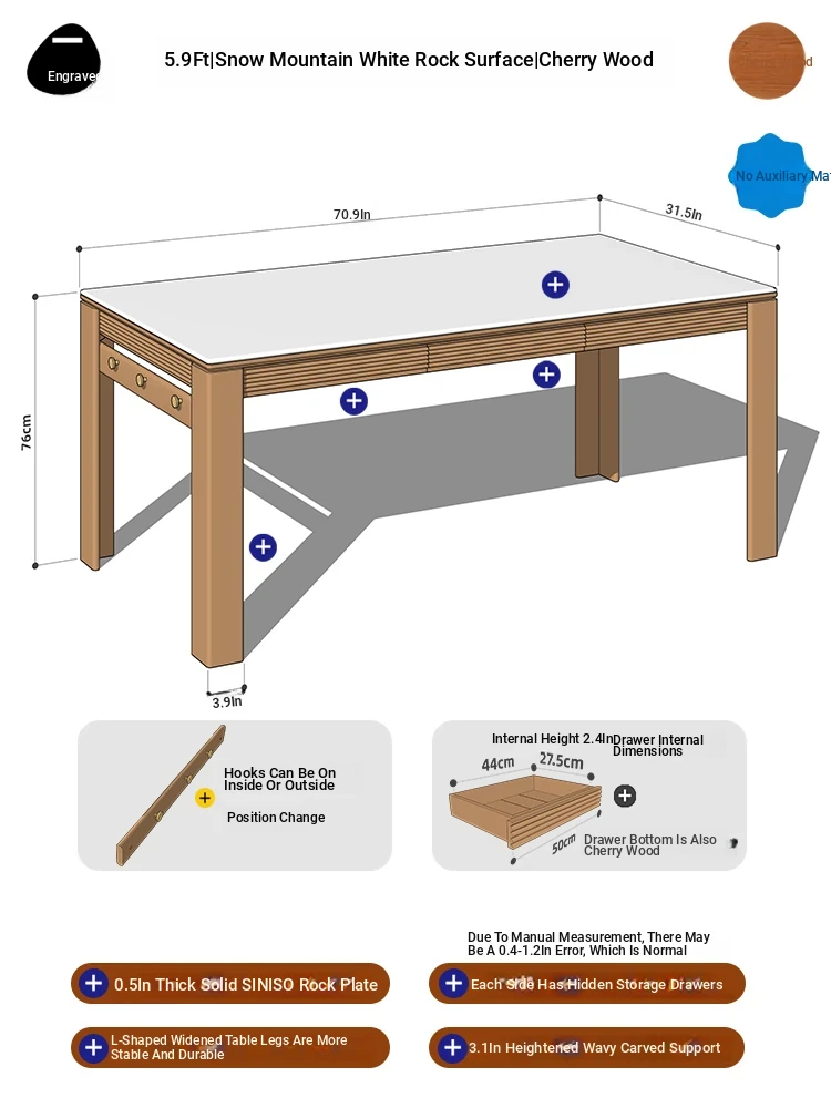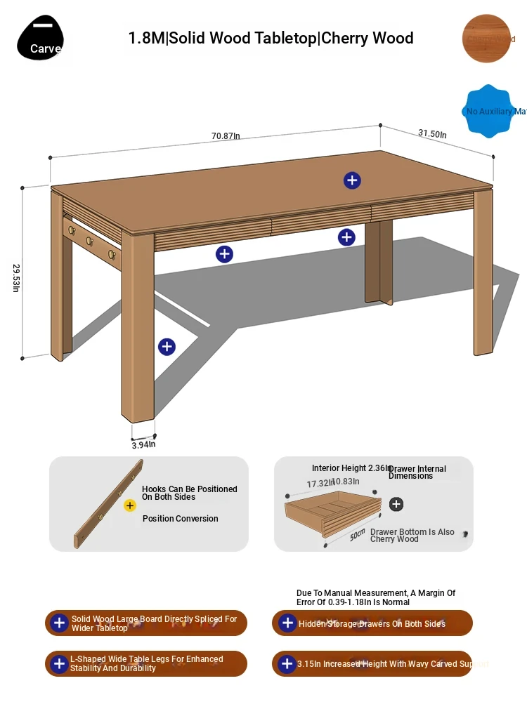 [Cherry Wood | No Auxiliary Material] 70.87 in Cherry Wood Surface | No Power Track