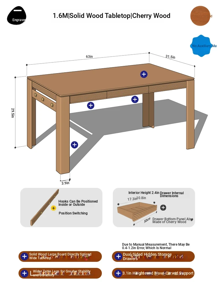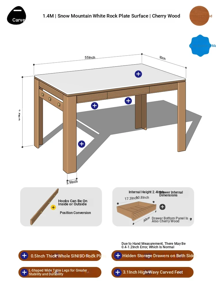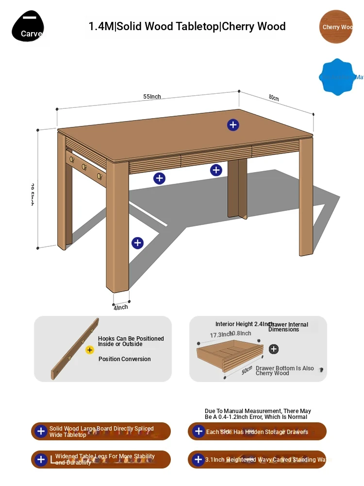 [Cherry Wood | No Auxiliary Material] 55.12 in Cherry Wood Surface | No Power Track