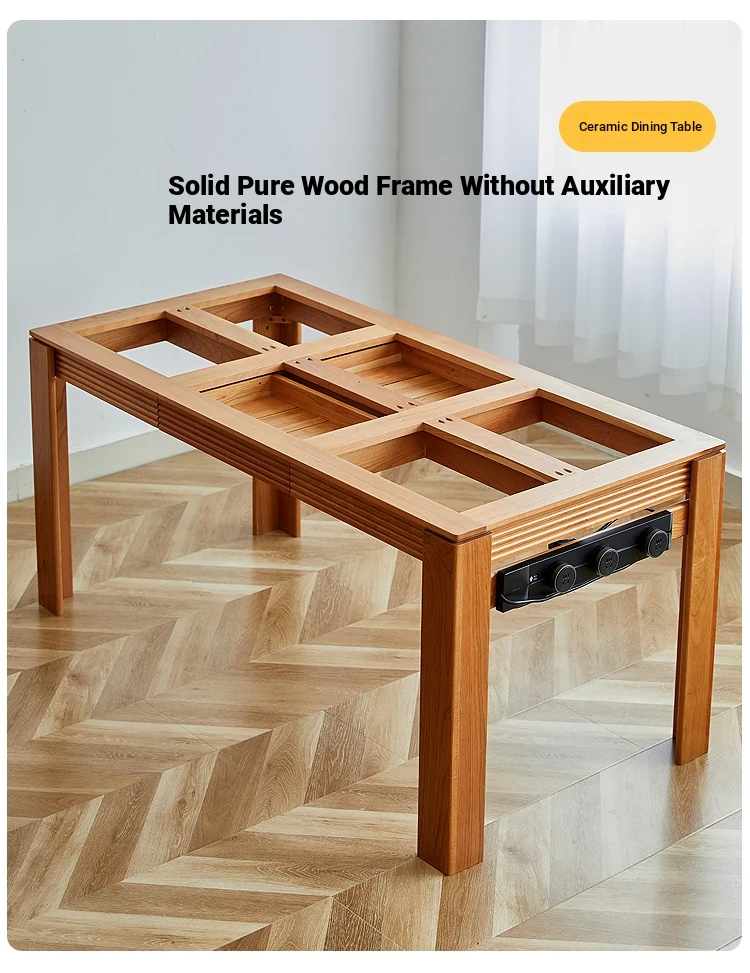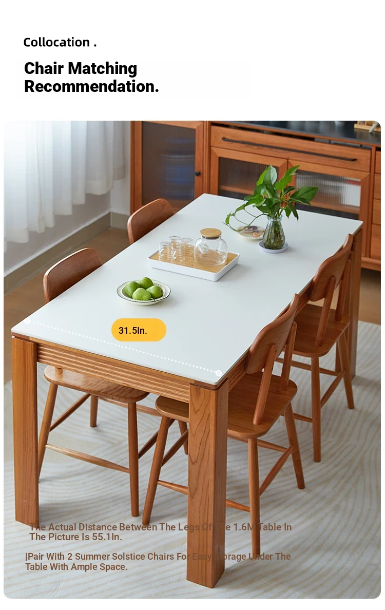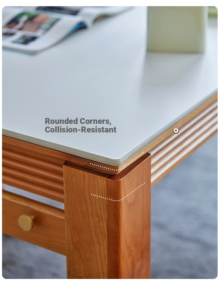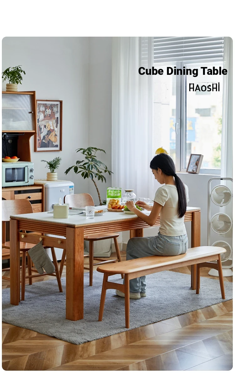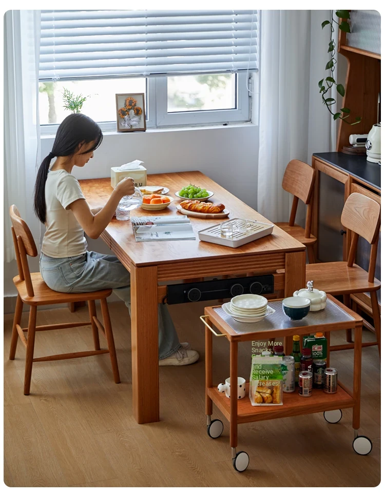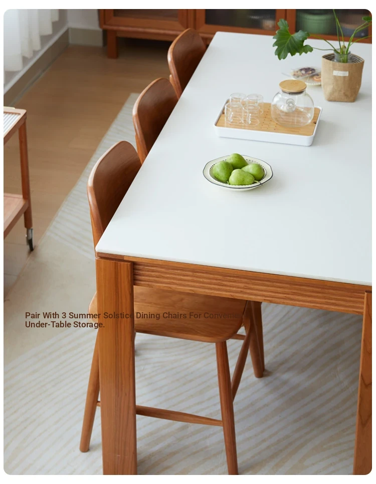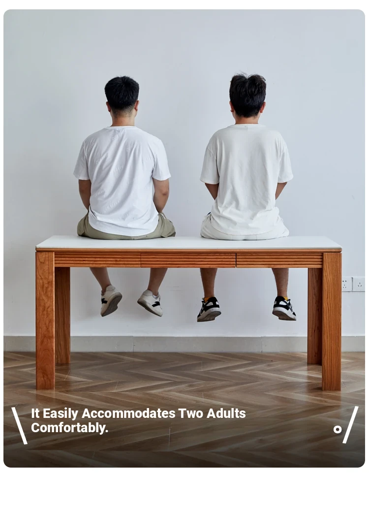 Nordic-Style Solid Wood Dining Table with Drawers - Cherry Wood Cream Finish Long Table for Small Spaces, Perfect for Your Dining Room