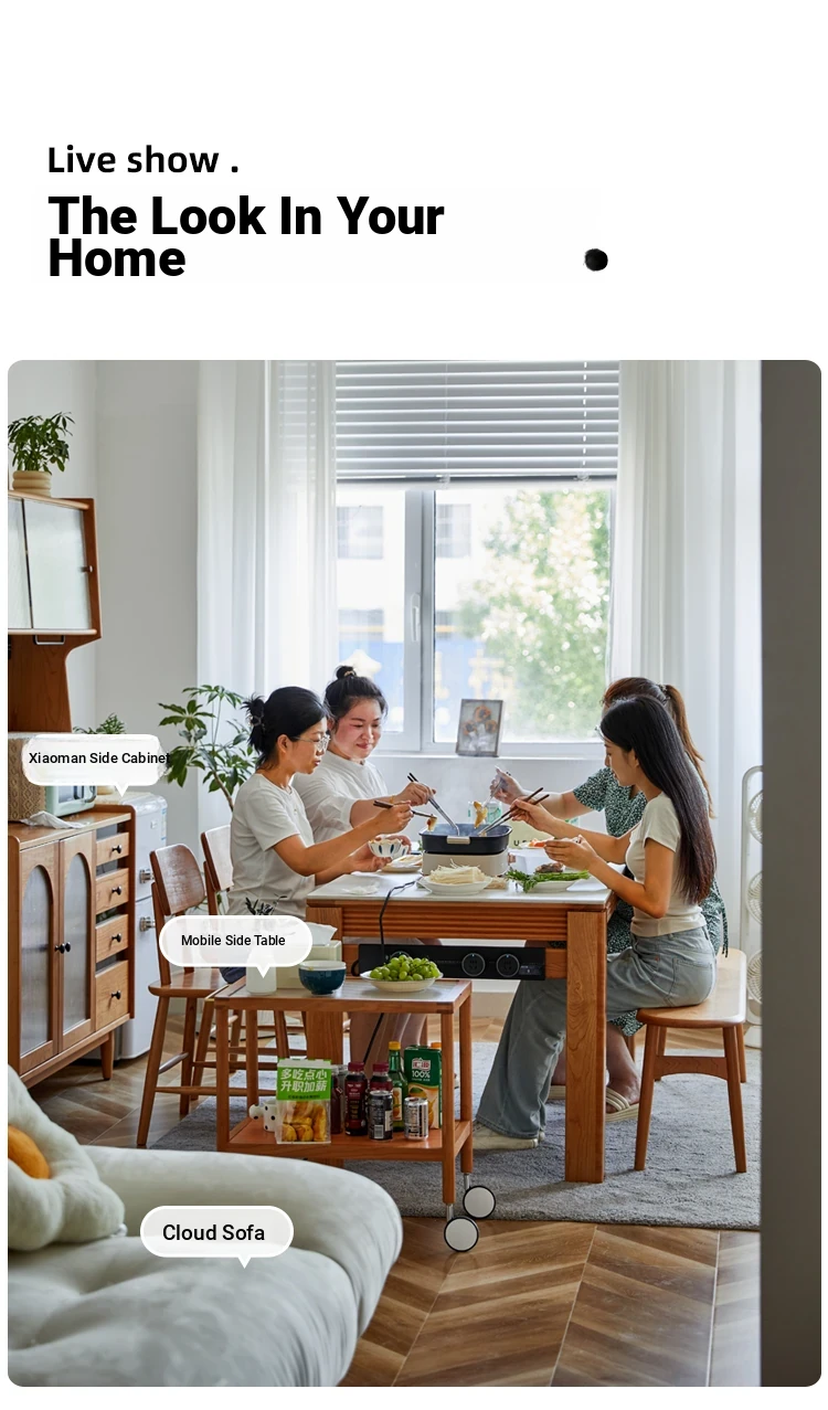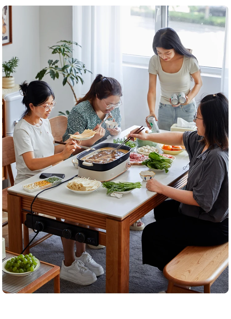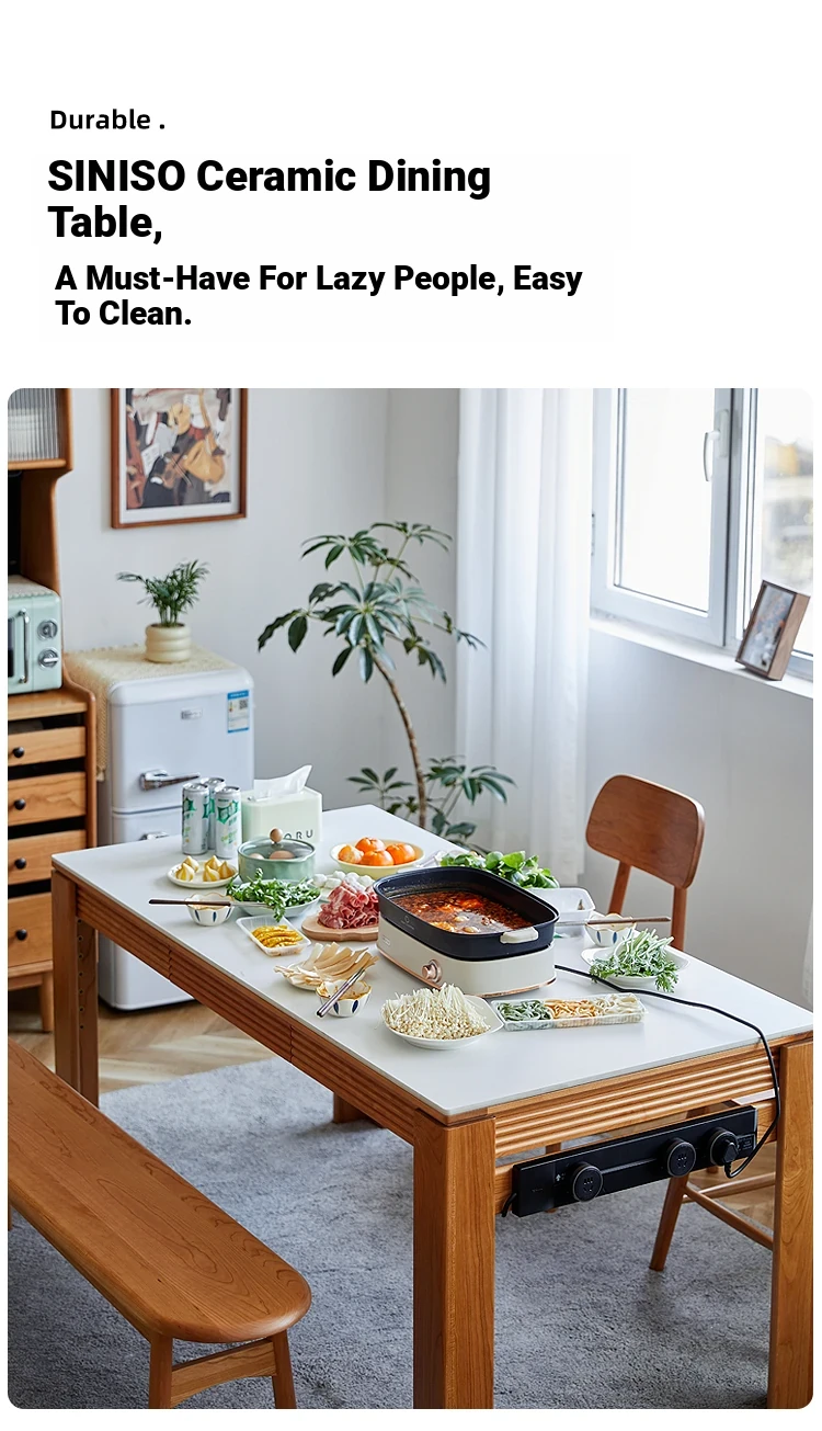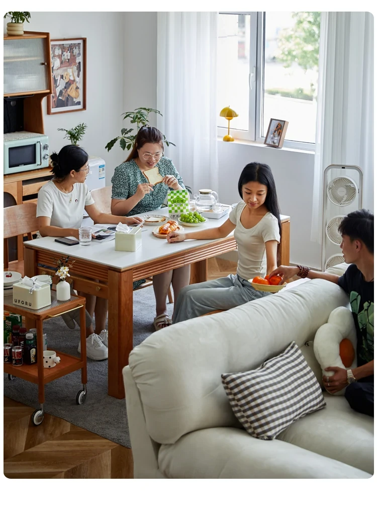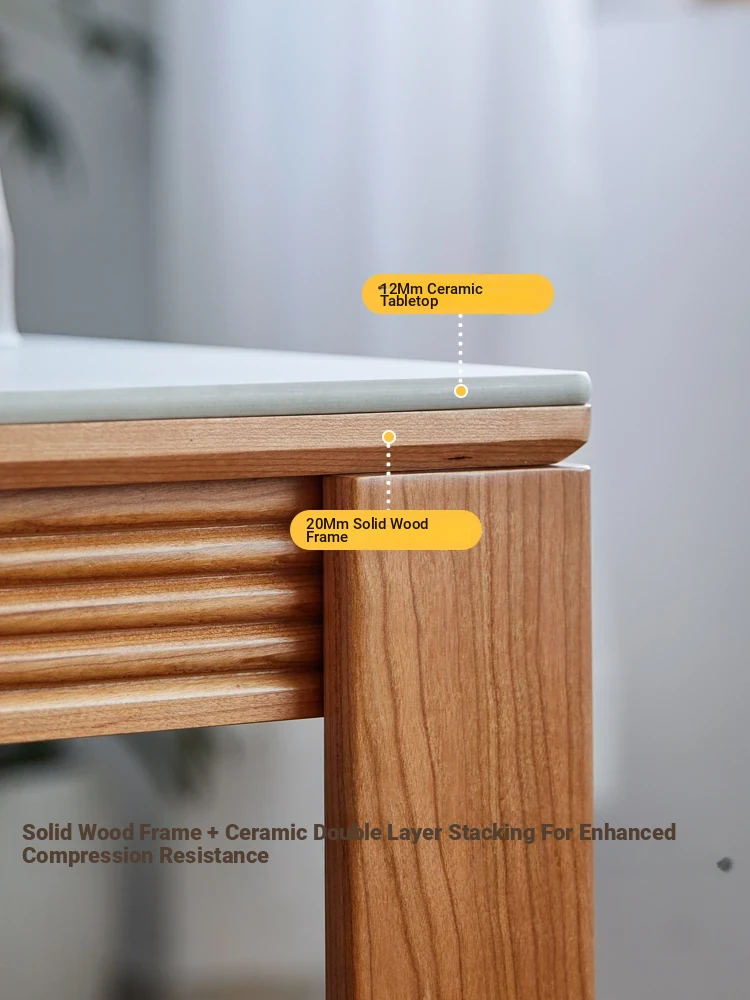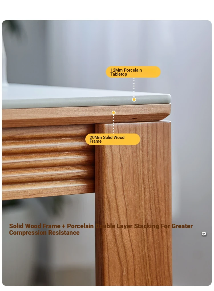 Nordic-Style Solid Wood Dining Table with Drawers - Cherry Wood Cream Finish Long Table for Small Spaces, Perfect for Your Dining Room