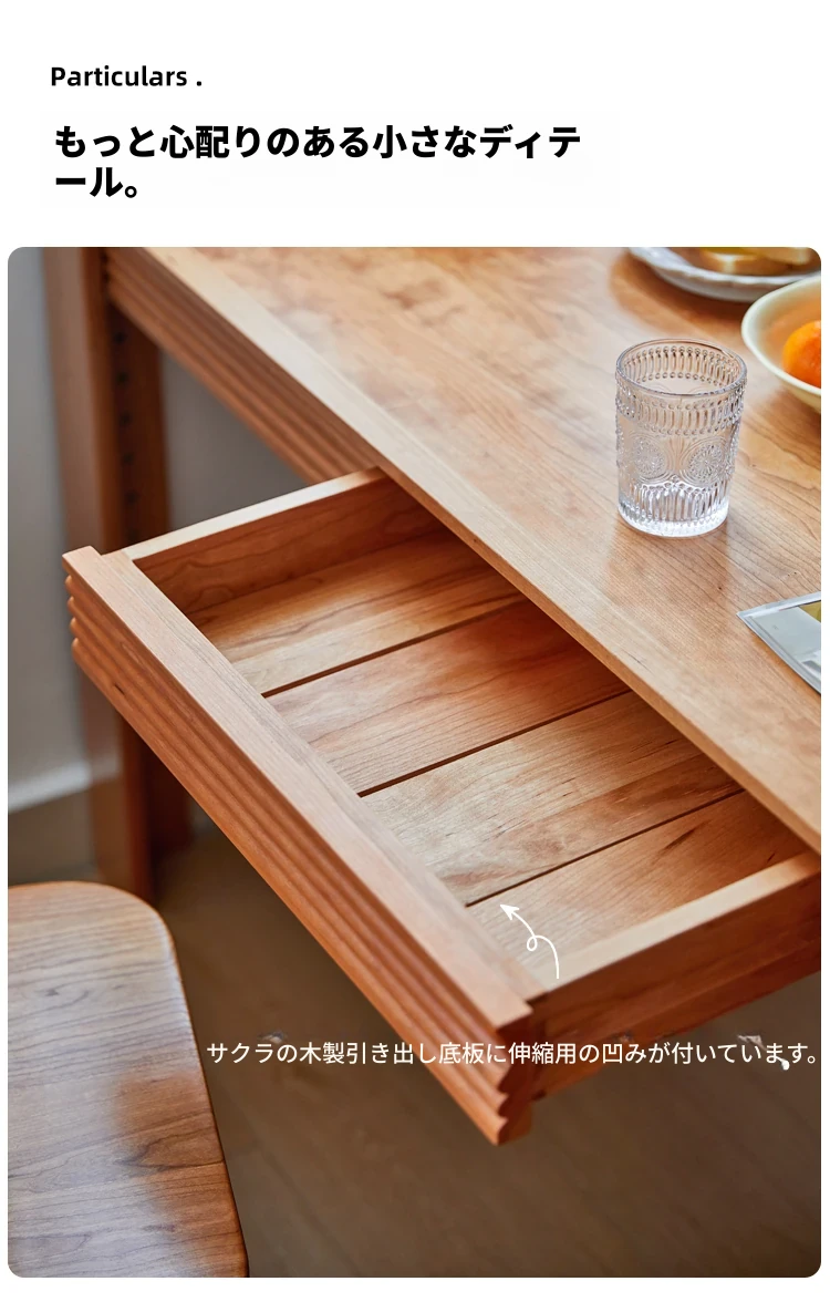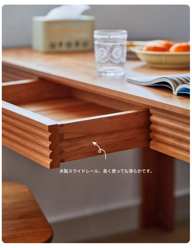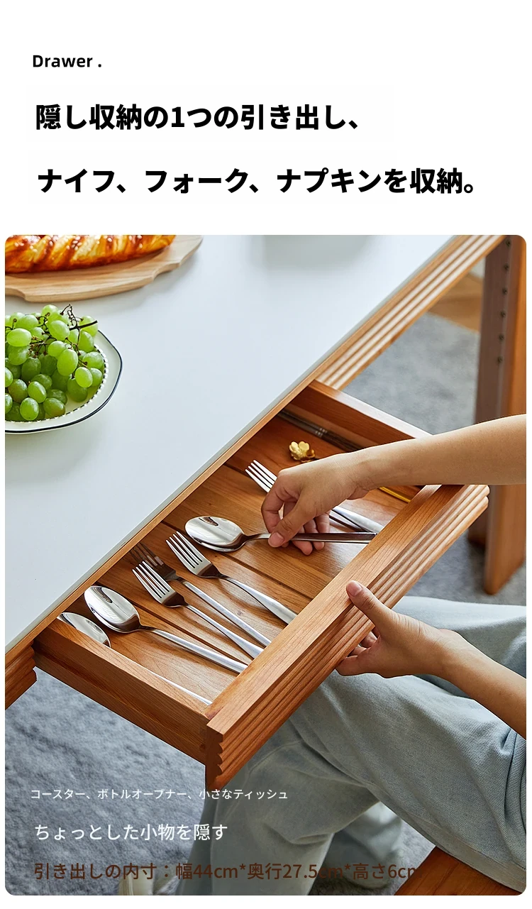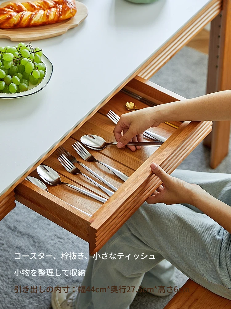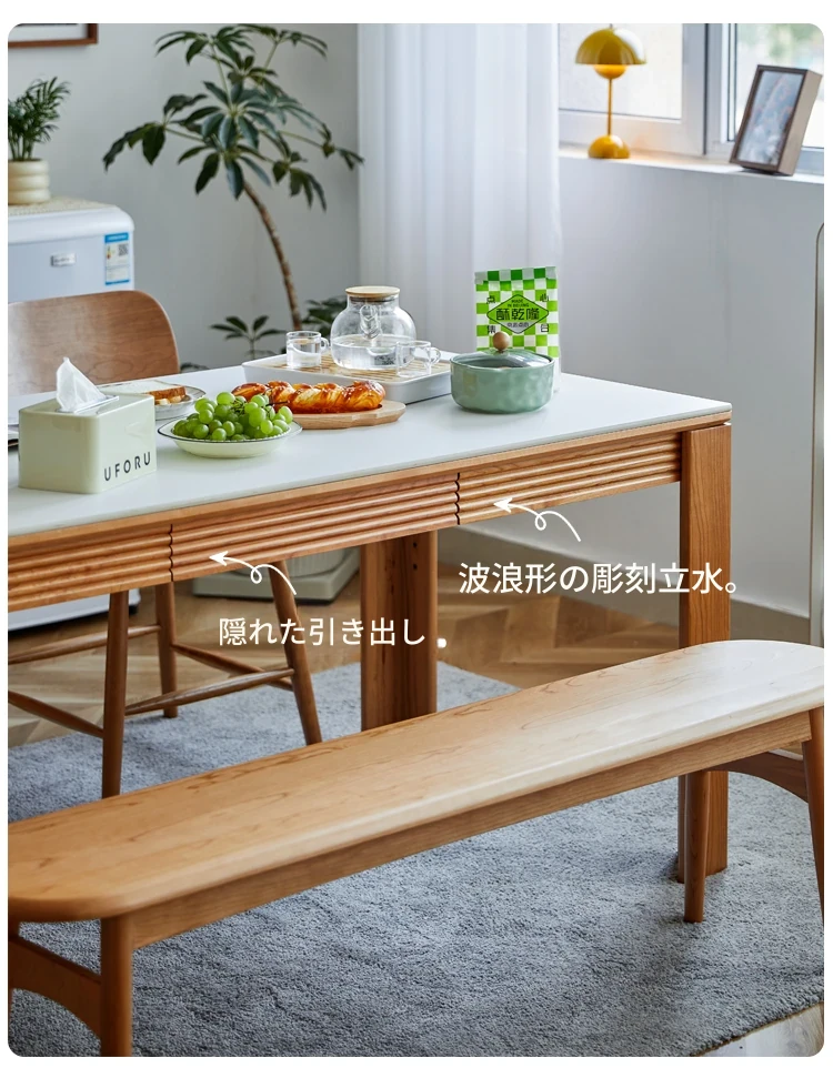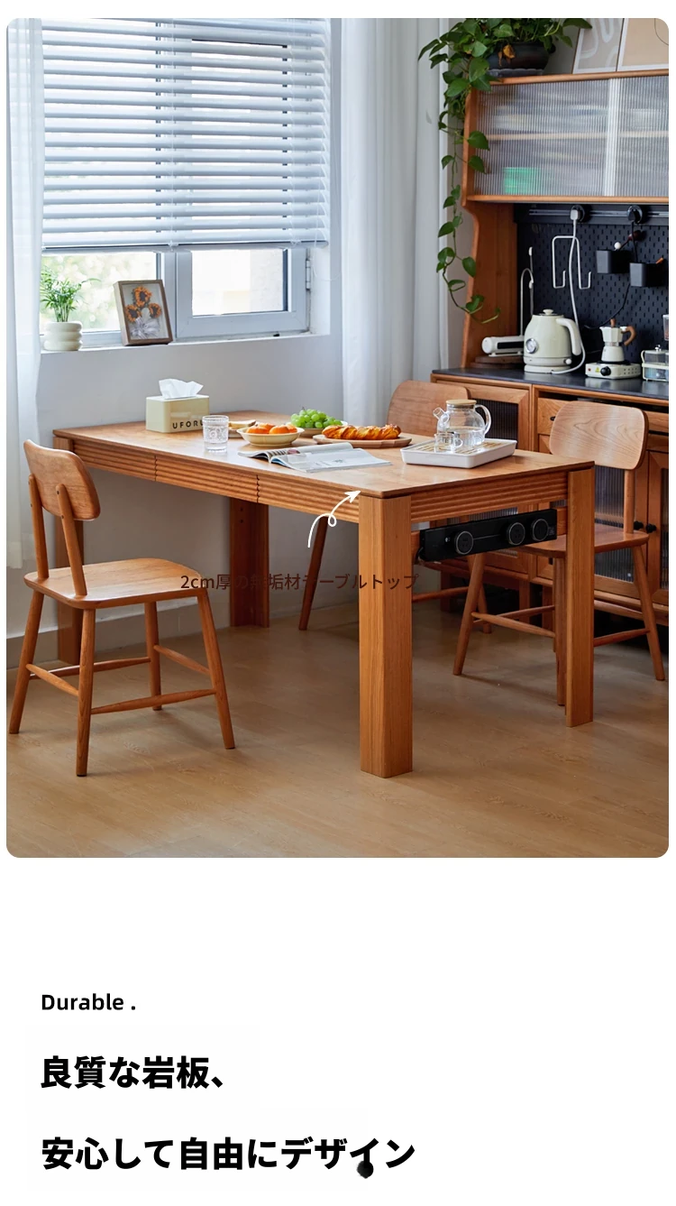 一刻木工の北欧スタイル!実木製のロックボードダイニングテーブル、コンパクトな小型住宅向け、便利な引き出し付き。チェリーウッドのクリームカラーで、食卓を華やかに演出します。おしゃれで機能的な長テーブル!