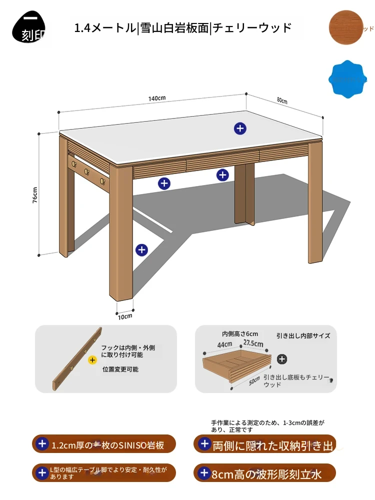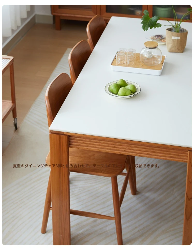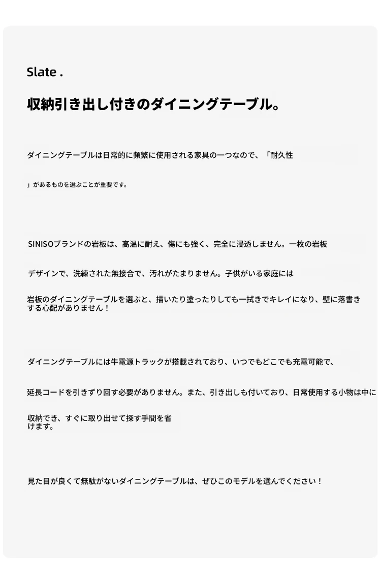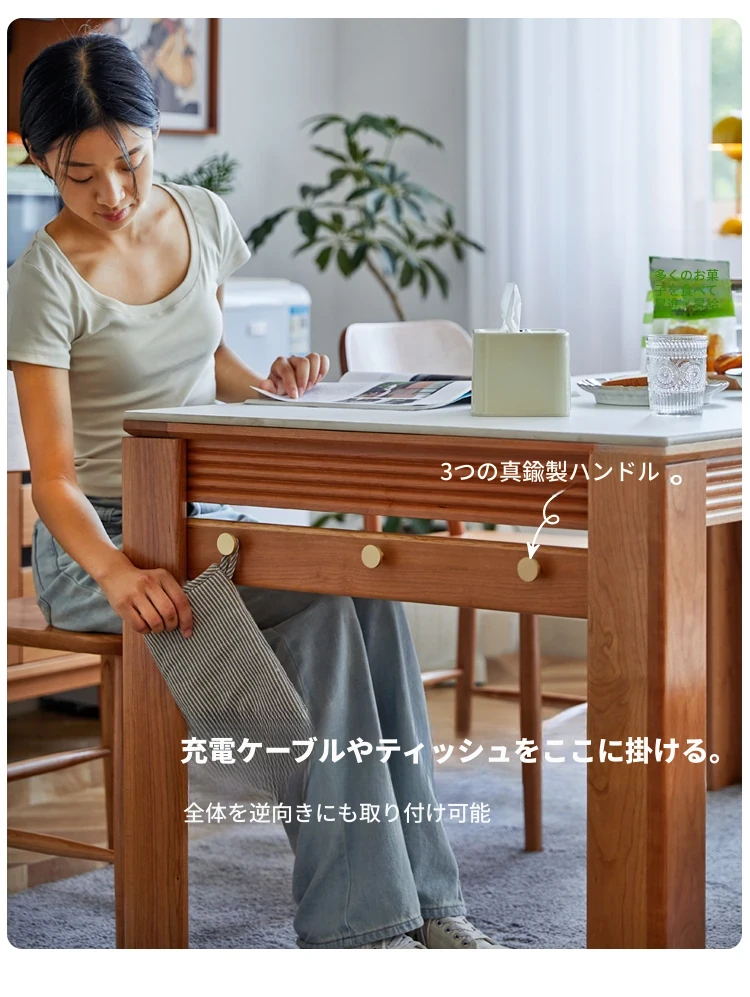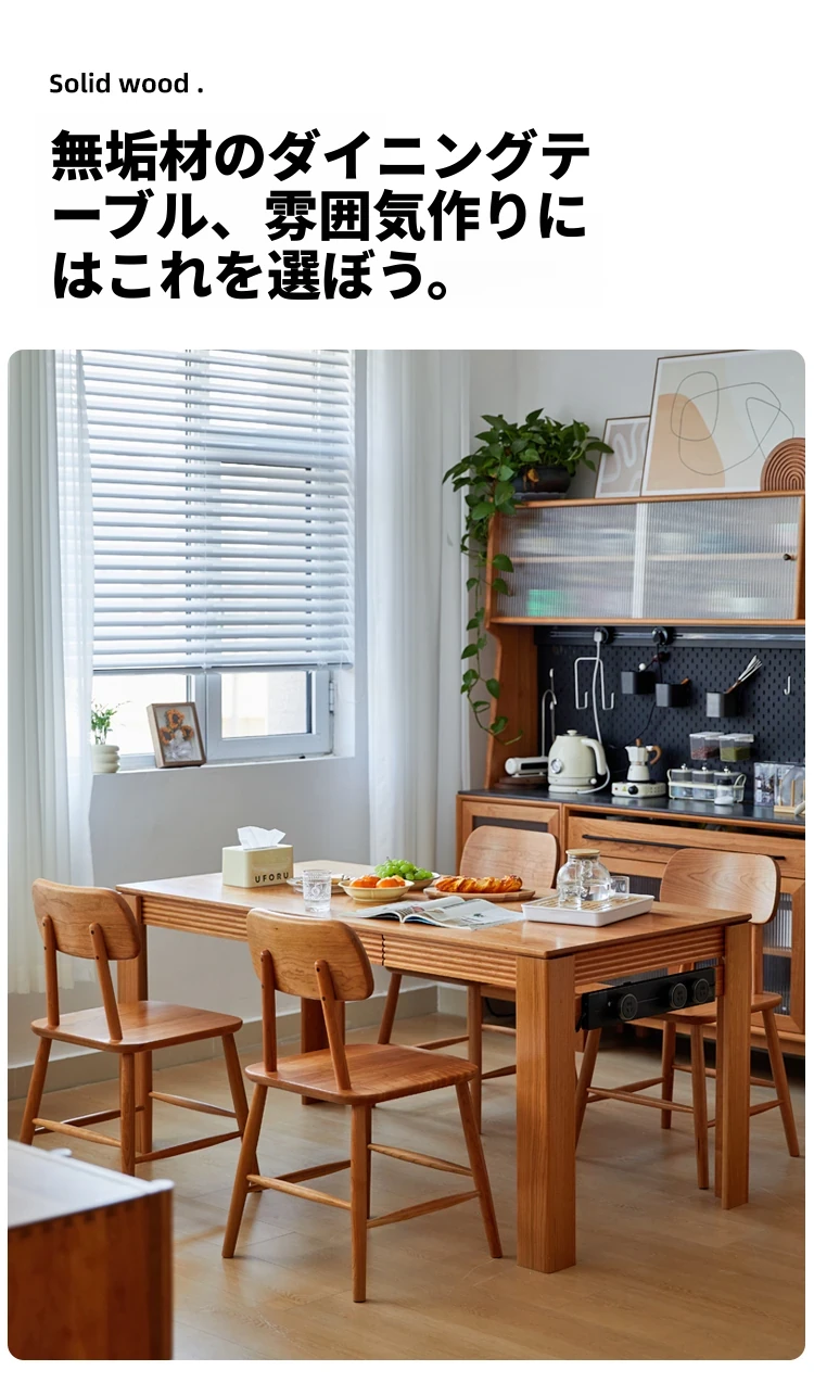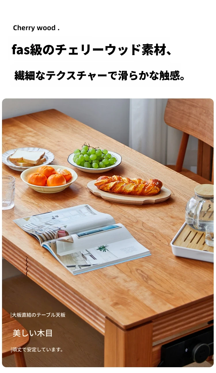 一刻木工の北欧スタイル!実木製のロックボードダイニングテーブル、コンパクトな小型住宅向け、便利な引き出し付き。チェリーウッドのクリームカラーで、食卓を華やかに演出します。おしゃれで機能的な長テーブル!