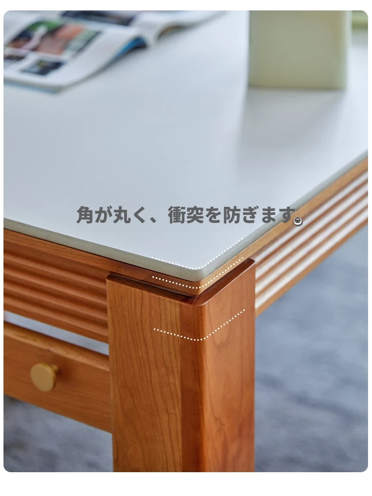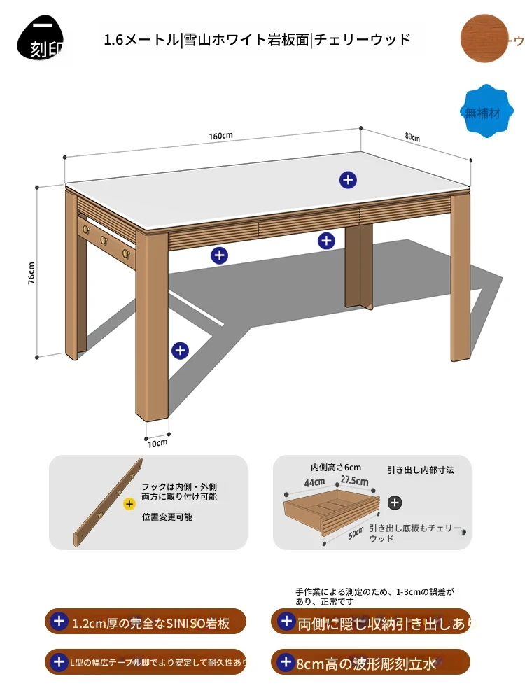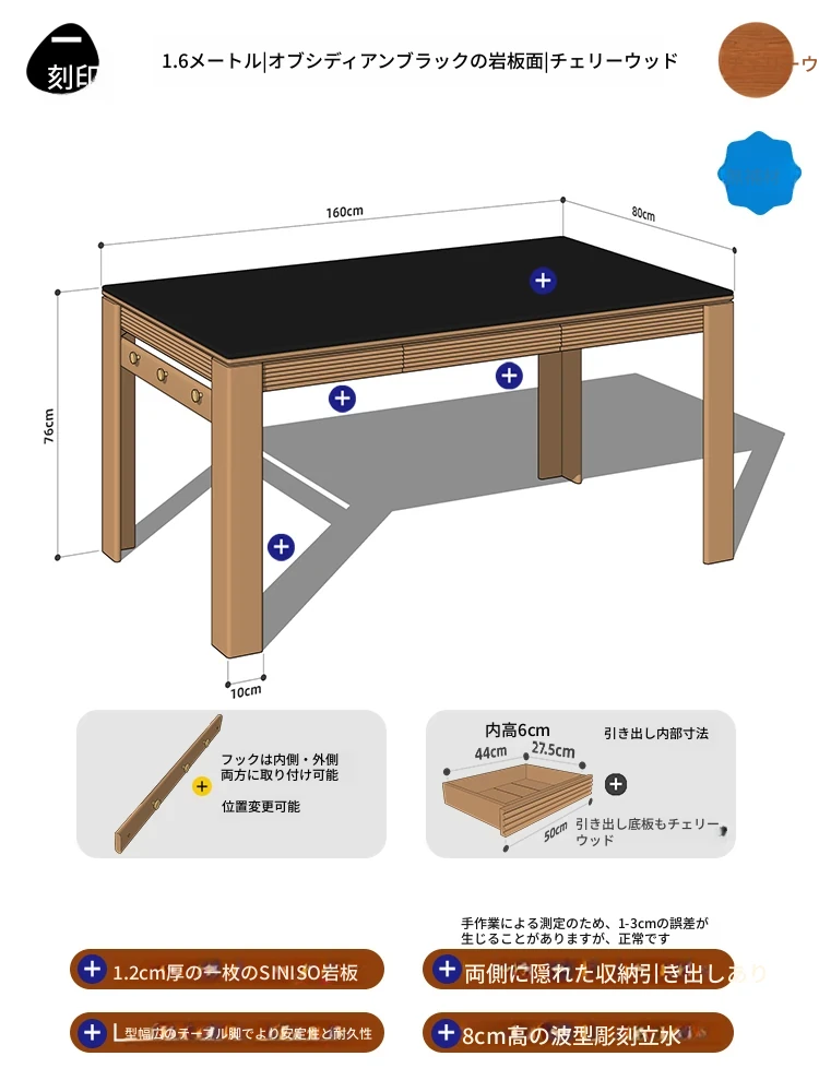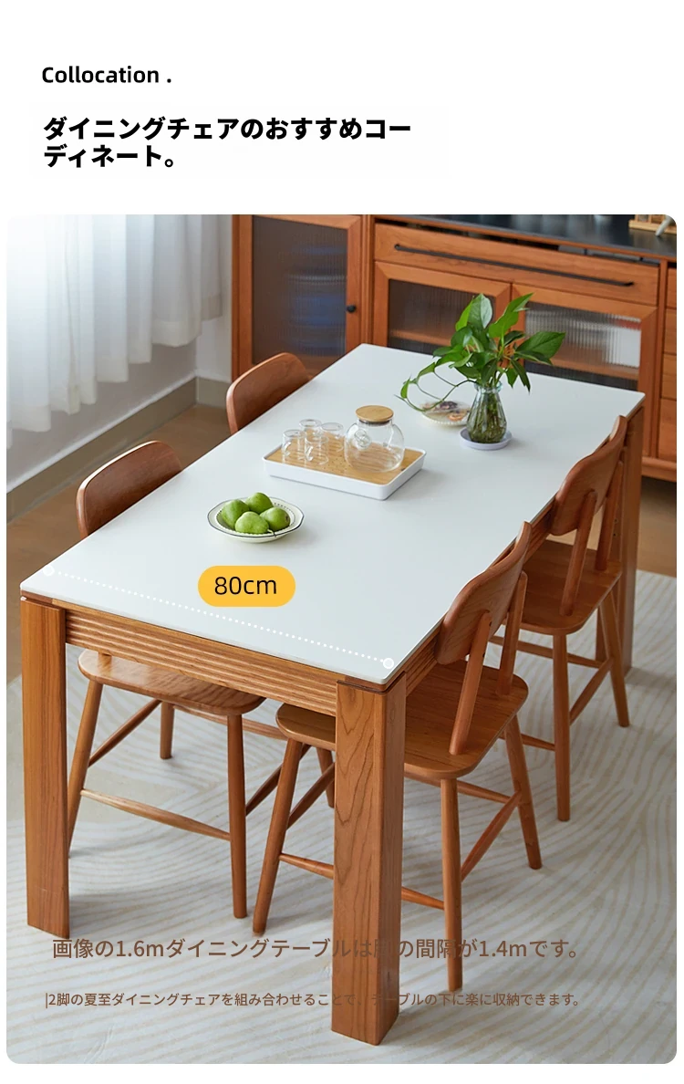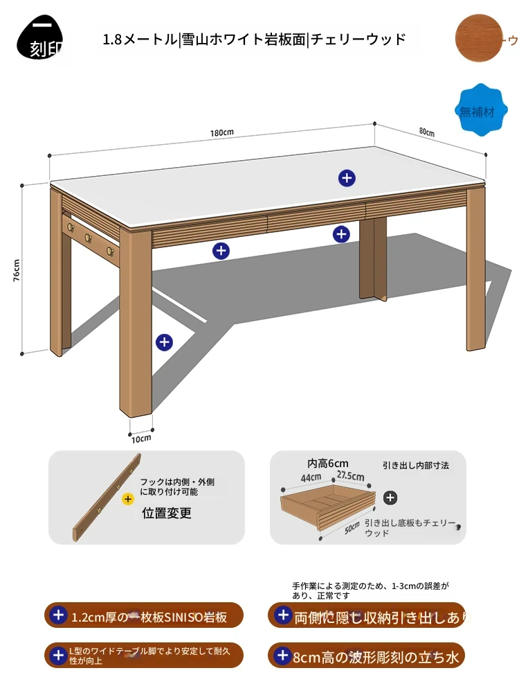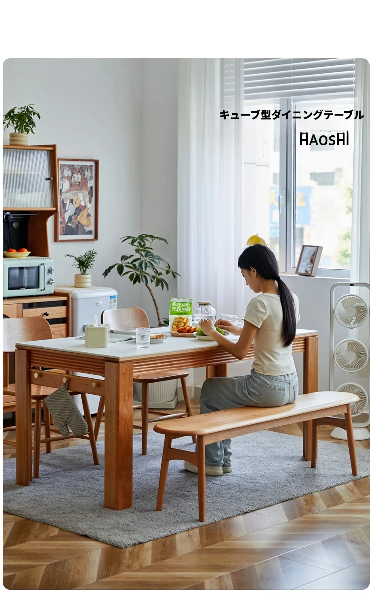 一刻木工の北欧スタイル!実木製のロックボードダイニングテーブル、コンパクトな小型住宅向け、便利な引き出し付き。チェリーウッドのクリームカラーで、食卓を華やかに演出します。おしゃれで機能的な長テーブル!