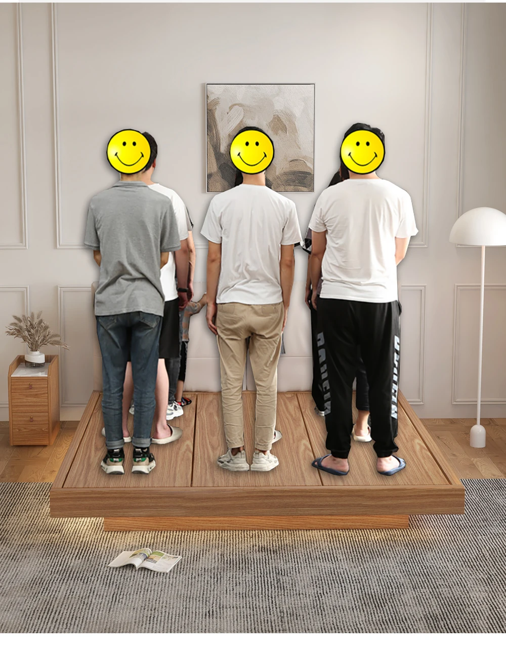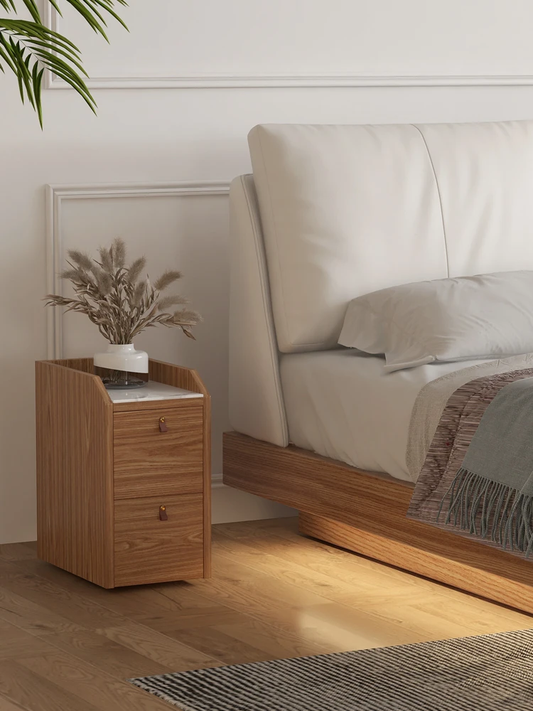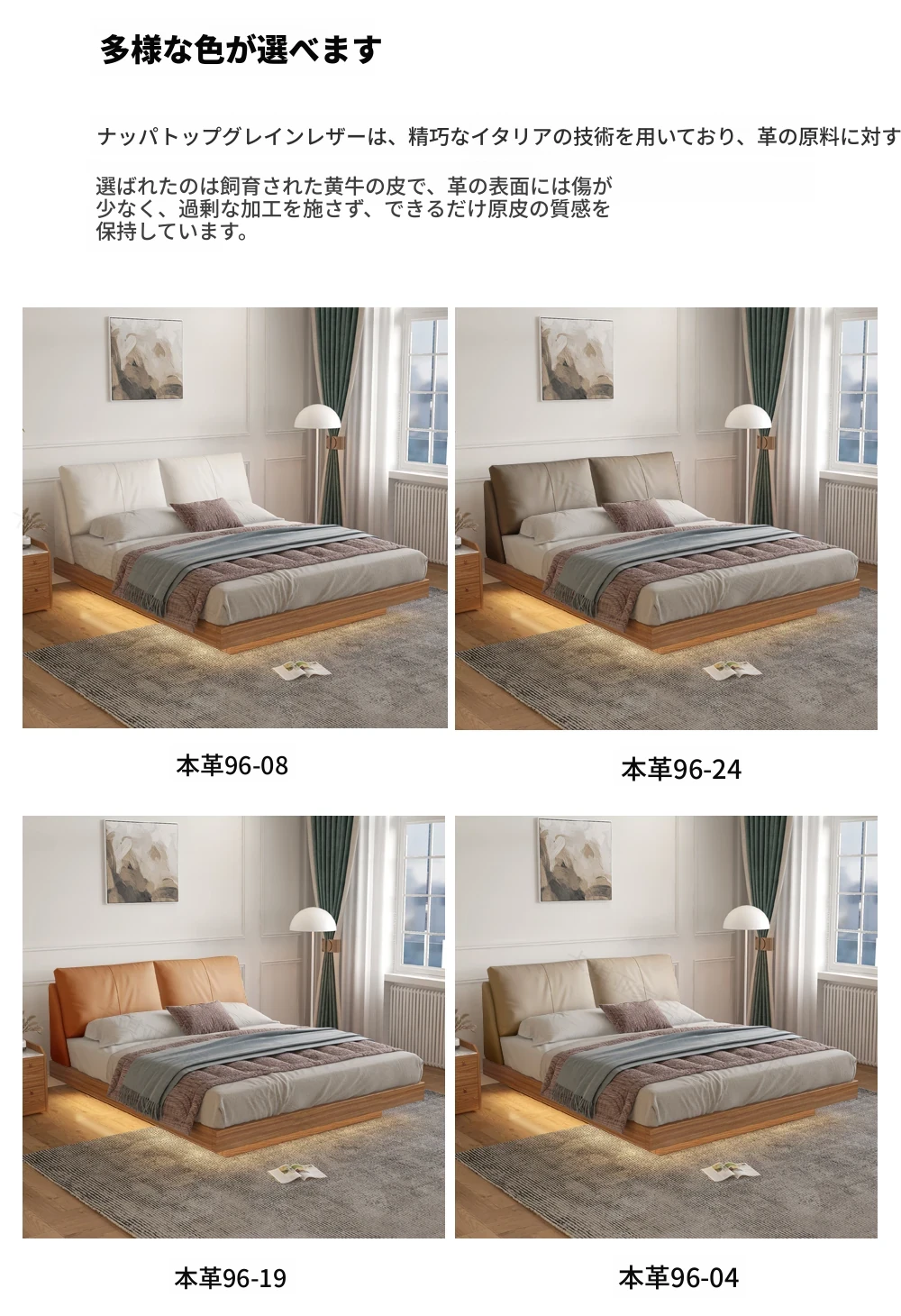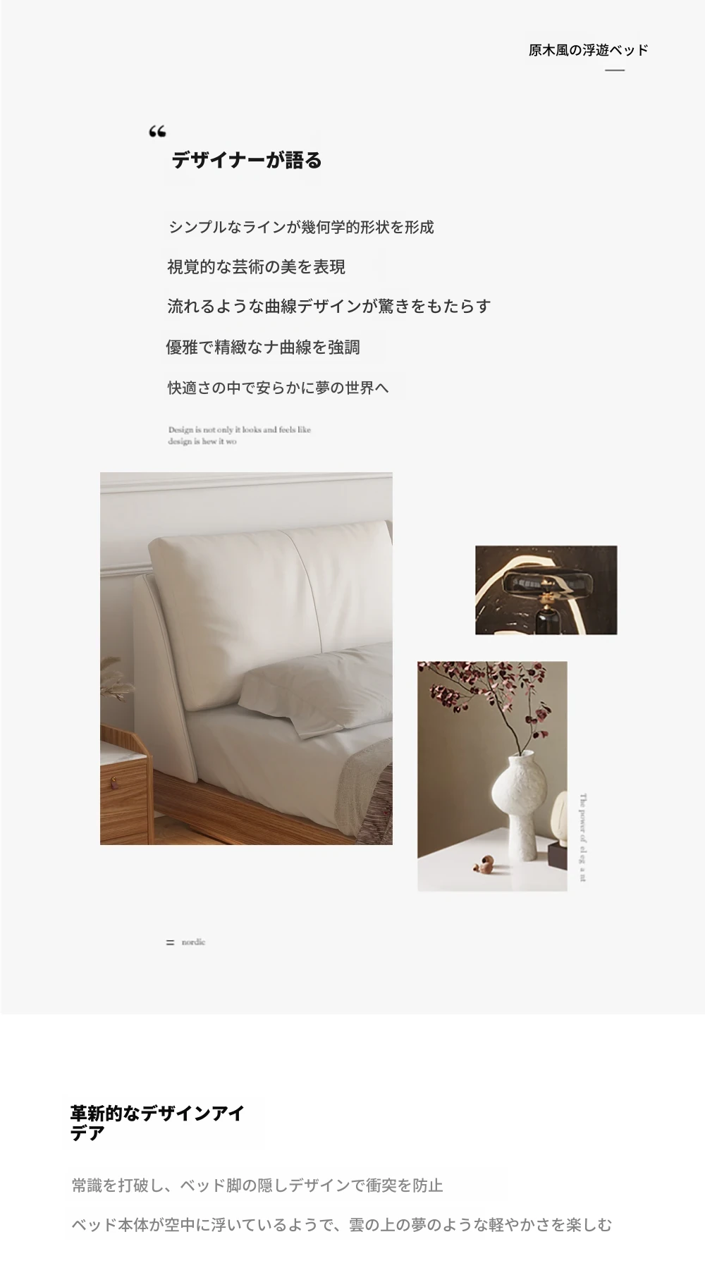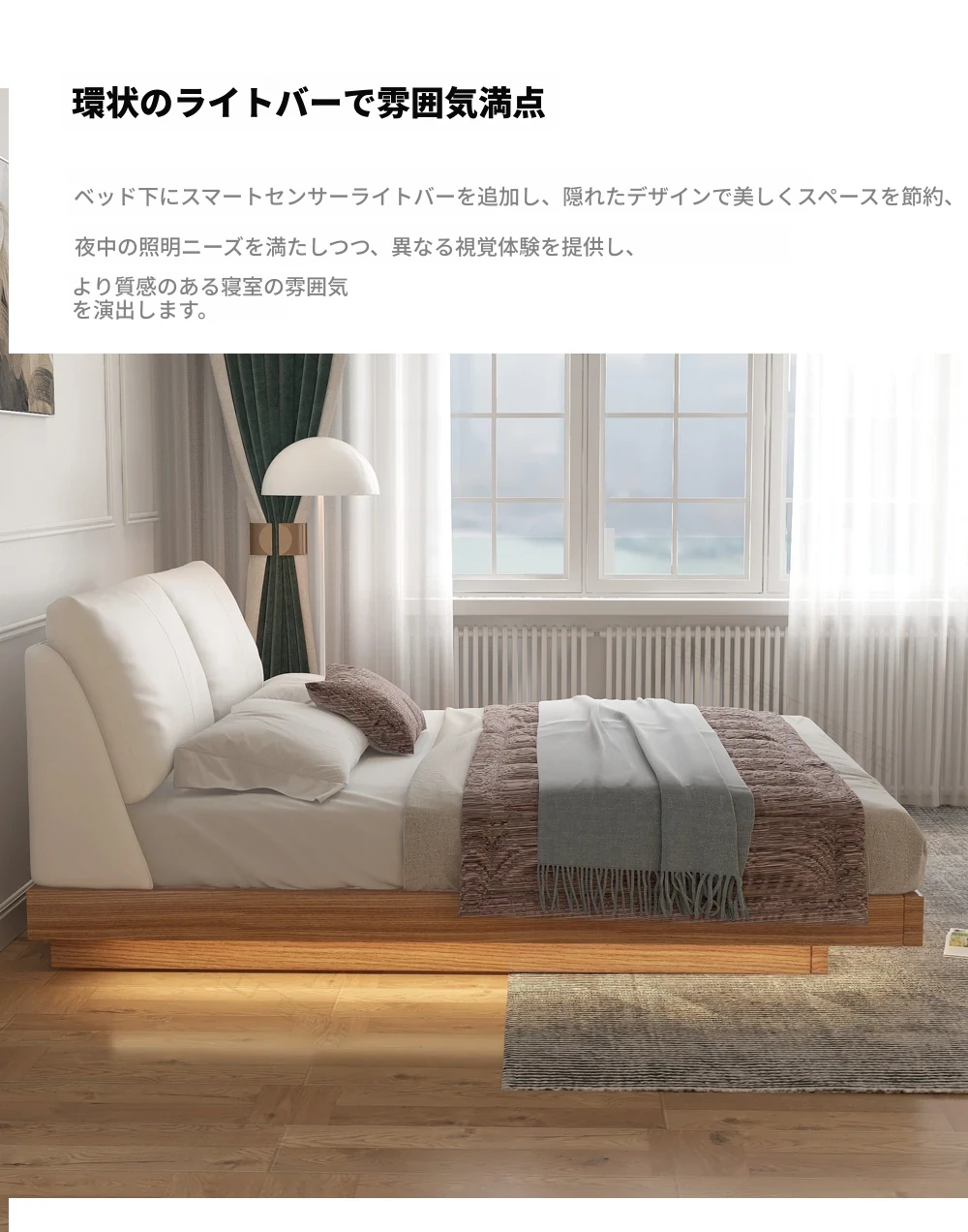 ナチュラルウッド調の実木フローティングベッド - シンプルでモダンなデザイン、真皮ダブルソファパック、北欧スタイルの羽毛仕立て、空間を演出する日本風の結婚ベッド。心地よい眠りをお届けします!