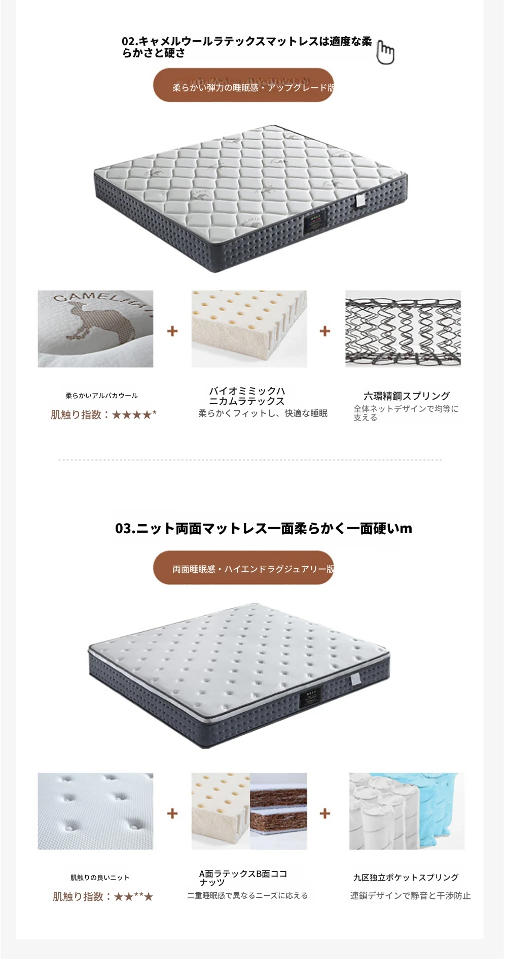 シングルベッド+ラクダのウールラテックスマットレス