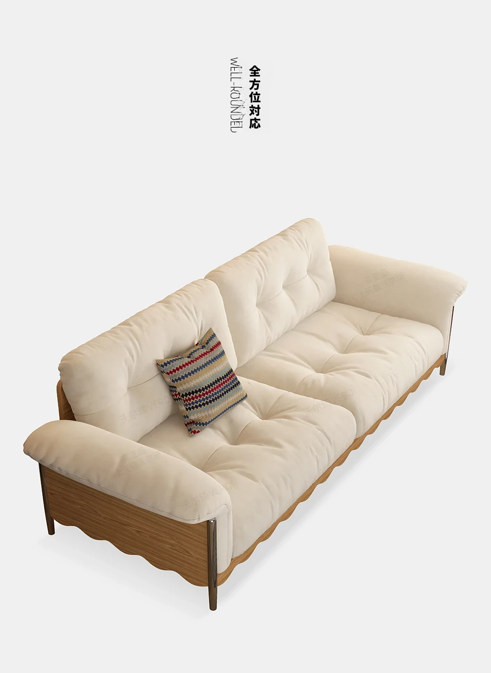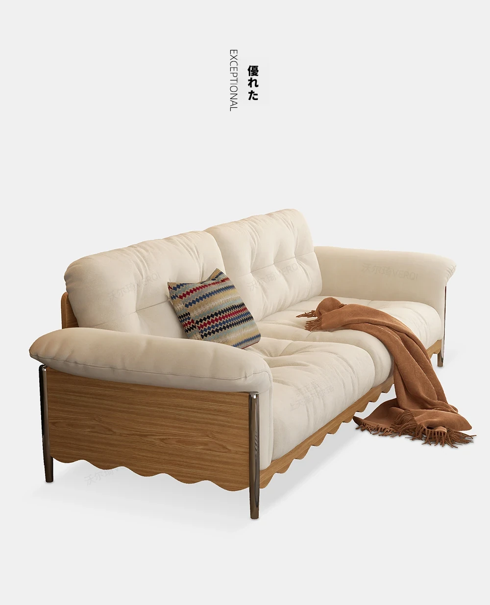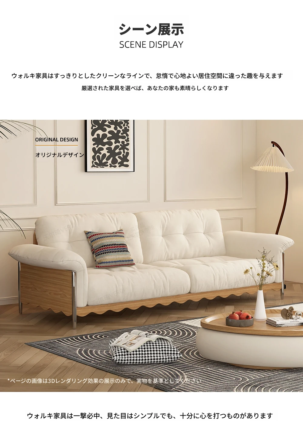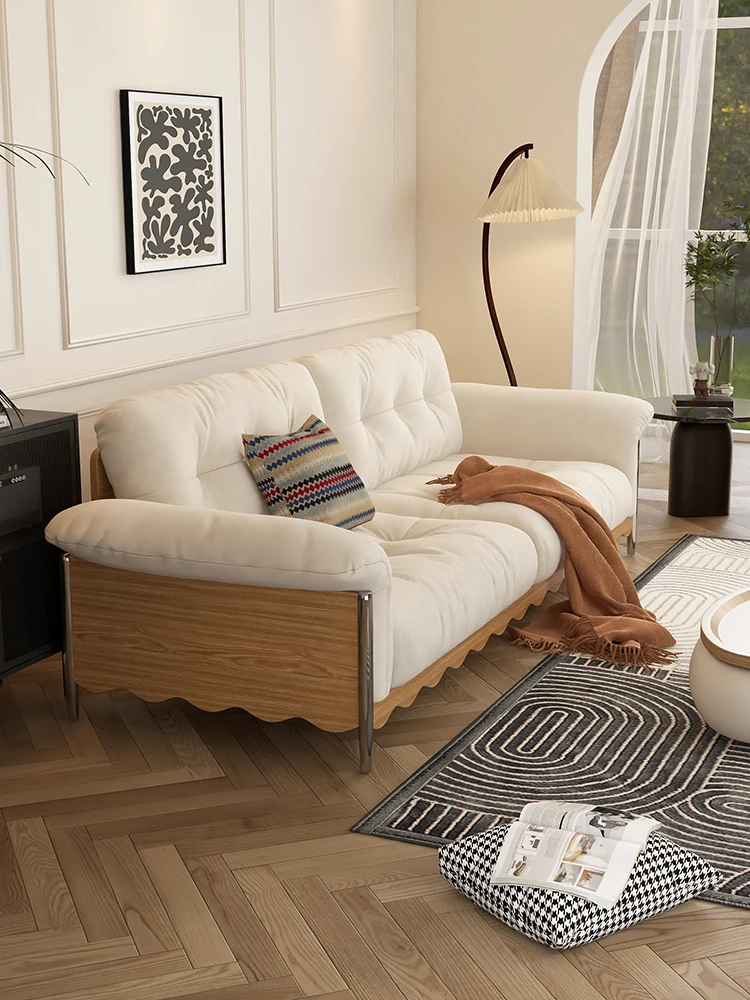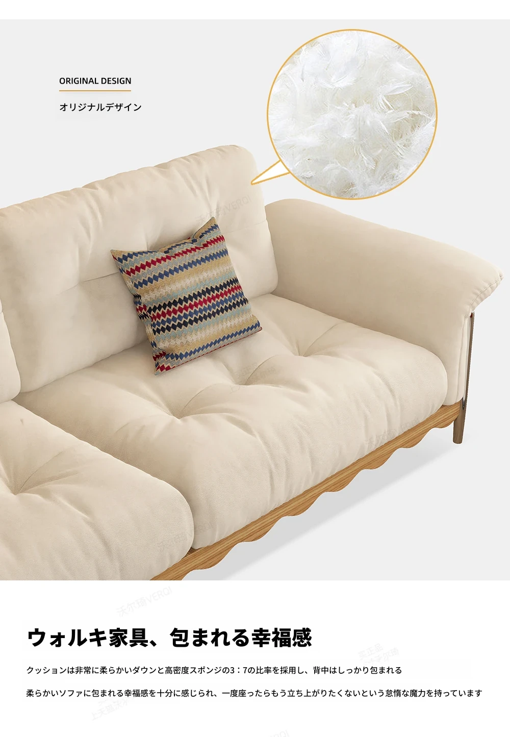 ナチュラルウッド調の日本式無垢材ソファ、小スペースに最適!レトロな雲のようなデザイン、クリーミーな布地で猫の爪も安心!お手入れも簡単な洗濯可能なカバー付き。おしゃれで快適なリビングの必需品!