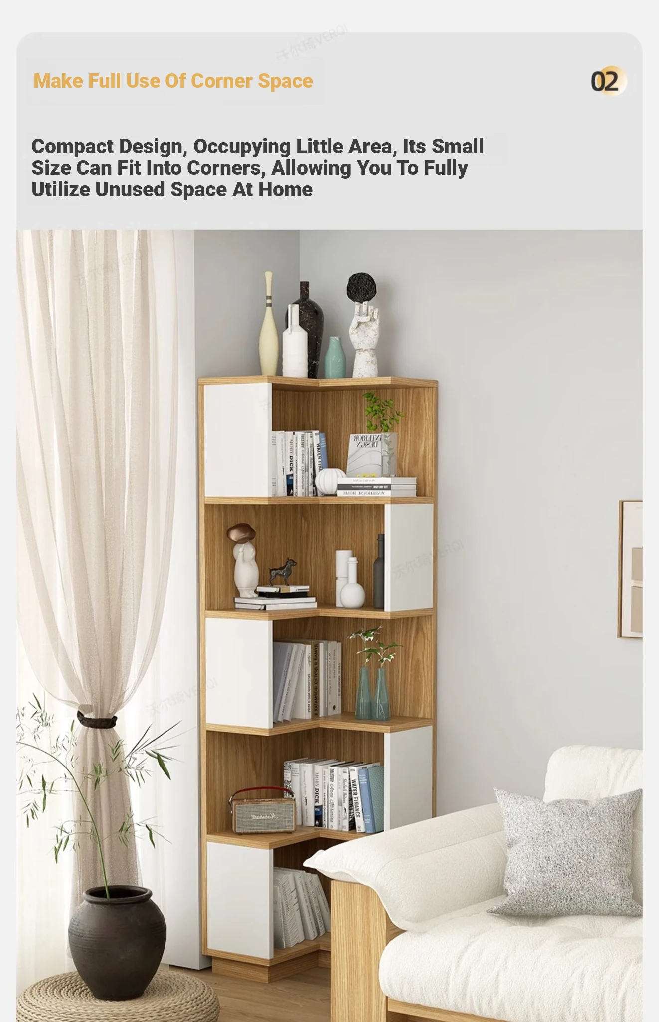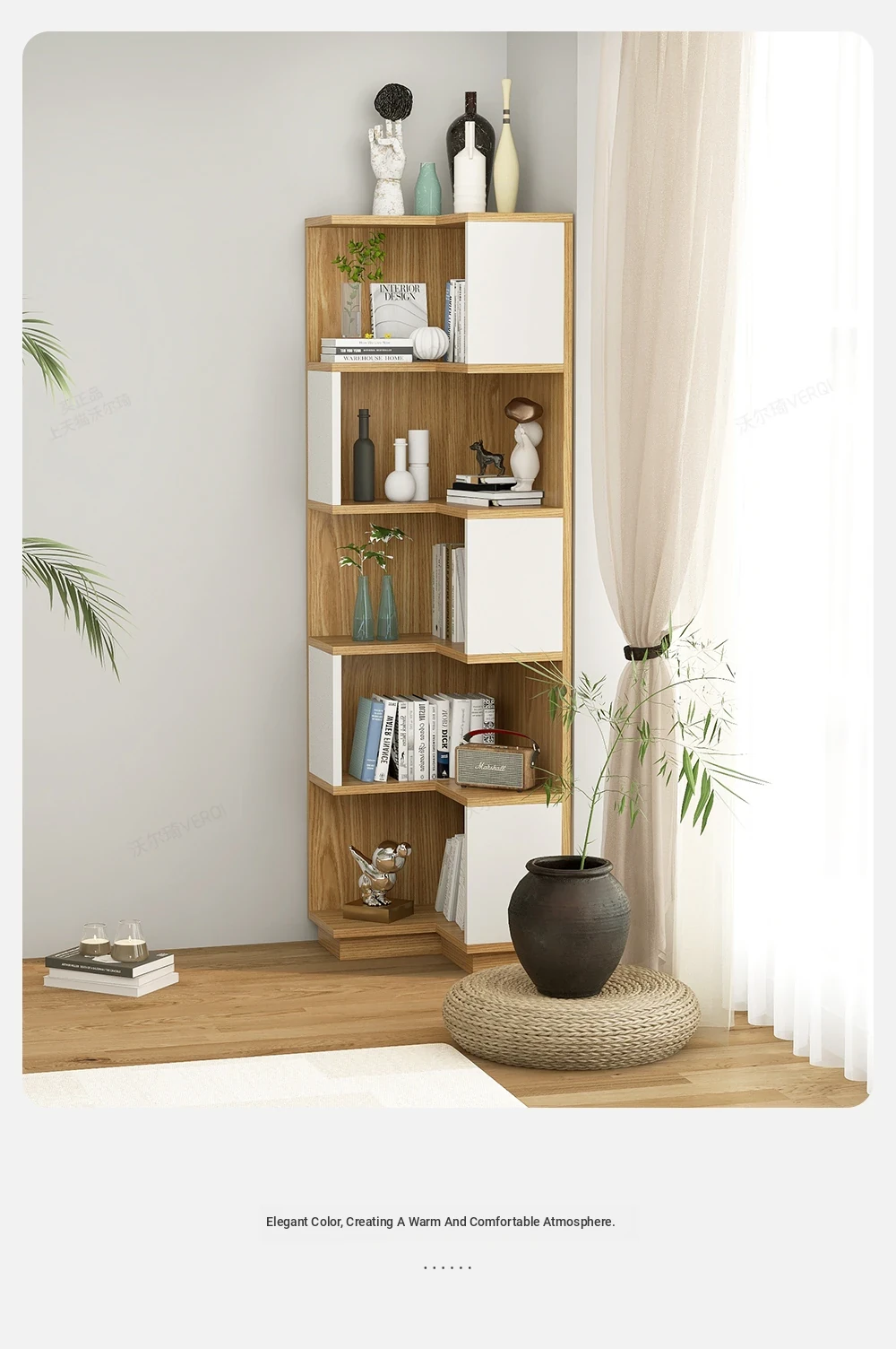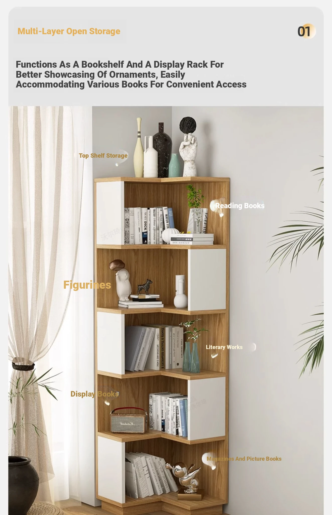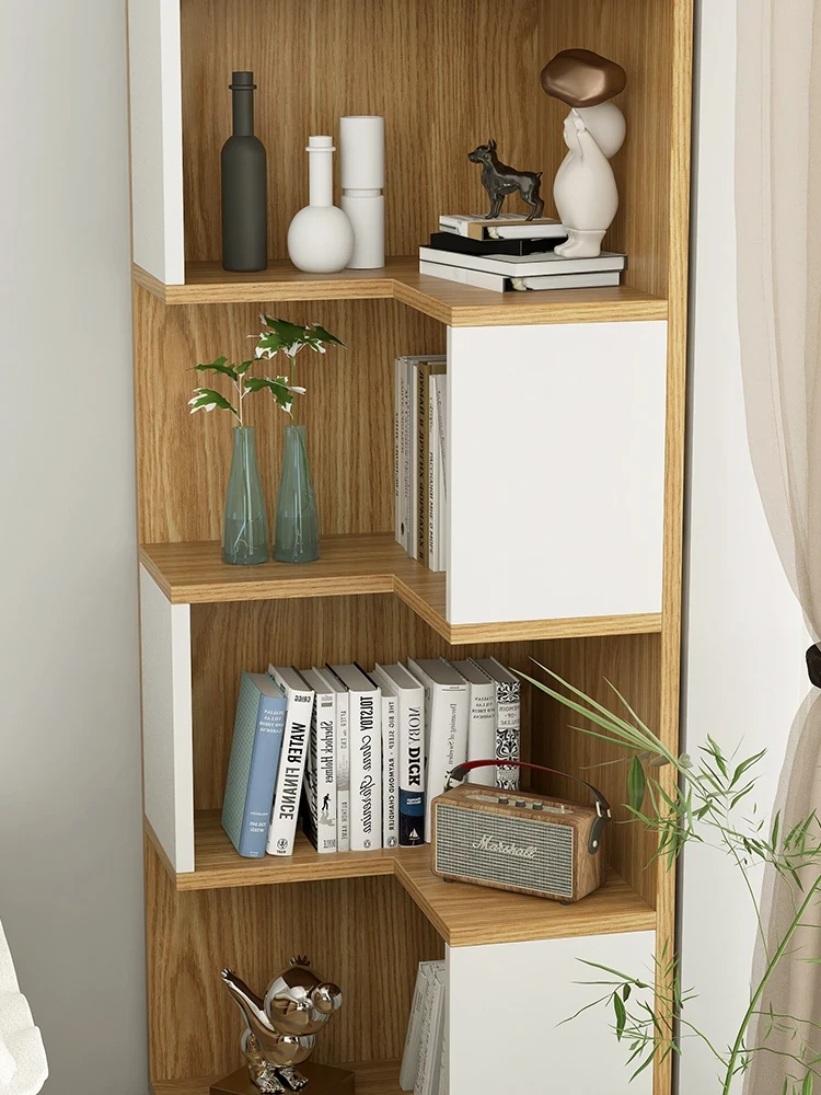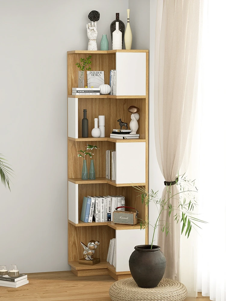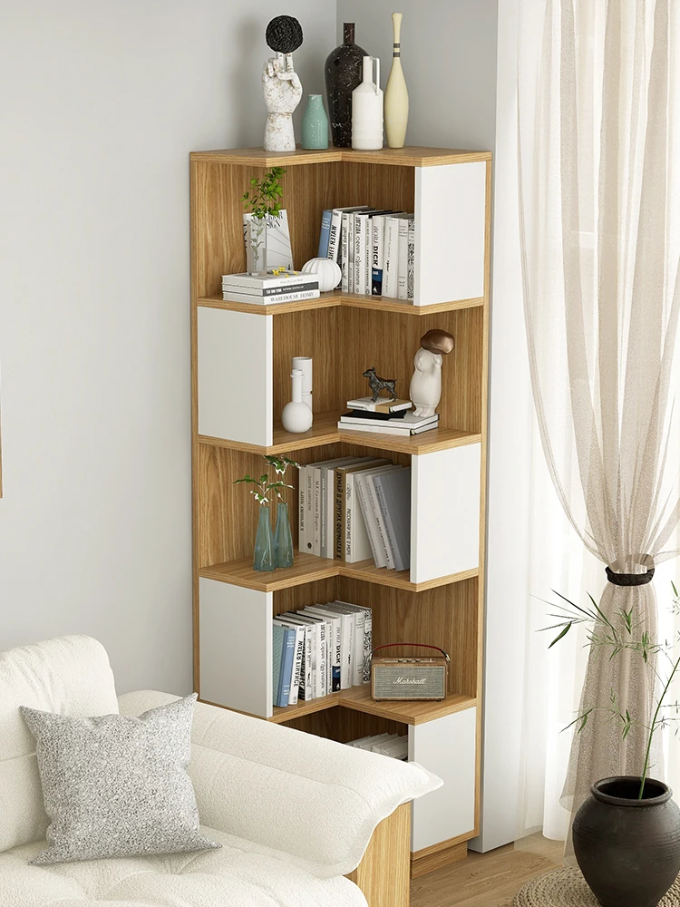 Rustic Corner Floor Shelf - Triangular Storage Rack for Living Room, Multi-Layer Bookcase, Perfect for Bedroom and Wall Corners, Stylish and Space-Saving Design