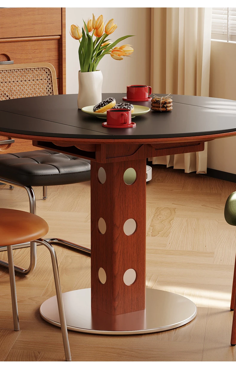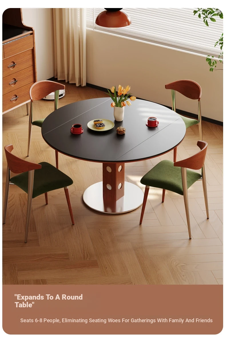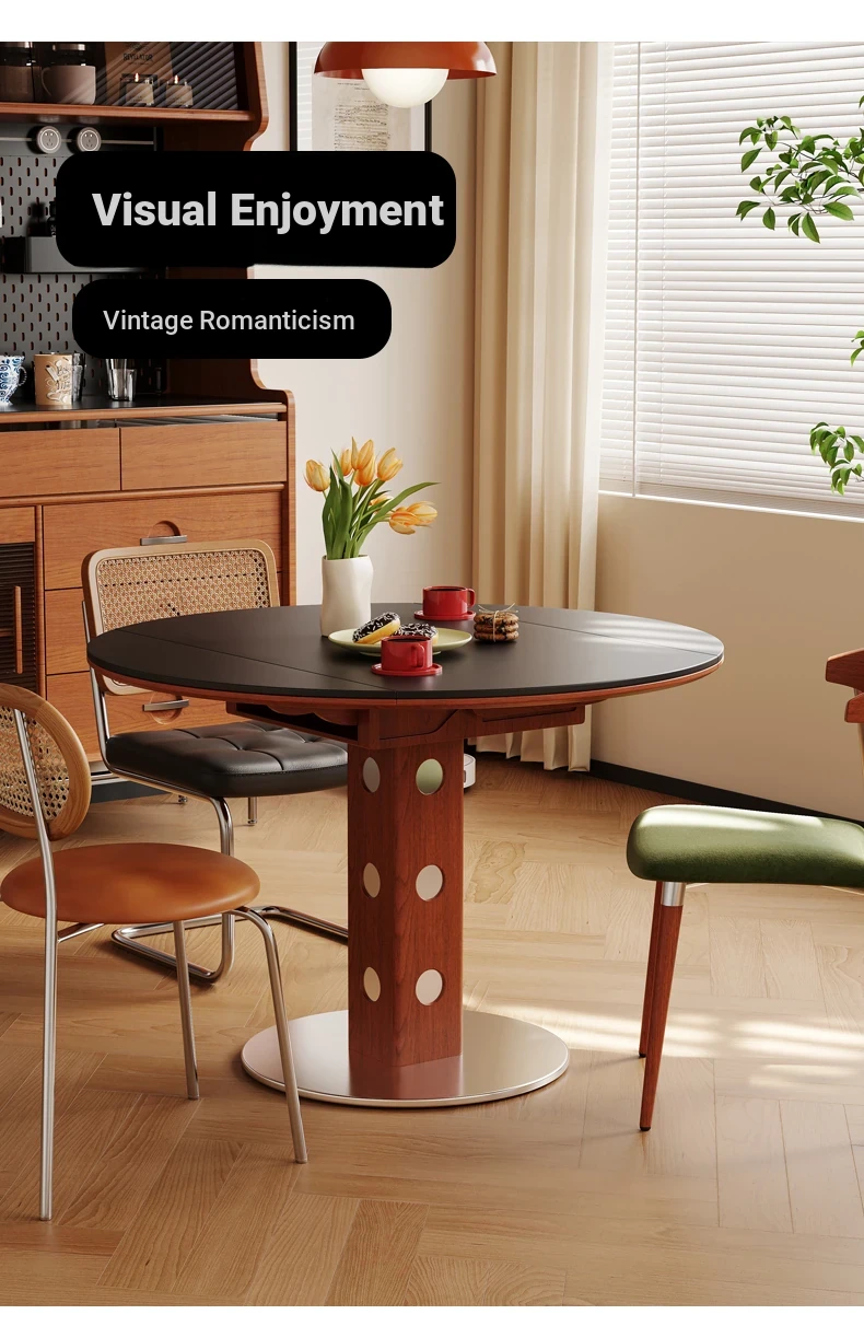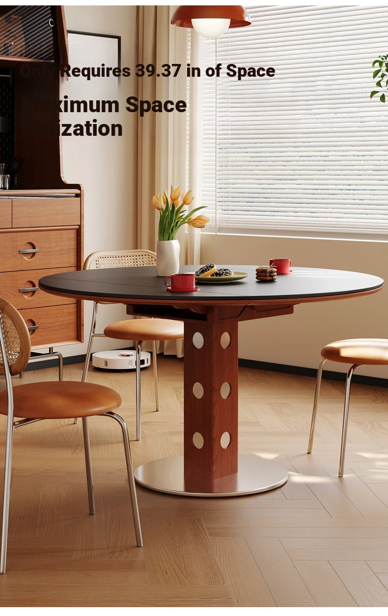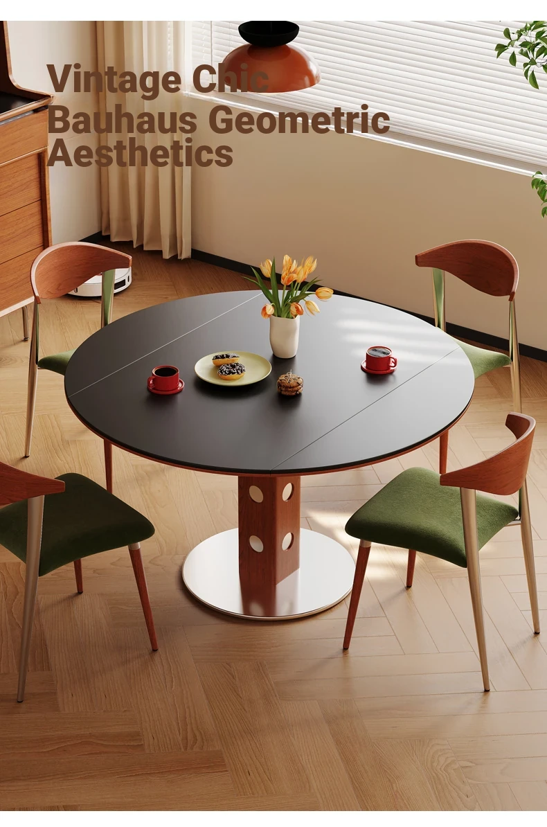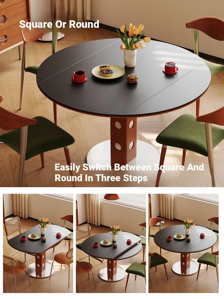 Solid Wood Rock Plate Dining Table - Vintage Style for Small Spaces, Bauhaus Design, Foldable Square to Round Table with Expandable Features for Home Living Room