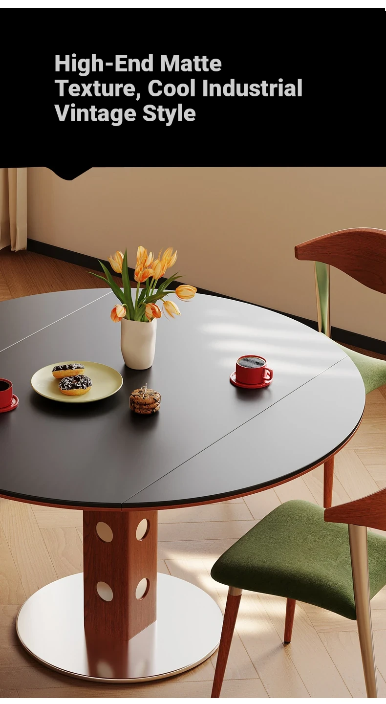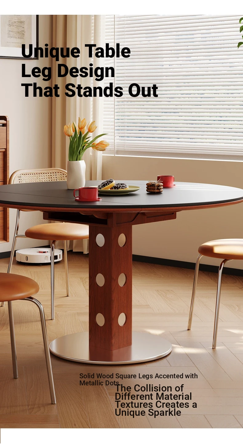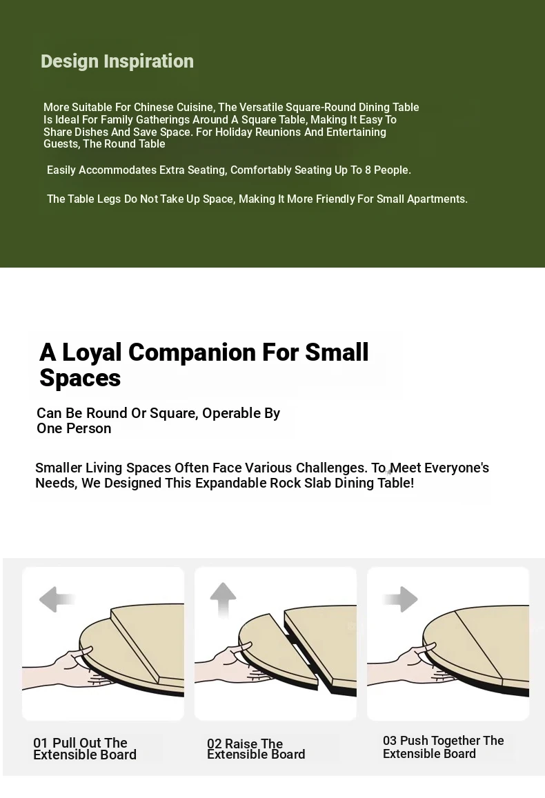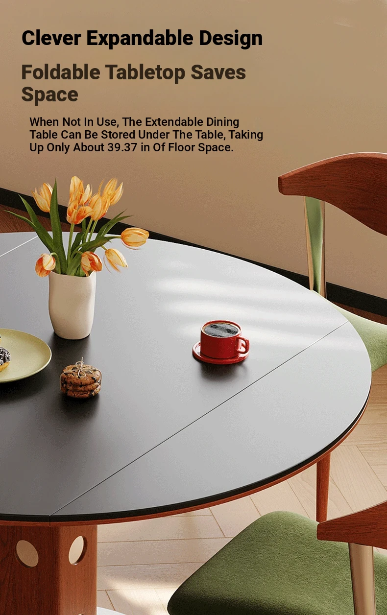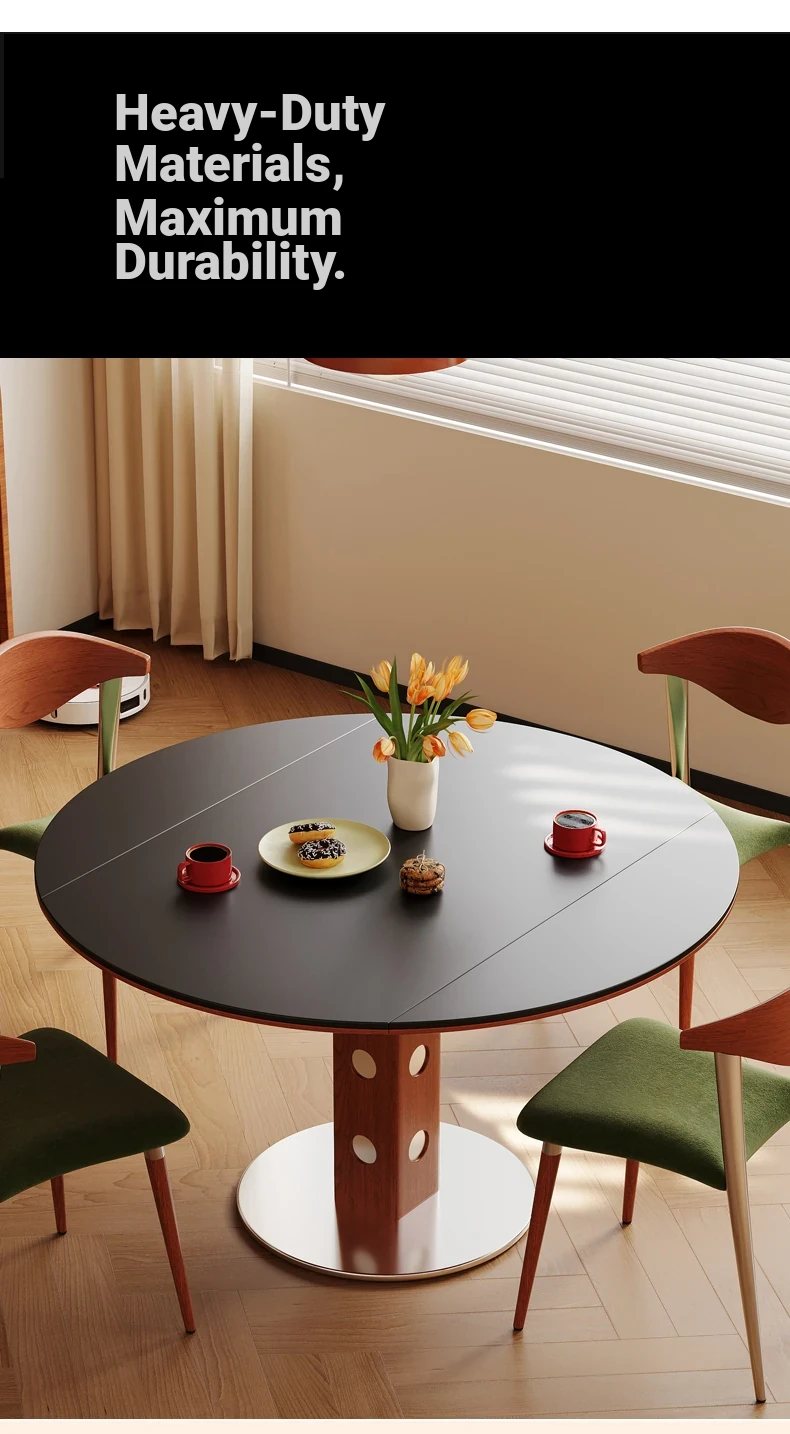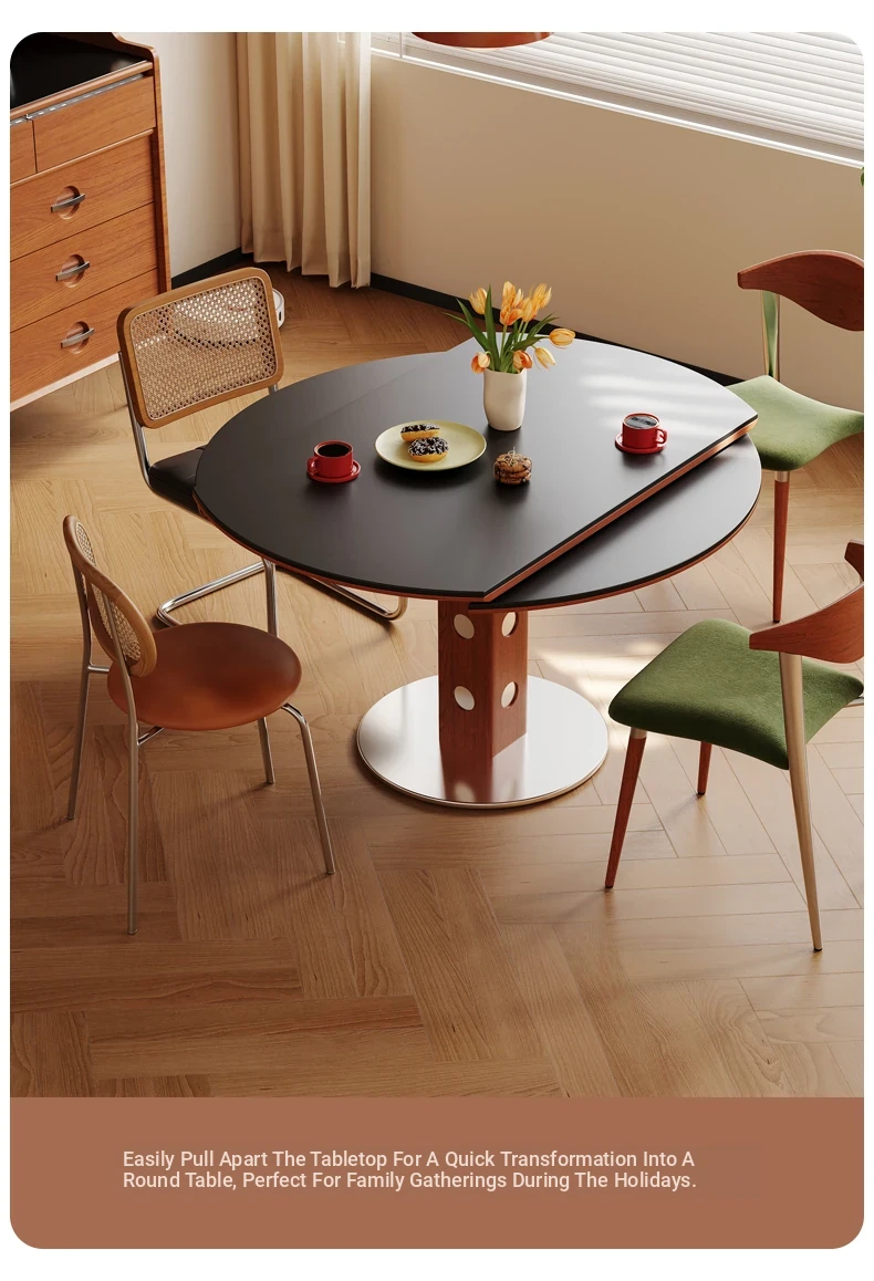 Solid Wood Rock Plate Dining Table - Vintage Style for Small Spaces, Bauhaus Design, Foldable Square to Round Table with Expandable Features for Home Living Room