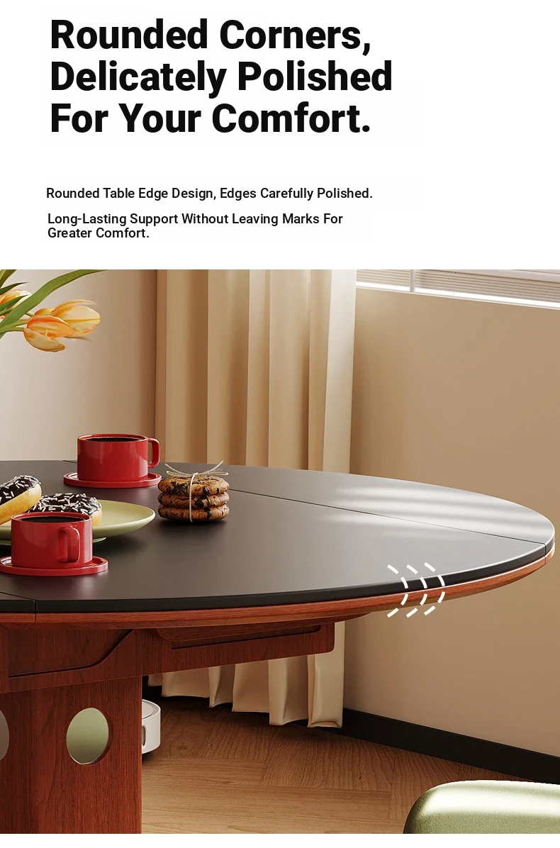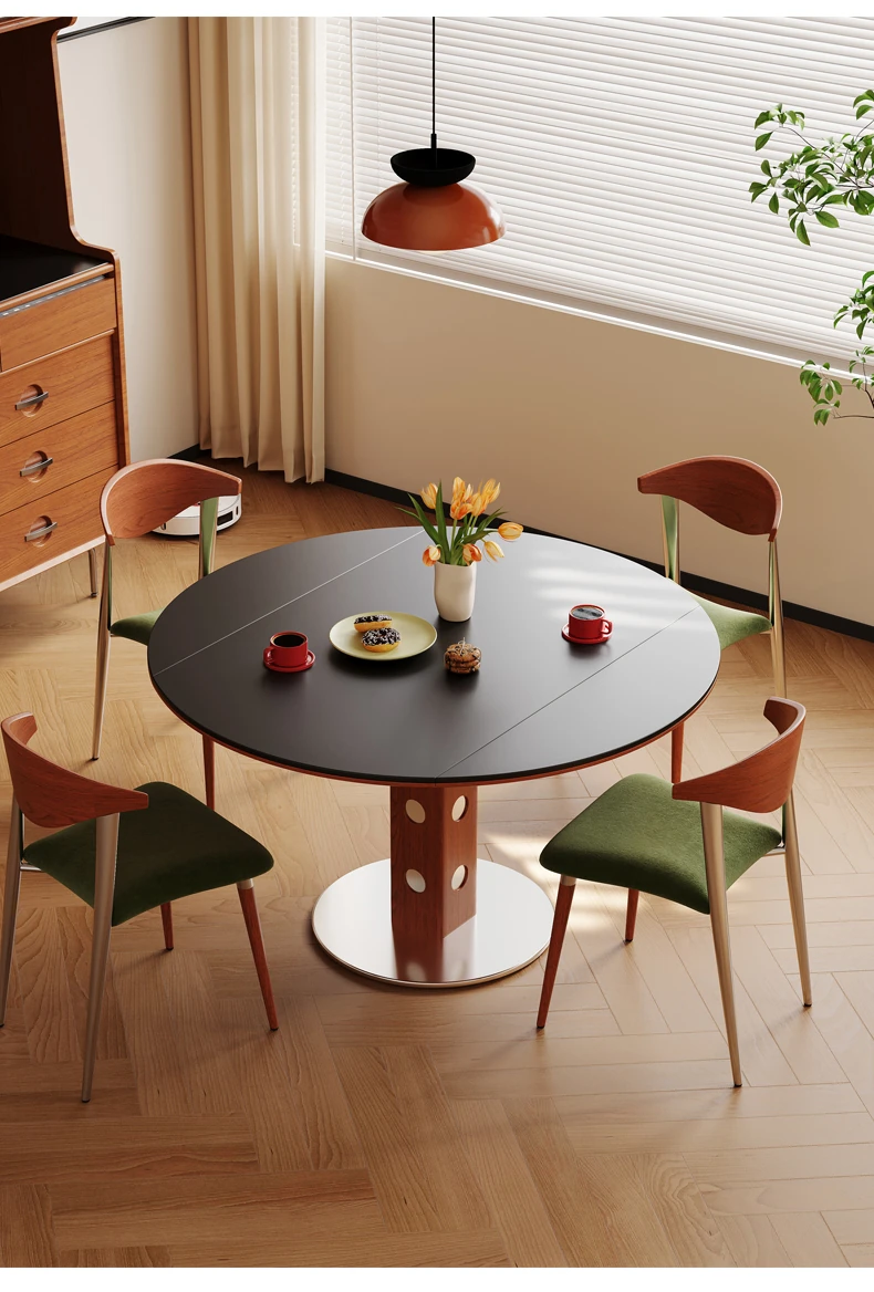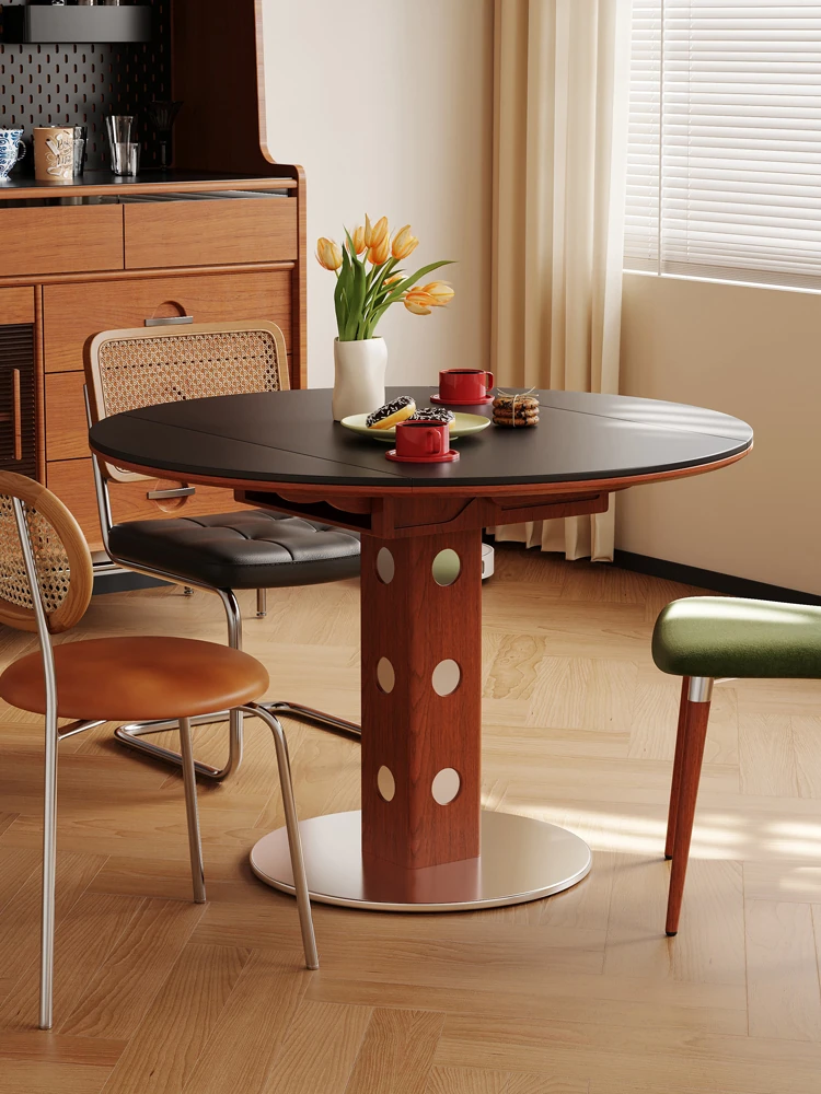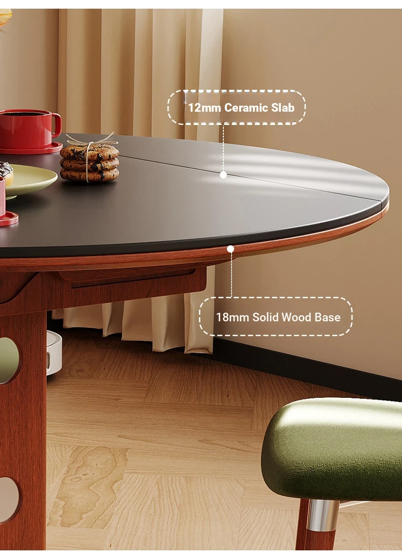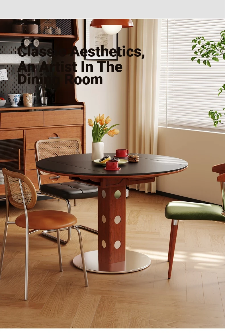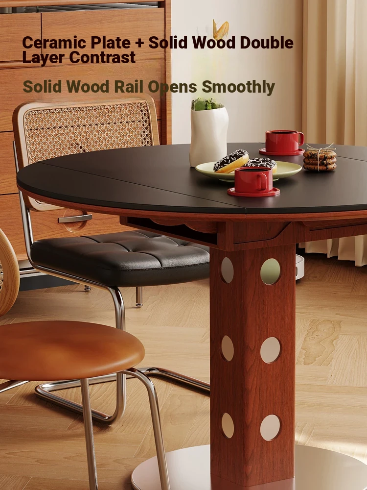 Solid Wood Rock Plate Dining Table - Vintage Style for Small Spaces, Bauhaus Design, Foldable Square to Round Table with Expandable Features for Home Living Room