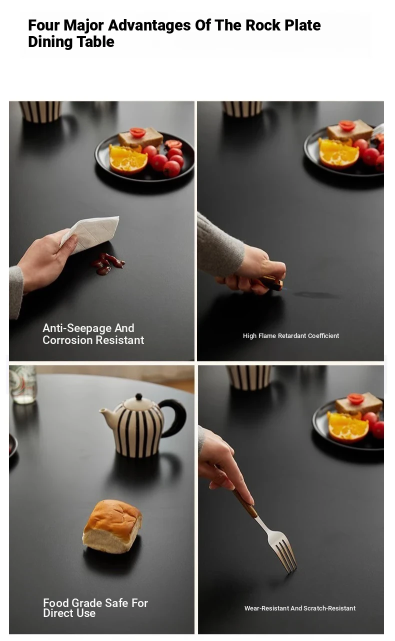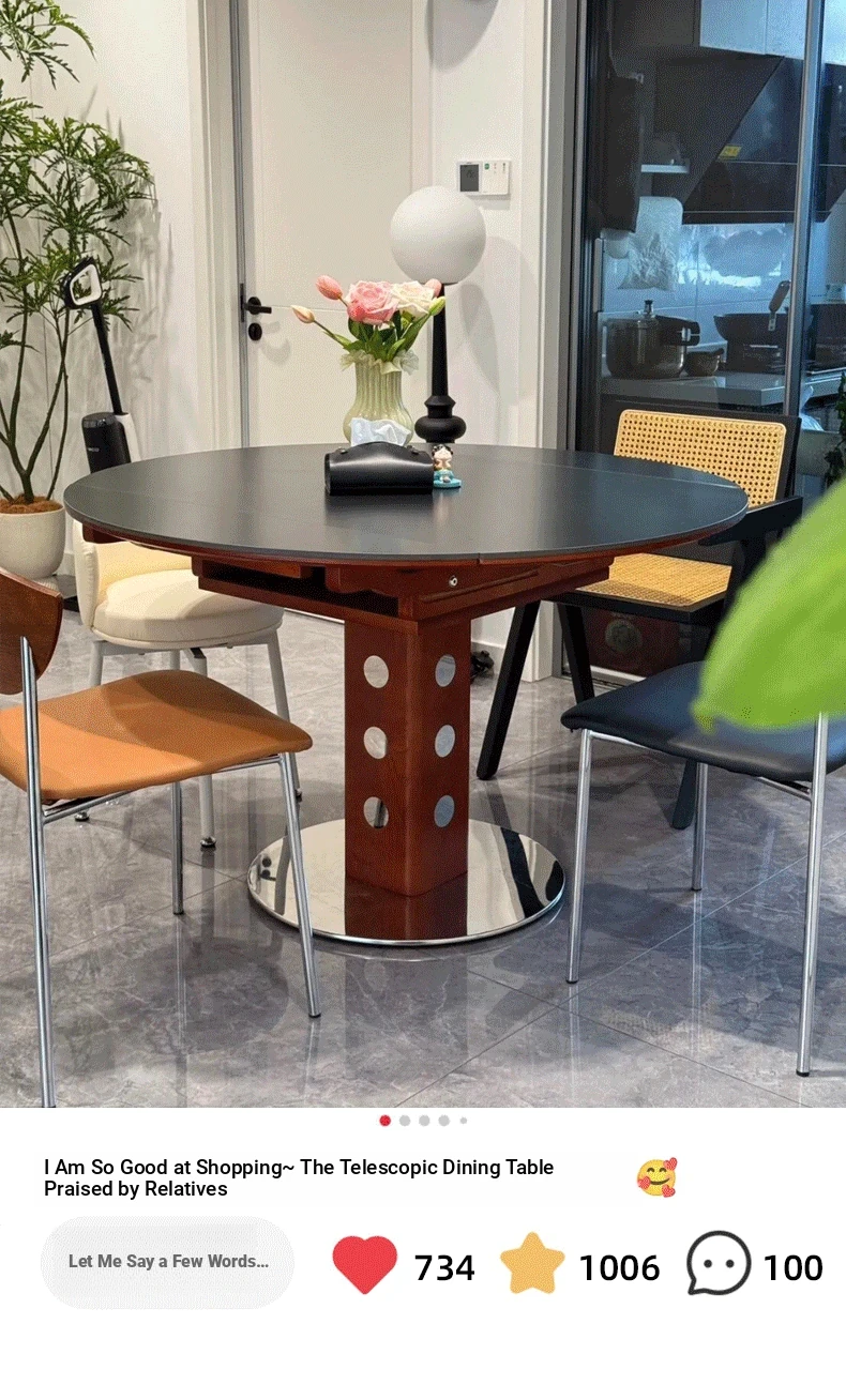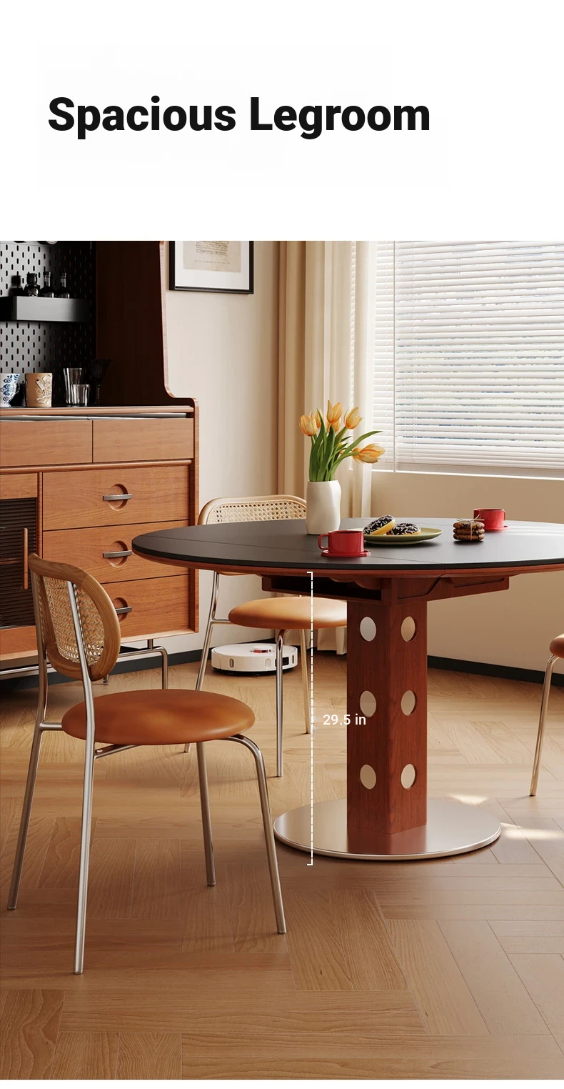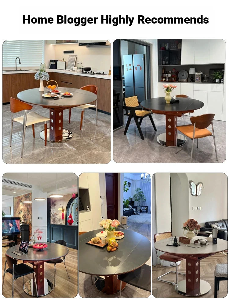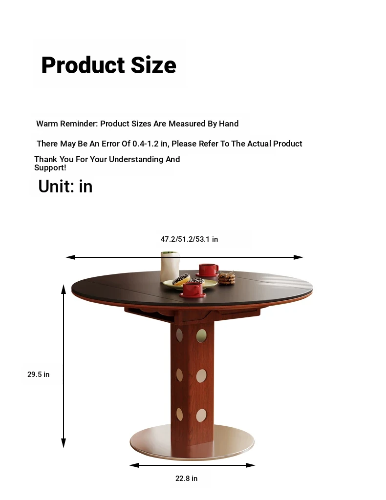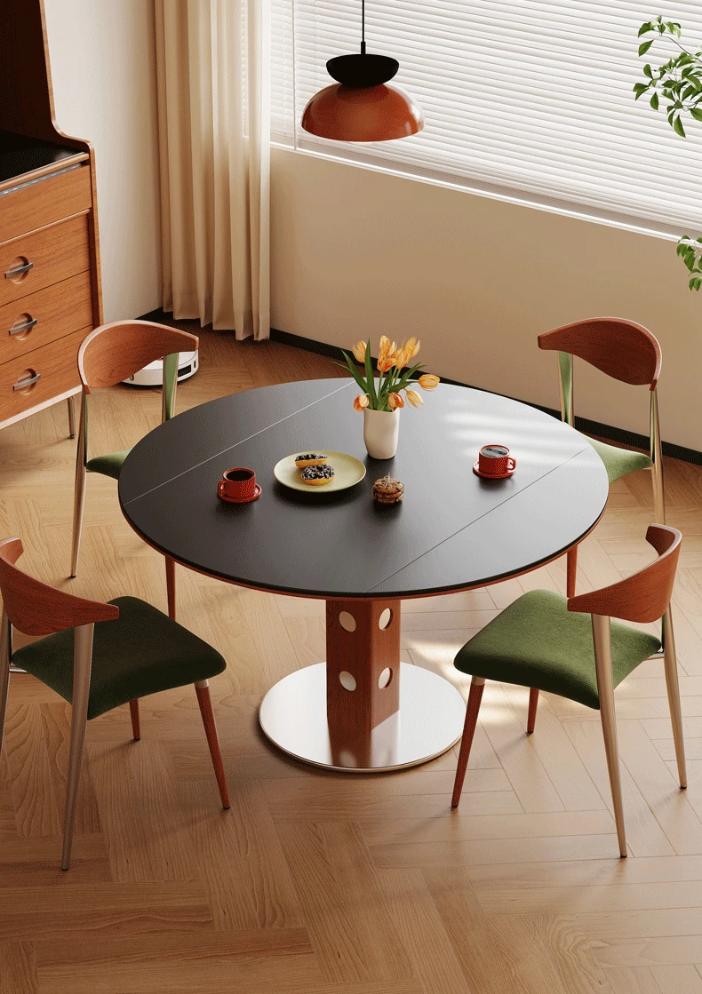 Solid Wood Rock Plate Dining Table - Vintage Style for Small Spaces, Bauhaus Design, Foldable Square to Round Table with Expandable Features for Home Living Room