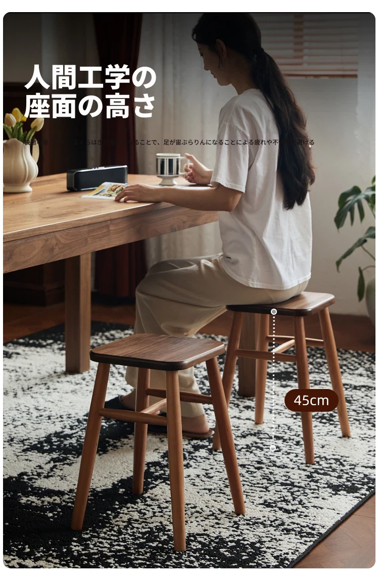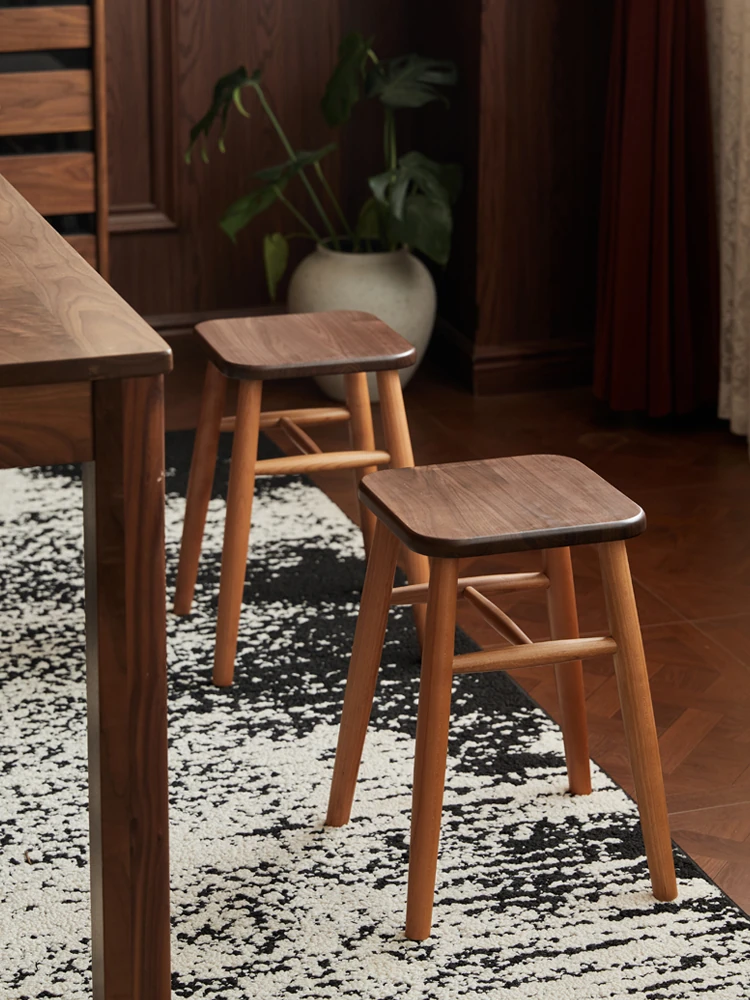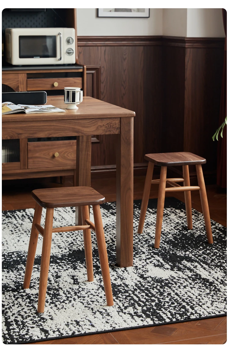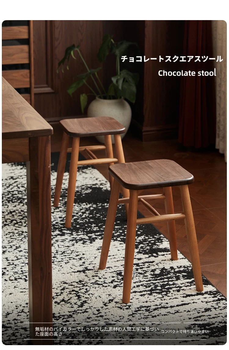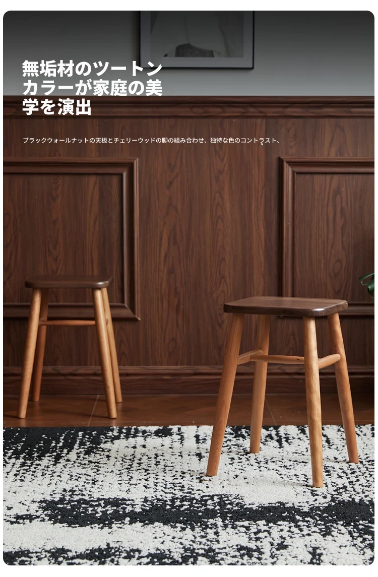 全実木製の黒檀・チェリーウッドの化粧台用スツール - ナチュラルな風合いを楽しむ、シンプルでスタイリッシュなデザイン!ダイニングやリビングにぴったりなモダンな低いスクエアスツールとラウンドスツール。