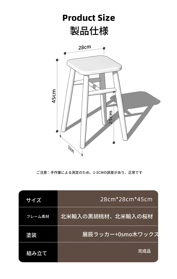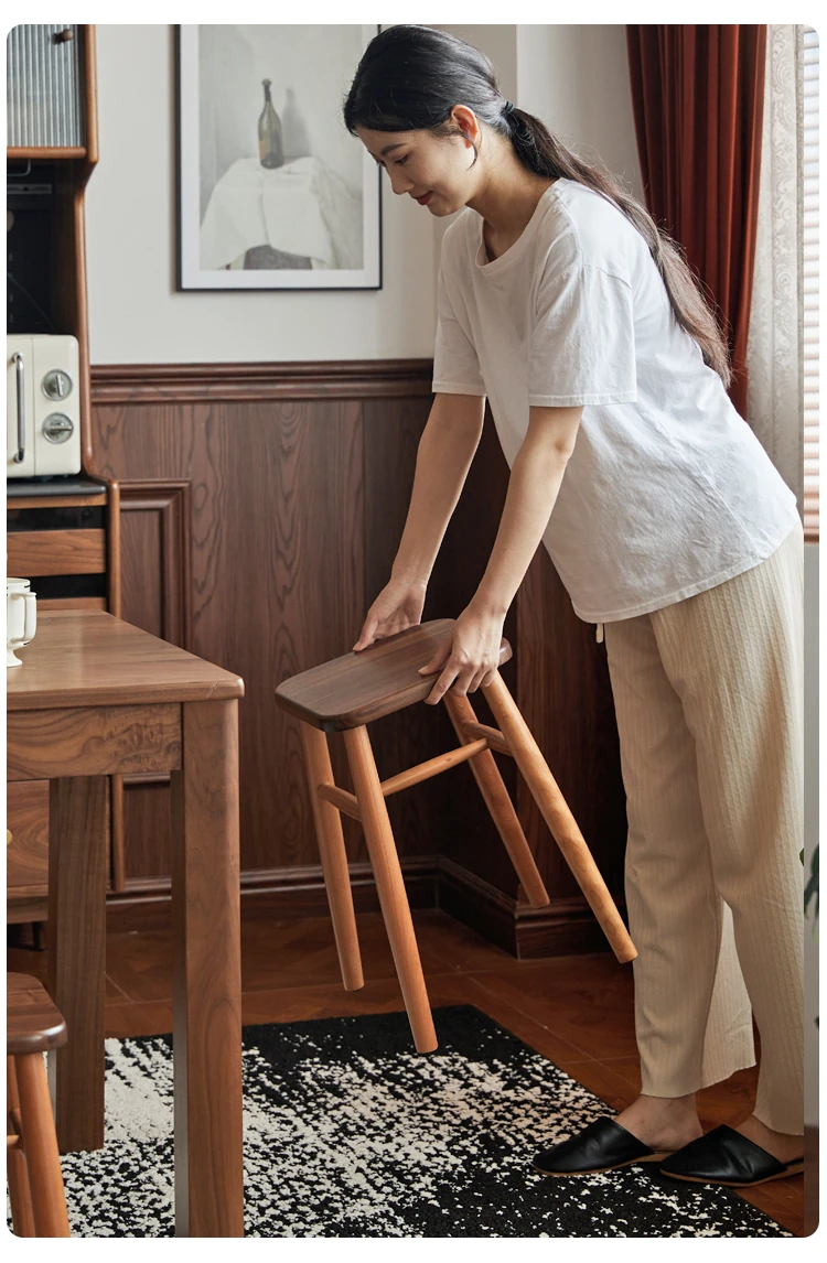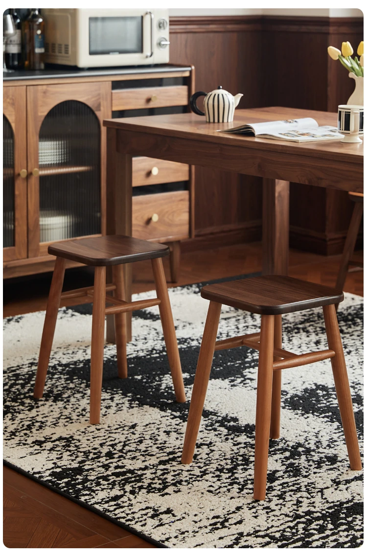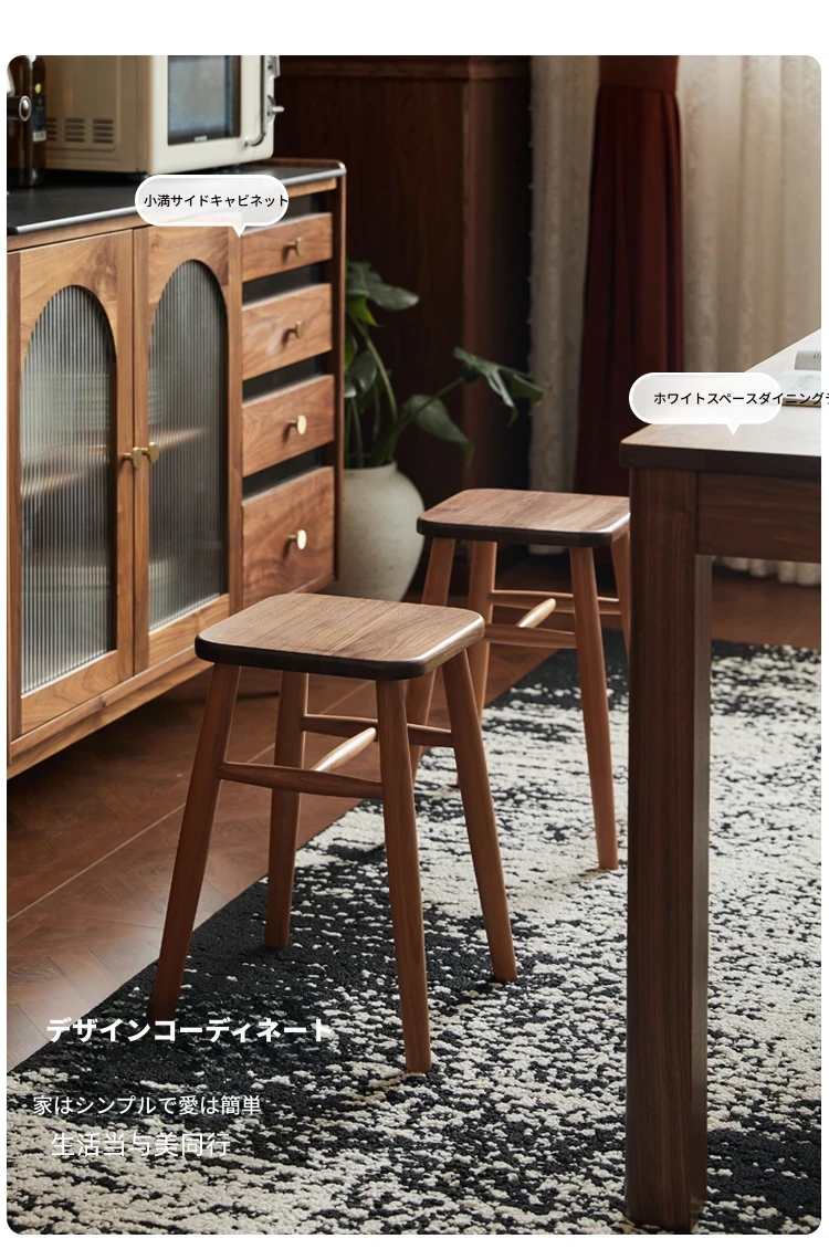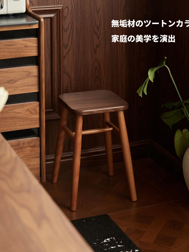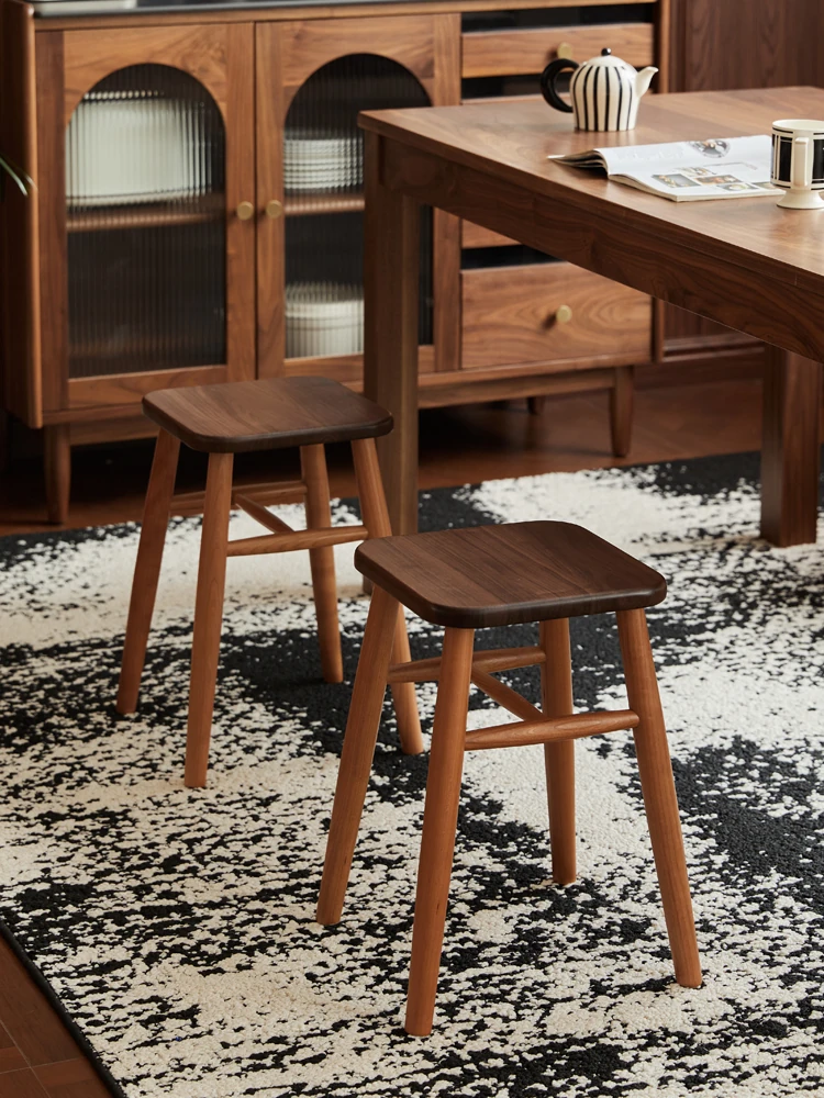 全実木製の黒檀・チェリーウッドの化粧台用スツール - ナチュラルな風合いを楽しむ、シンプルでスタイリッシュなデザイン!ダイニングやリビングにぴったりなモダンな低いスクエアスツールとラウンドスツール。