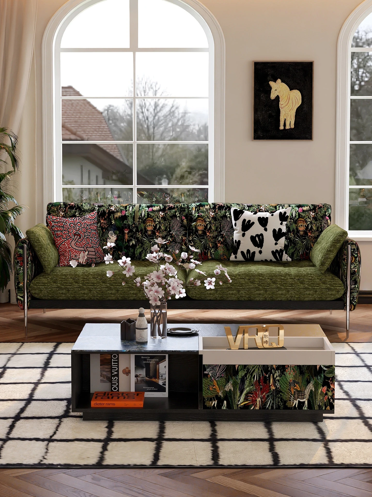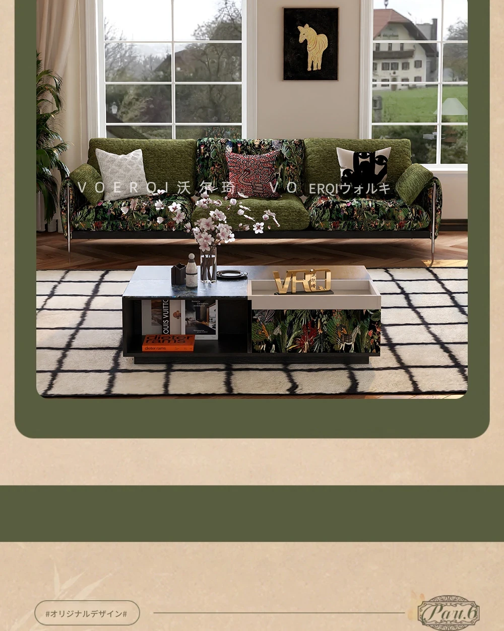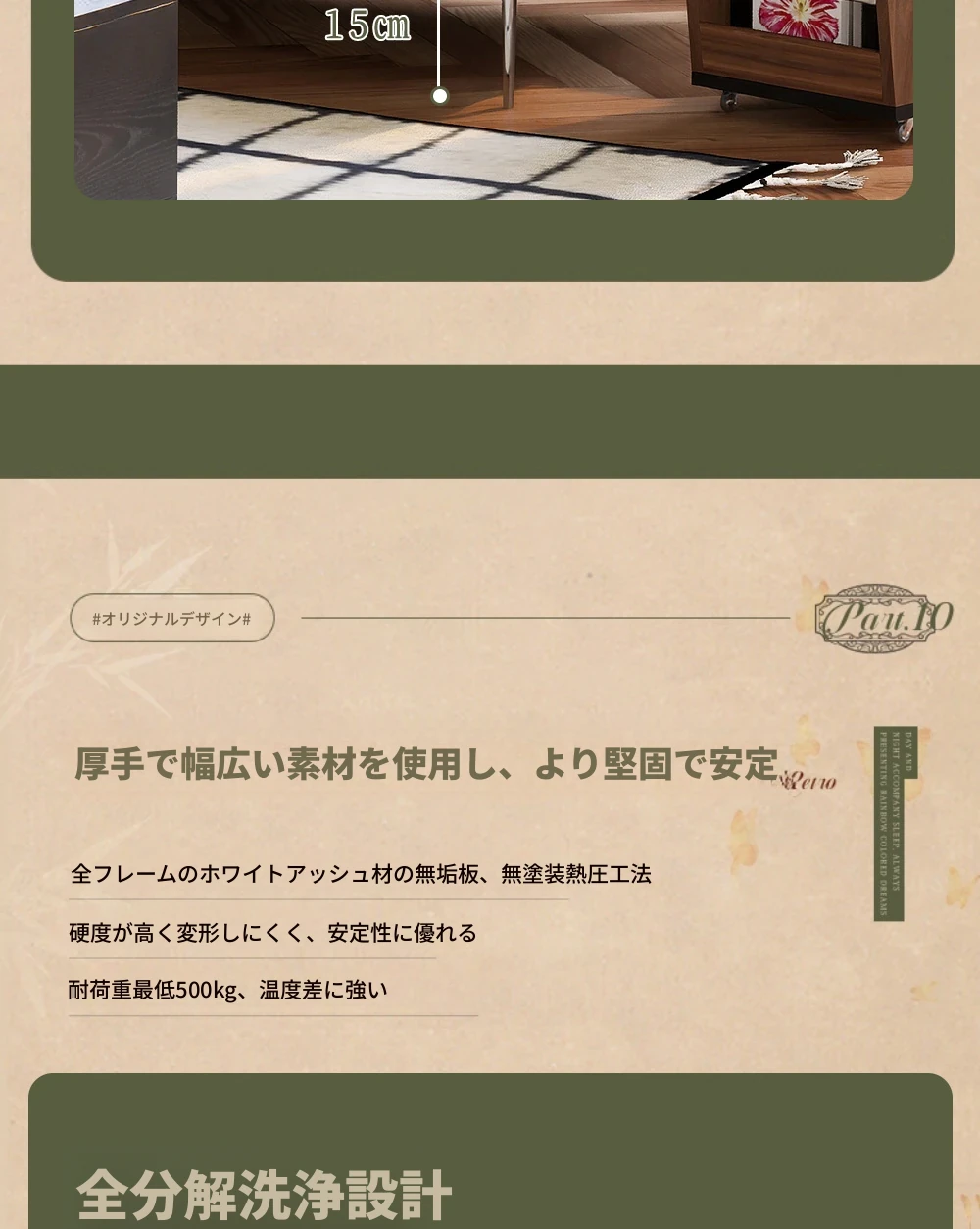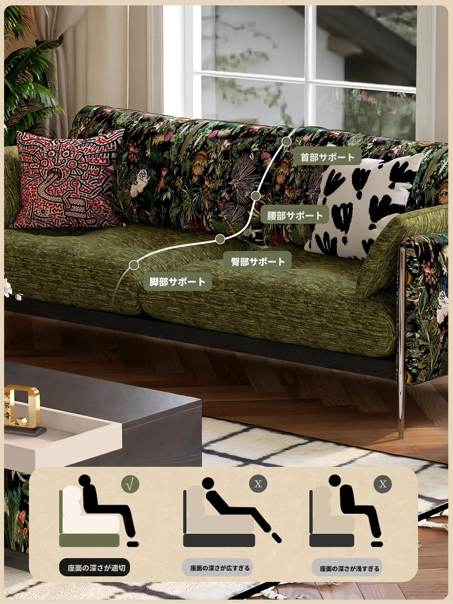 ウォルキ フレンチビンテージ生地ソファ 小型リビングに最適な直列型 中古 森の雰囲気漂う雲のようなデザイン 天然木製 洗えるソファでお手入れ簡単!