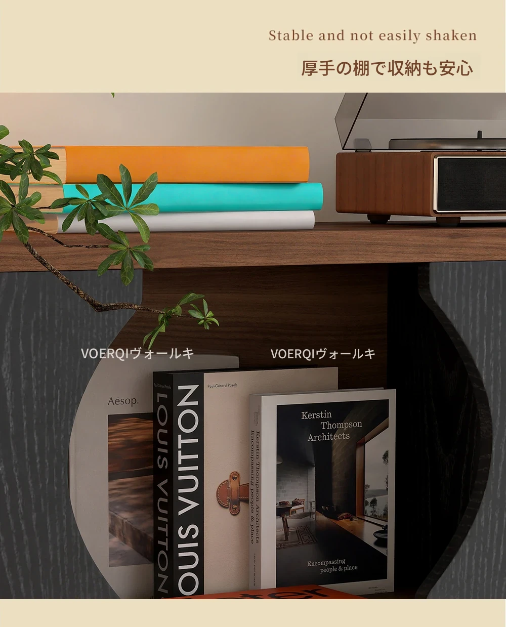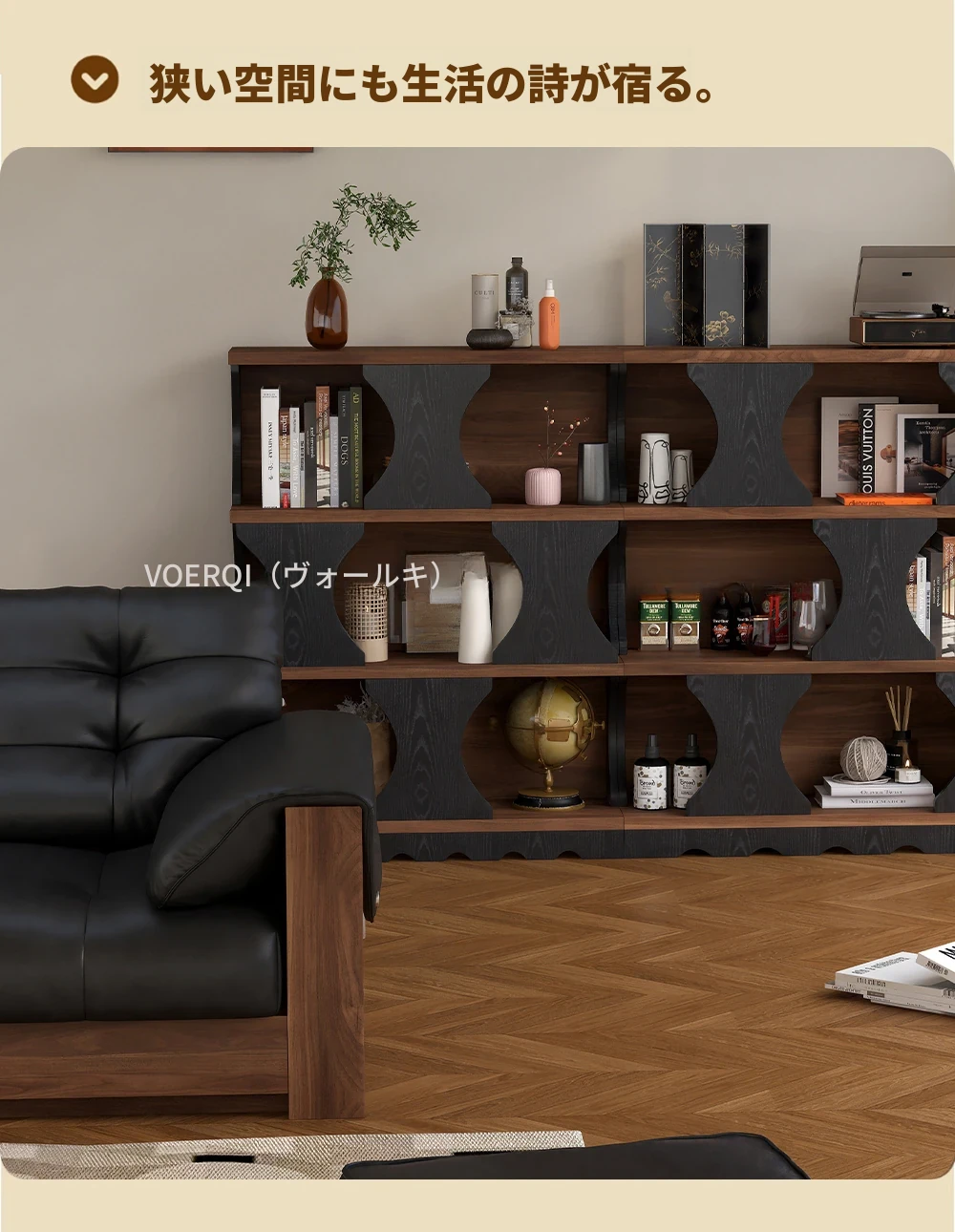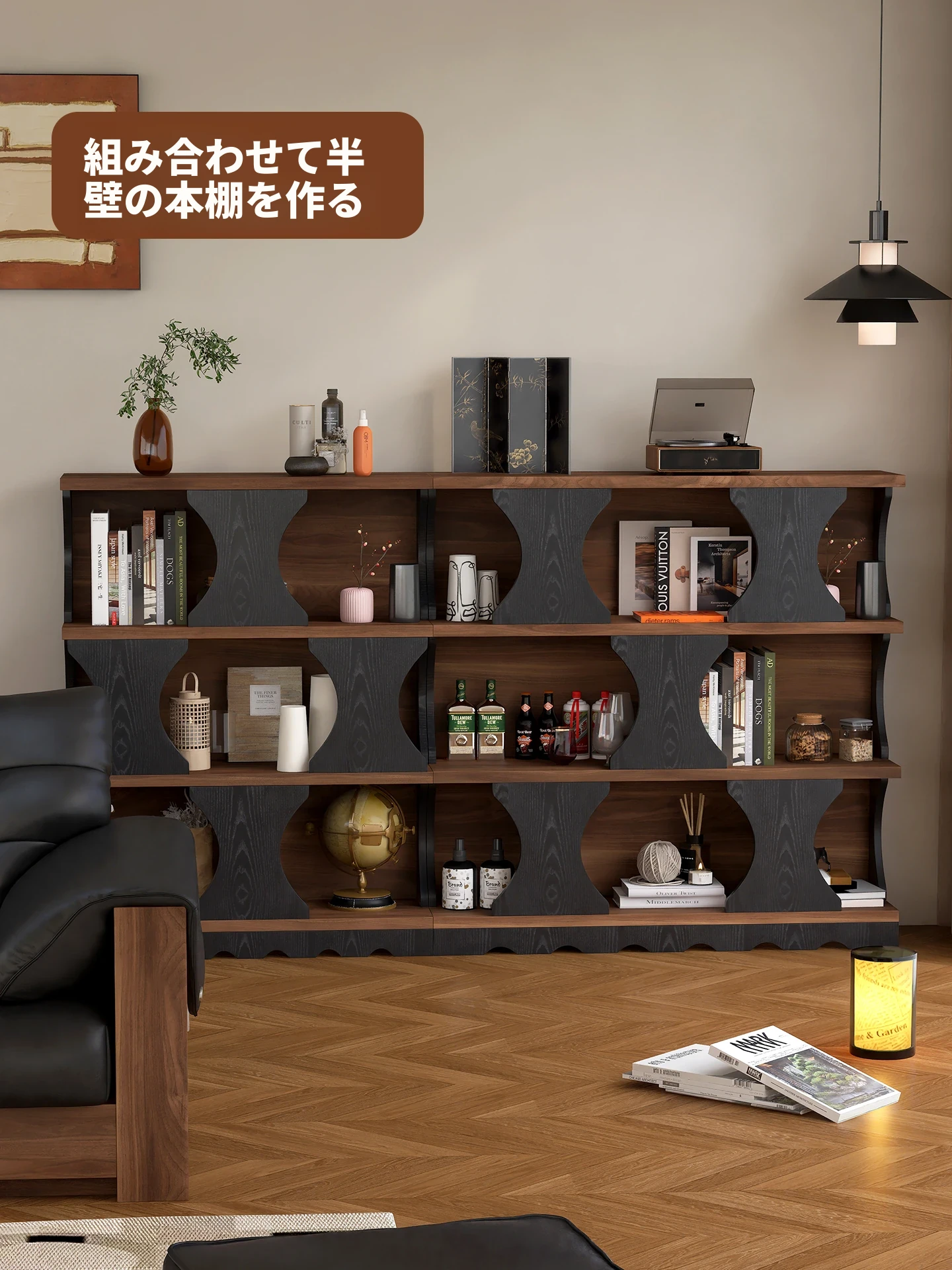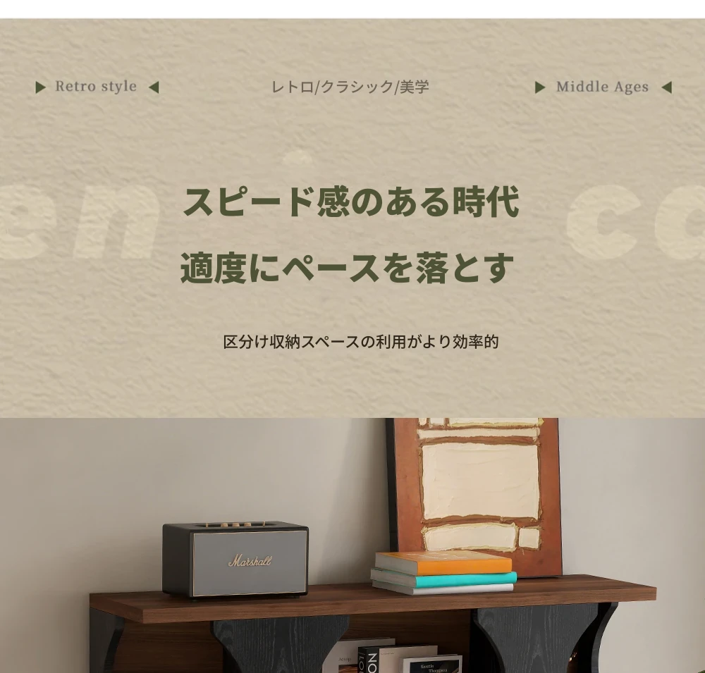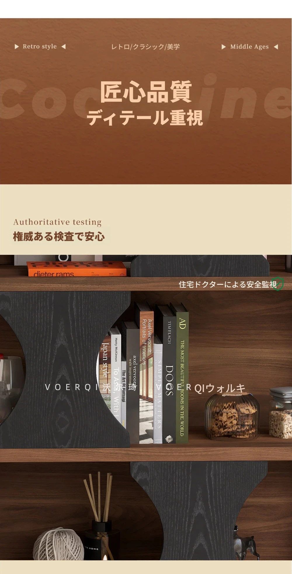 ウォルキ古風スタイルの無垢材ハリー書棚、リビングルーム用収納サイドキャビネット、ウォールナット色のレトロアーチ型ワインキャビネットコンビネーションキャビネットで、魅力的なインテリアを演出!