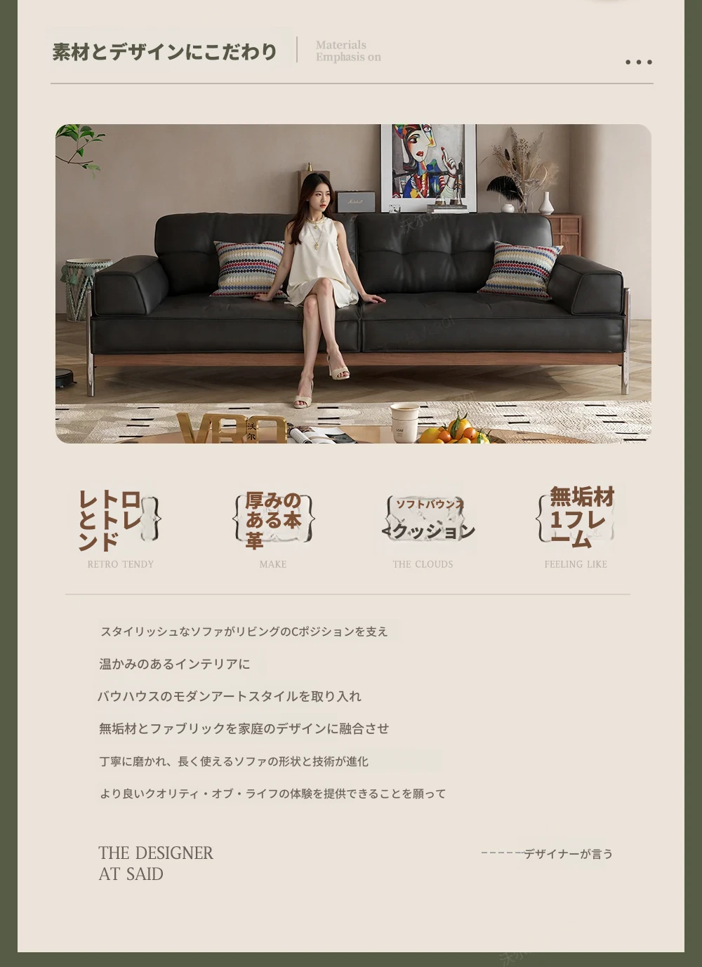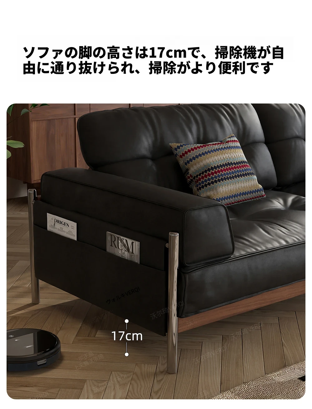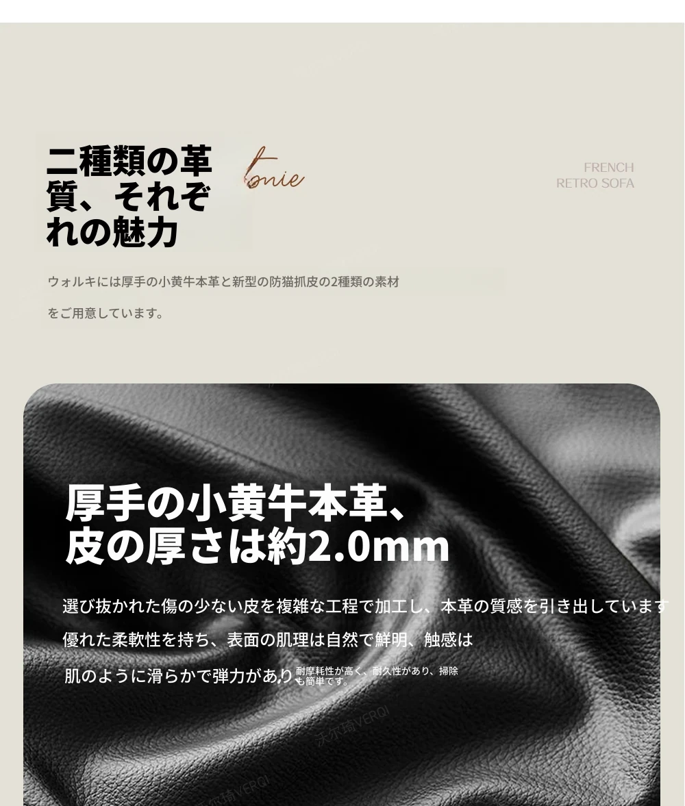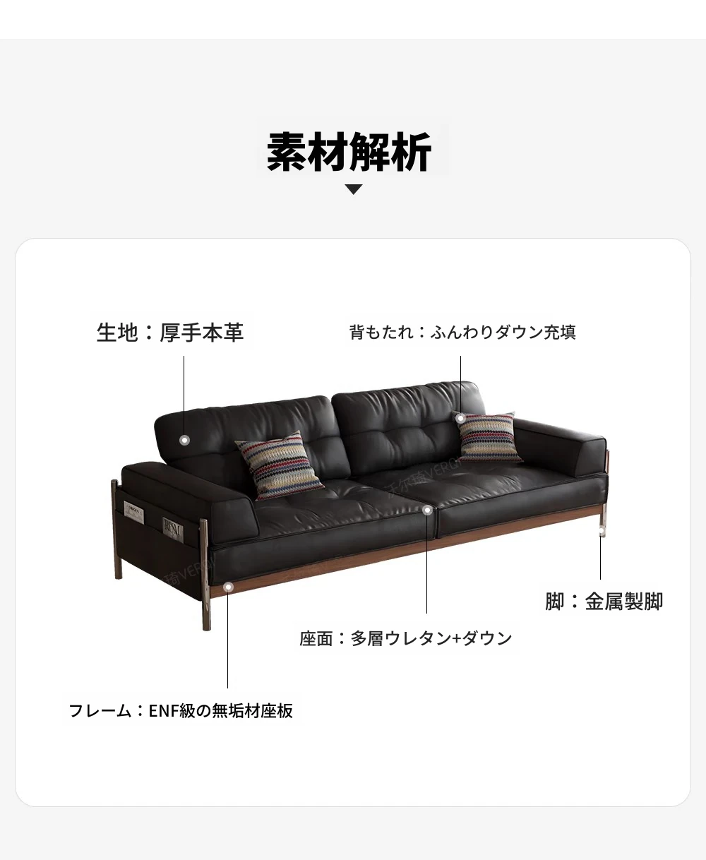 ウォルキ 中古風実木真皮ソファ 小型フレンチレトロリビング ブラックストレートバウハウスソファ - 高級感溢れるデザインで狭い空間もお洒落に演出!