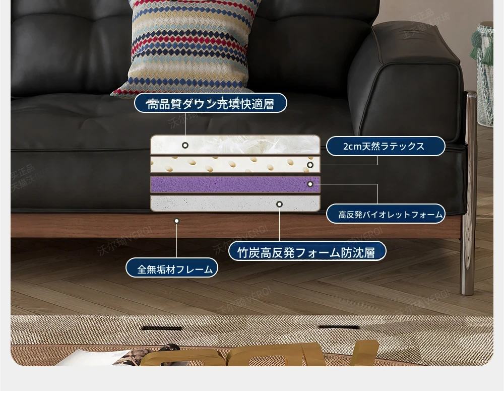 厚手の小型黄牛革【ダウン+バイオレット+竹炭スポンジ+ウォールナット色フレーム】
