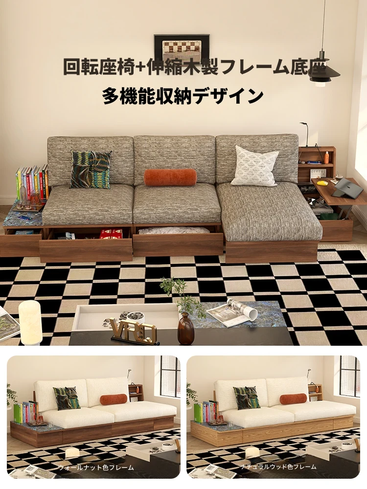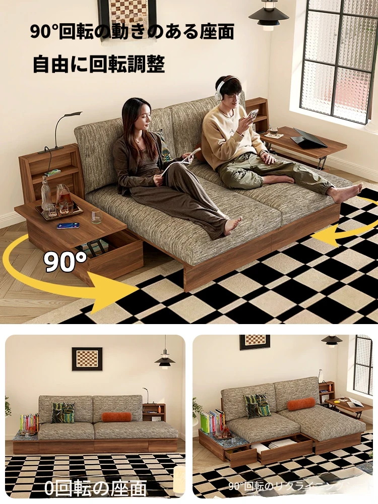 ウォルキーシェニールファブリックソファ レトロスタイル リビングルーム用 回転式フェイスタイプ 多機能ダイナミックアイランドソファで、快適なひとときをお楽しみください!