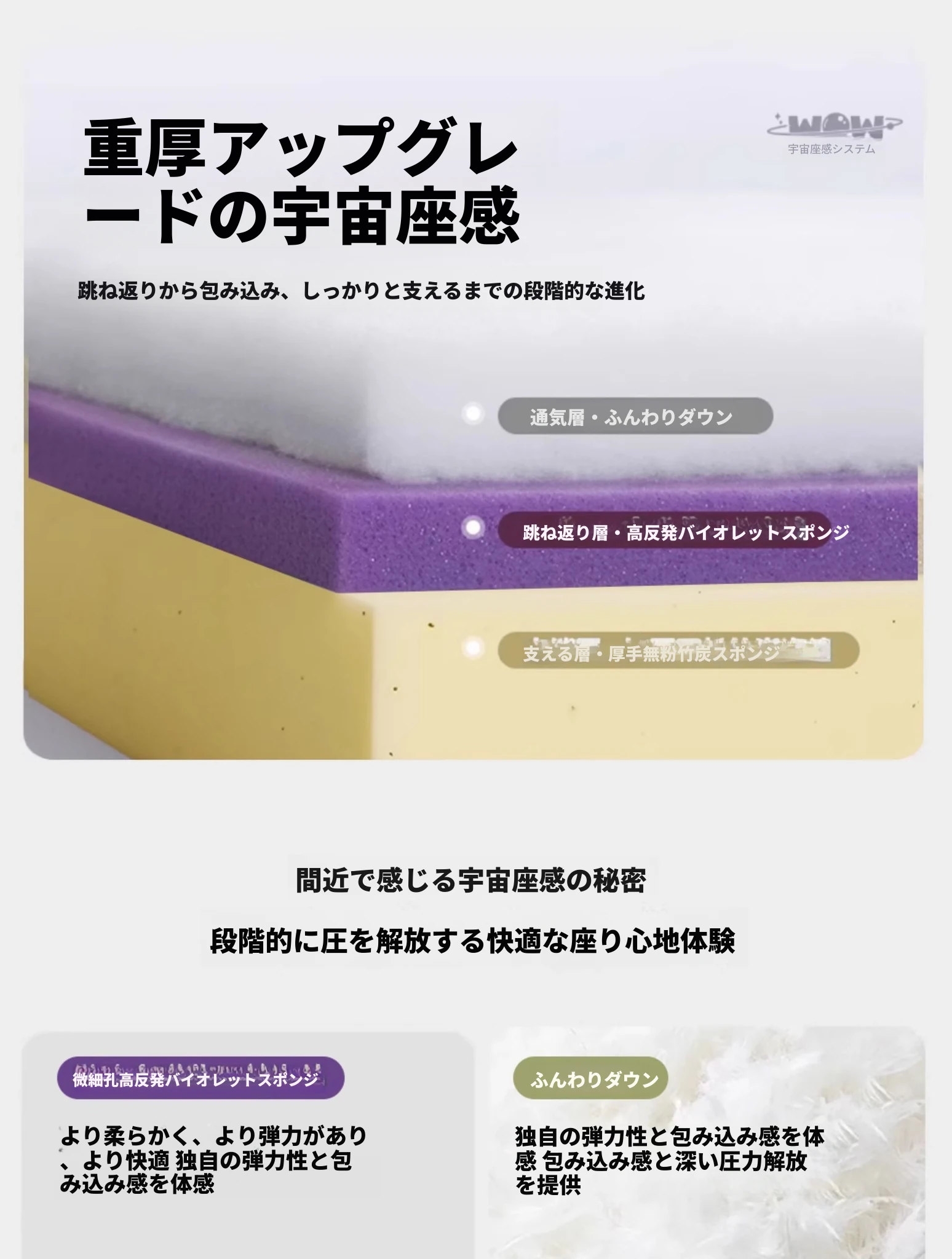 シェニール-ウォールナット色フレーム【ダウン+バイオレット+竹炭スポンジ】