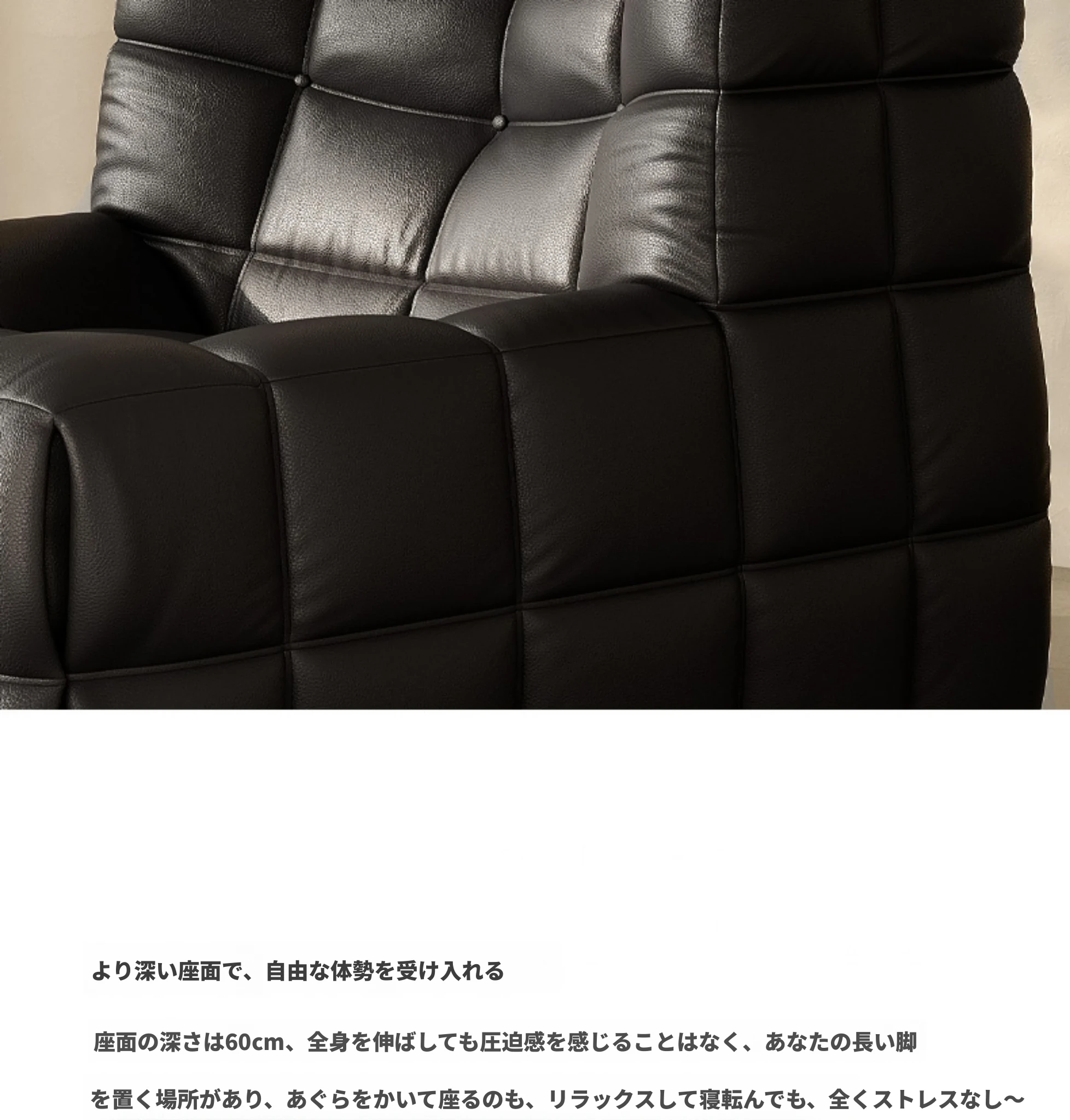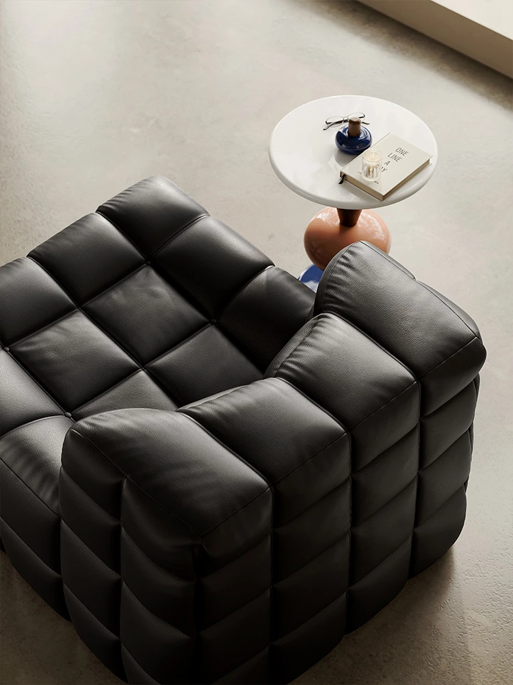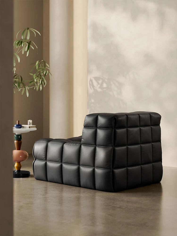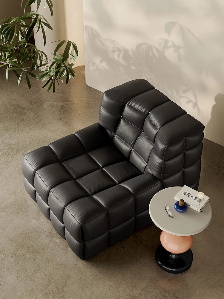 ワッフル鹿島のリクライニングソファ、寝れる!イタリアンラグジュアリーのミニマルデザイン、真皮の一人用ソファ。ふわふわのキューブ型、リラックスしたいあなたにぴったり!