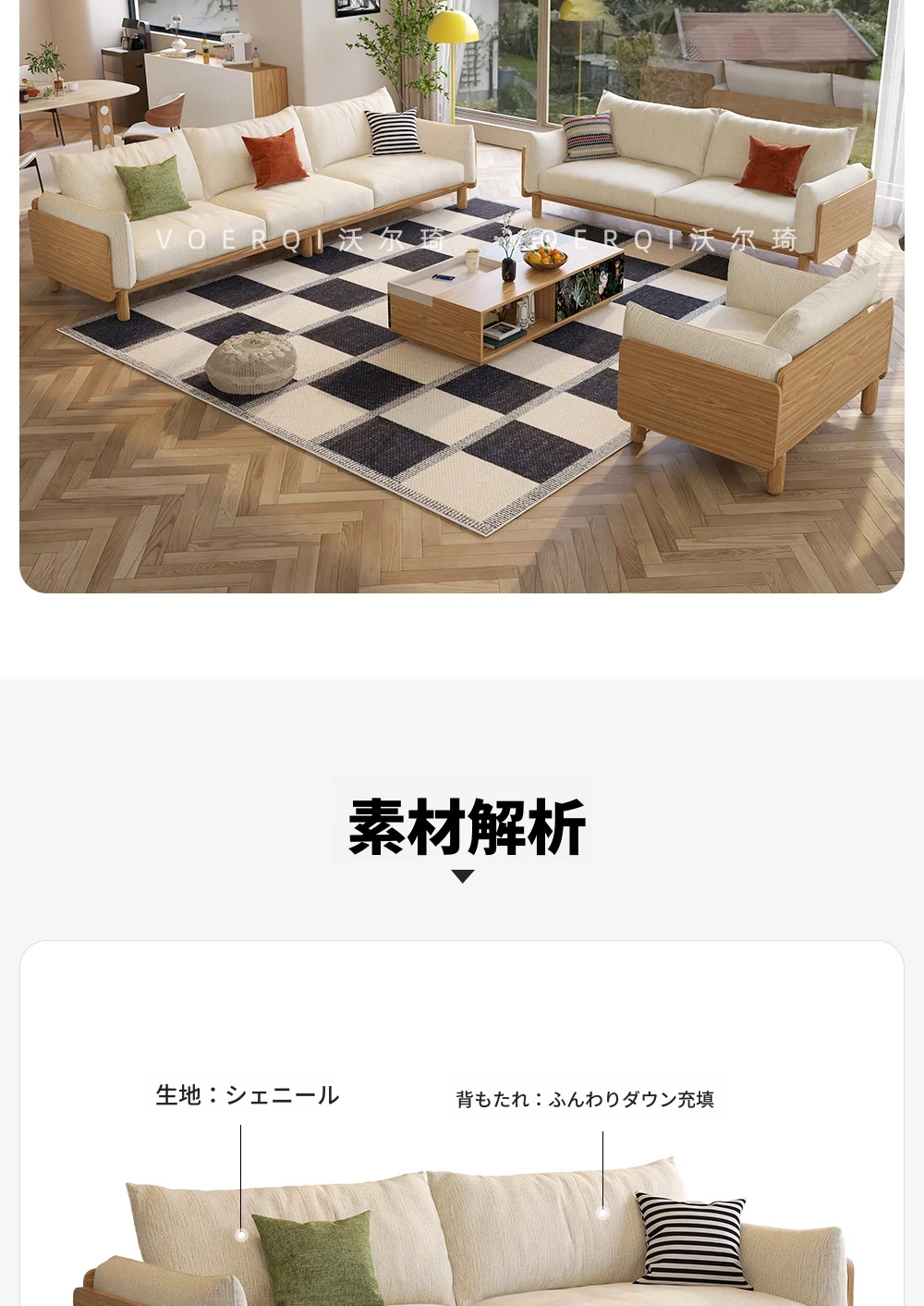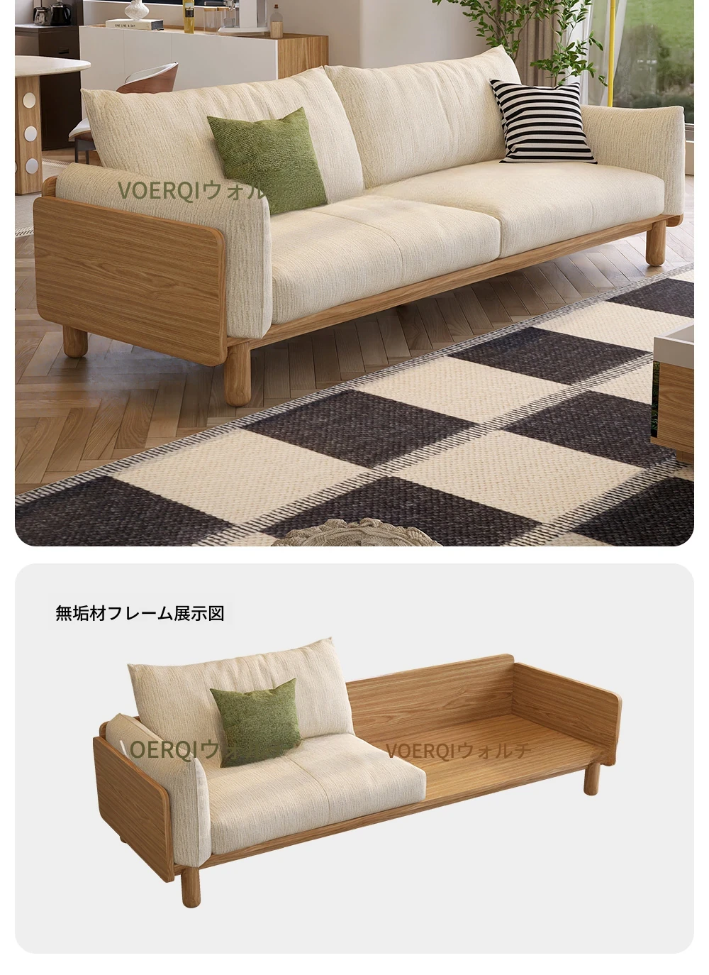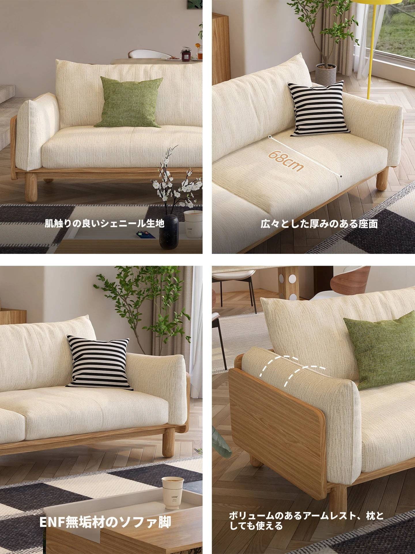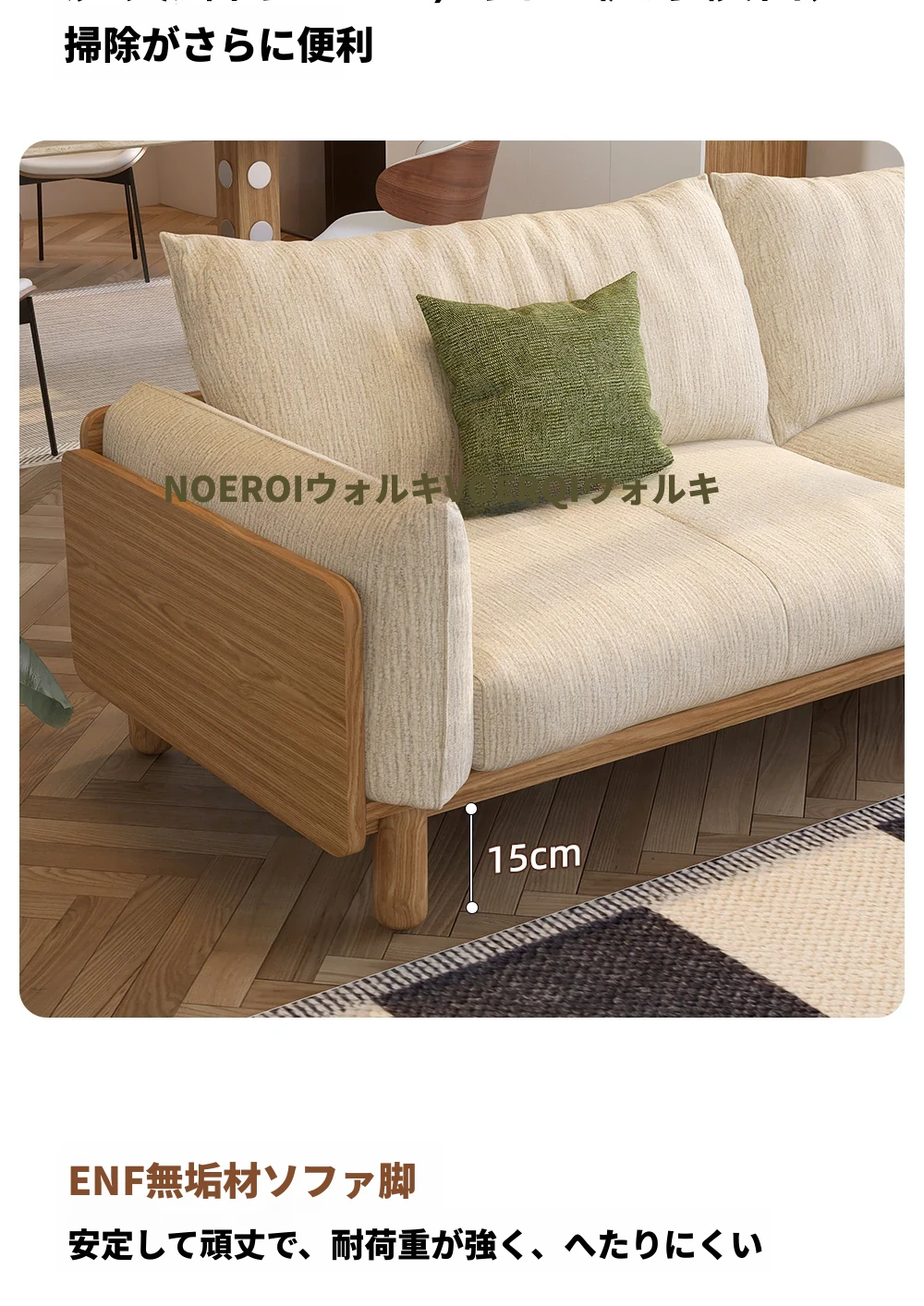 ウォルキ・シェニール布製ソファは、取り外し可能でお手入れ簡単!北欧スタイルの原木風デザイン、コンパクトな小型リビングにぴったりな3人掛けソファ。快適さと美しさを兼ね備えた一品です。