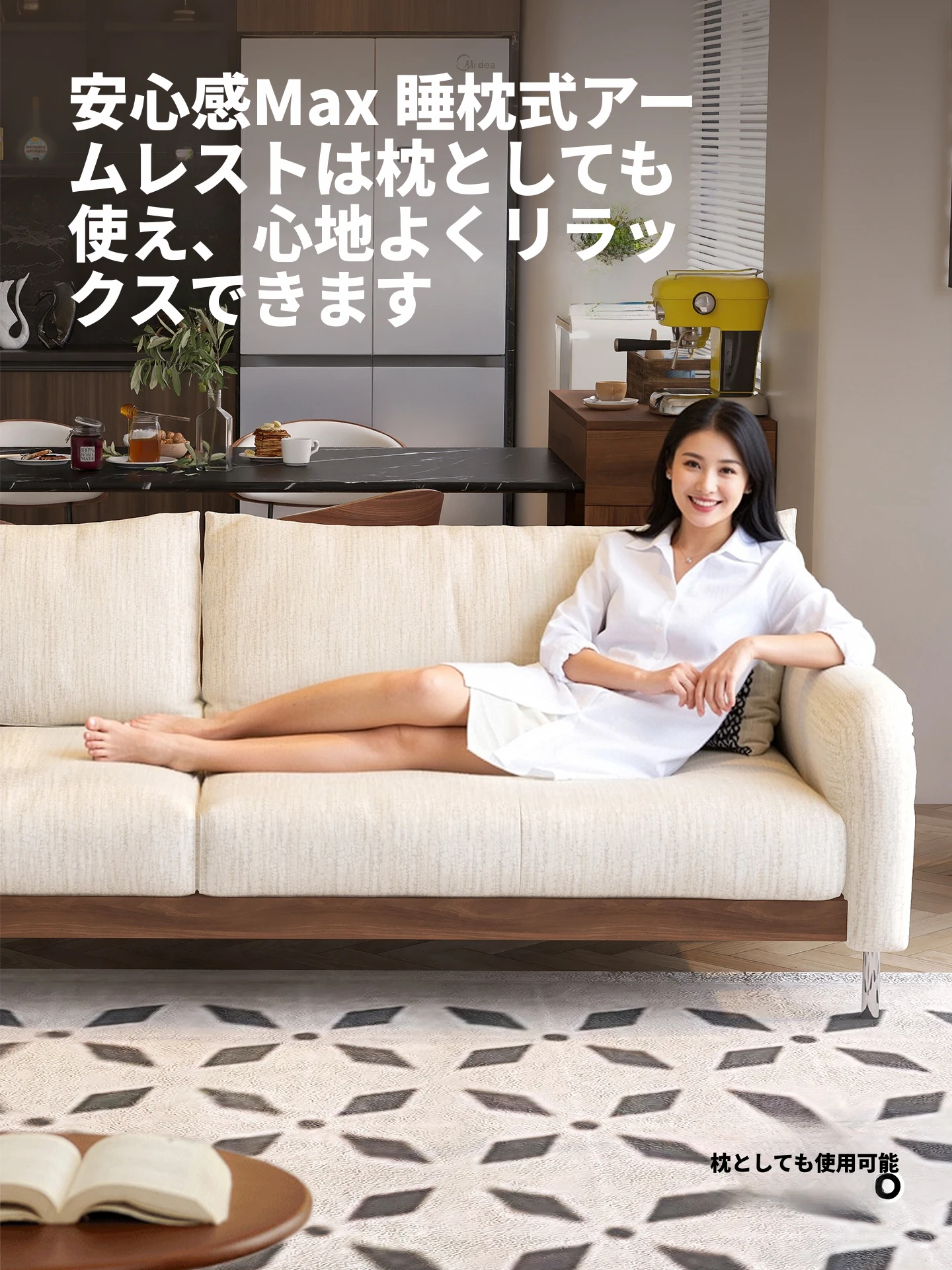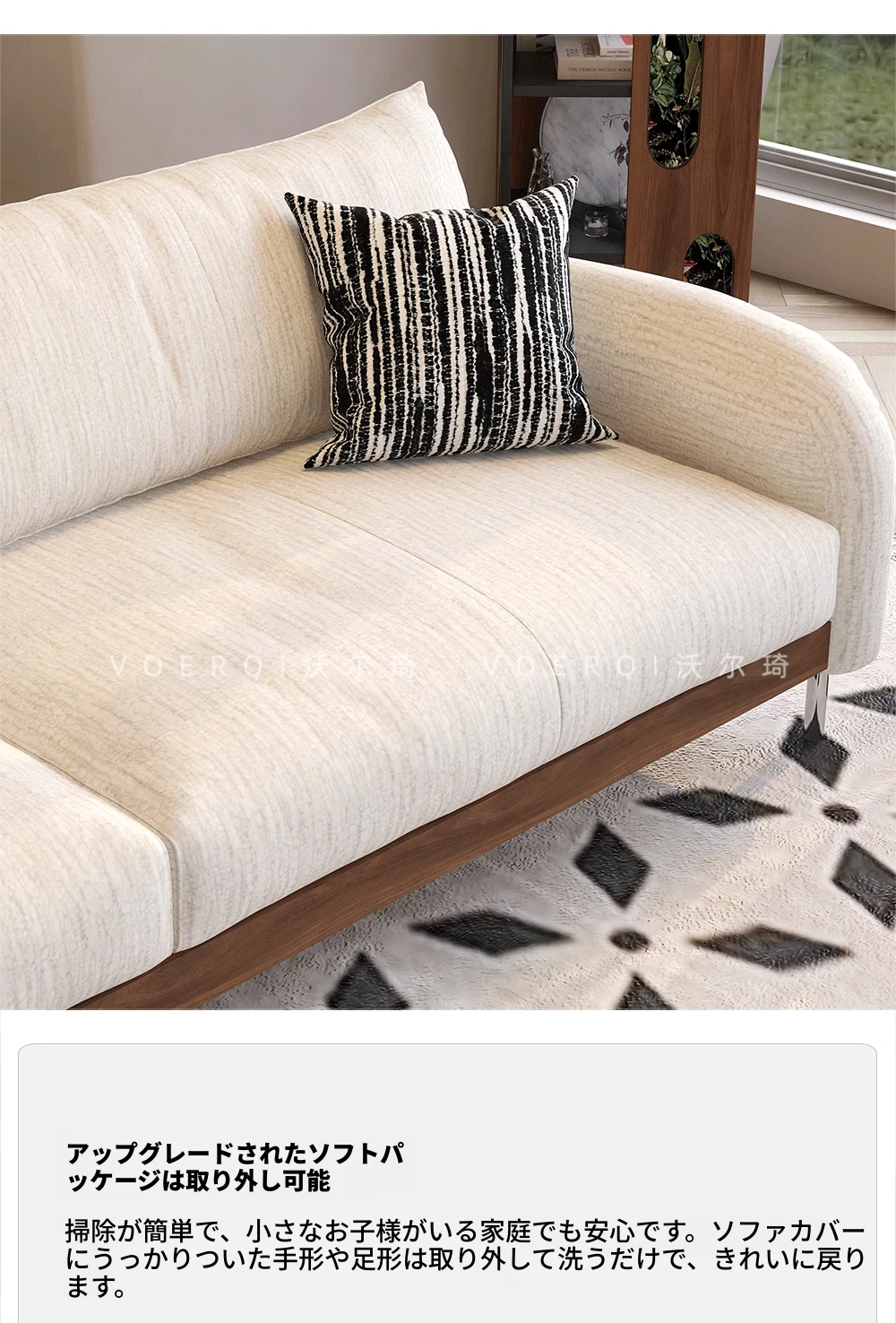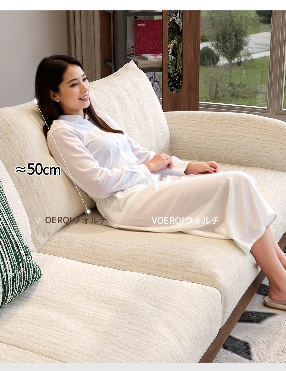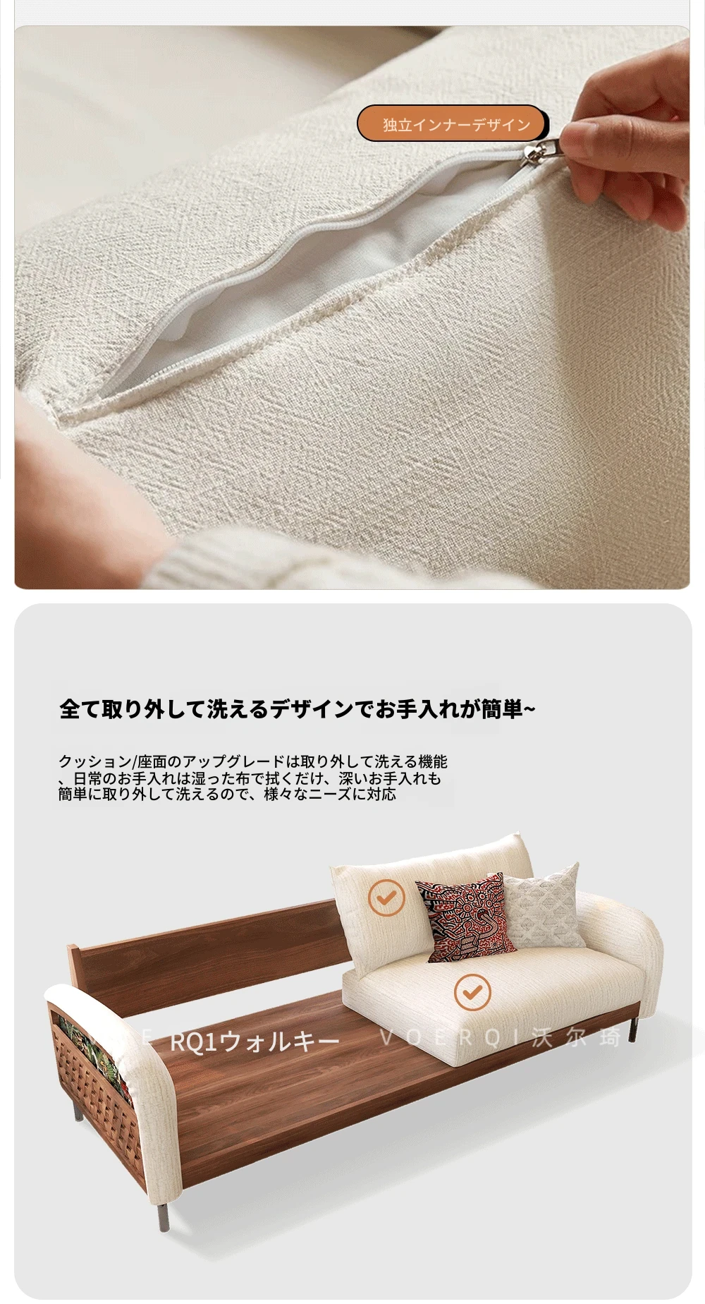 ウォルキーニャ・シェニールソファ フレンチクリームスタイル モダンミニマル 小型住宅向け レトロデザイン 藤編みと無垢材のリビングソファで、優雅な空間を演出!