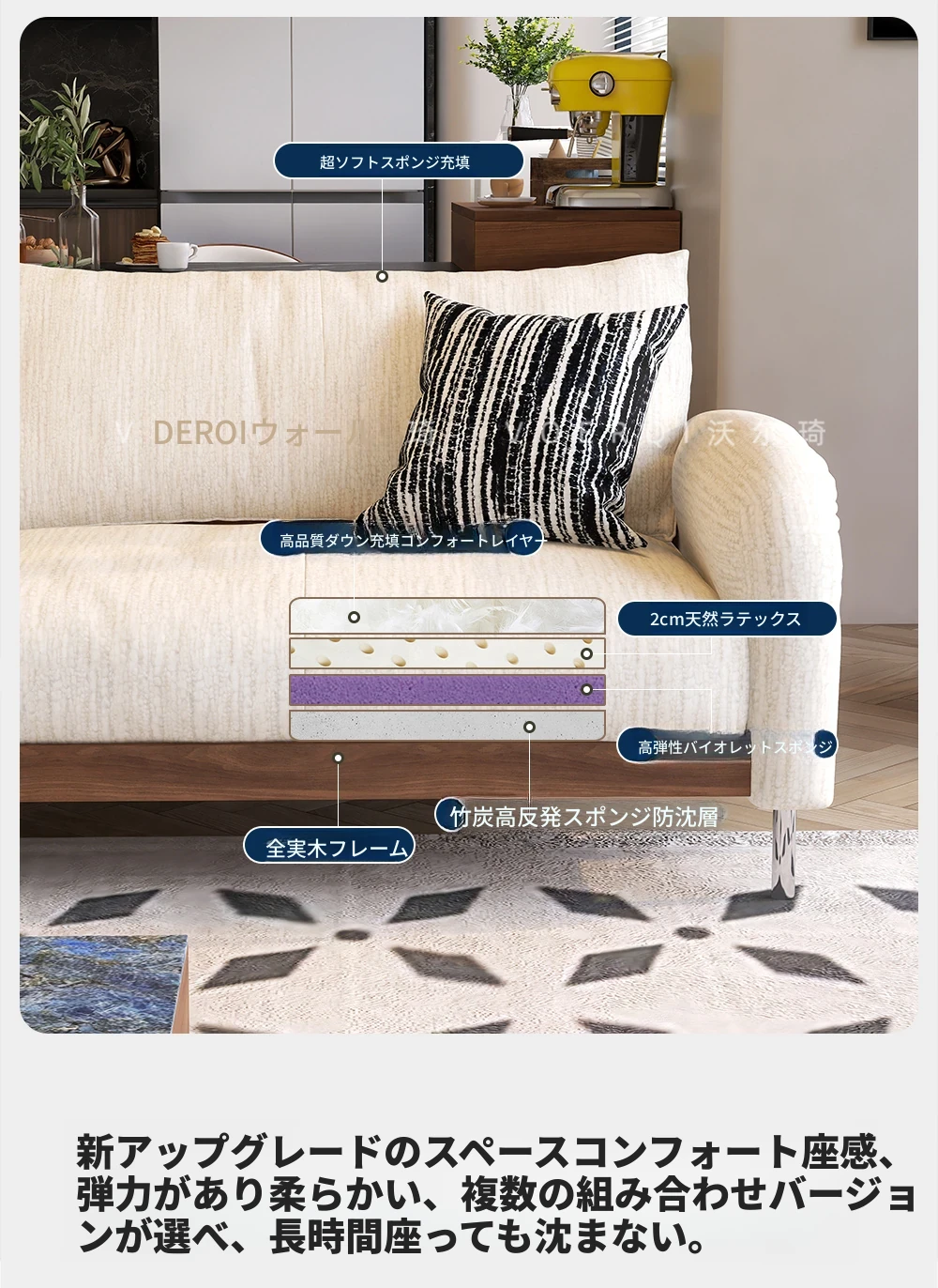 スエード【ダウンラテックス+バイオレット+竹炭スポンジ+ウォールナット色フレーム】