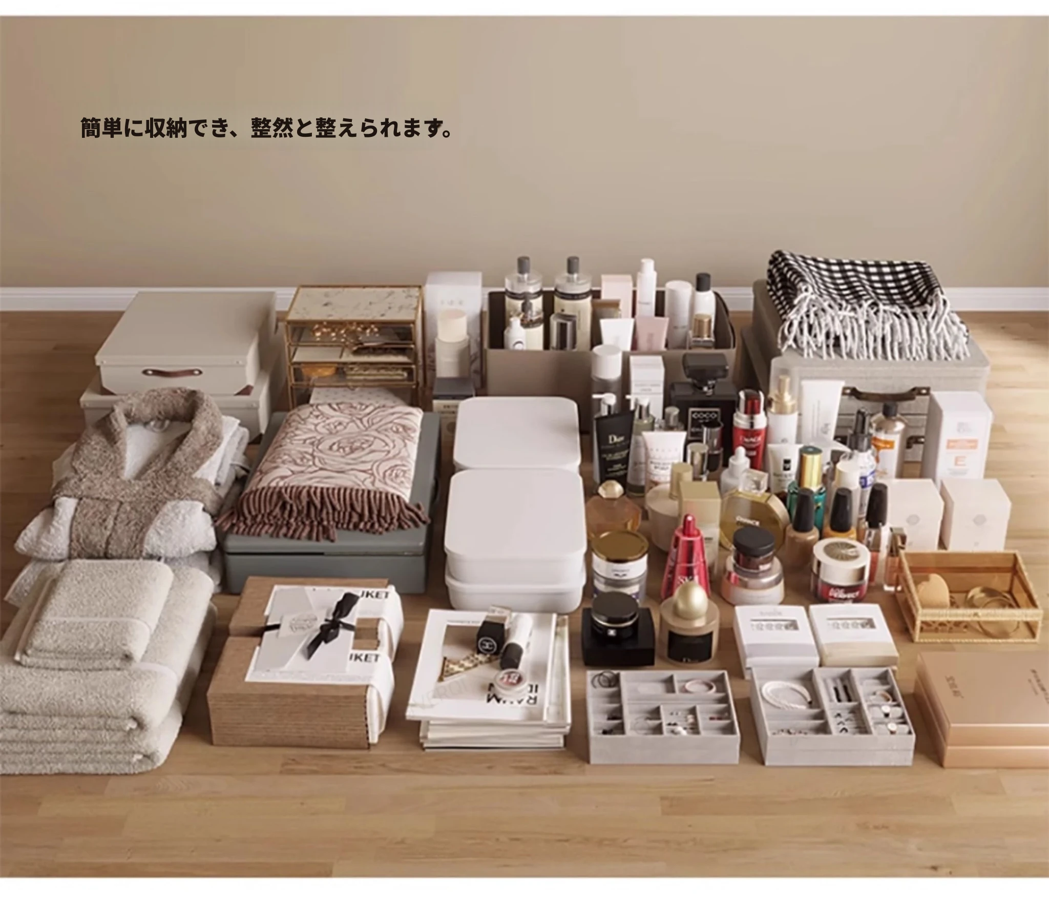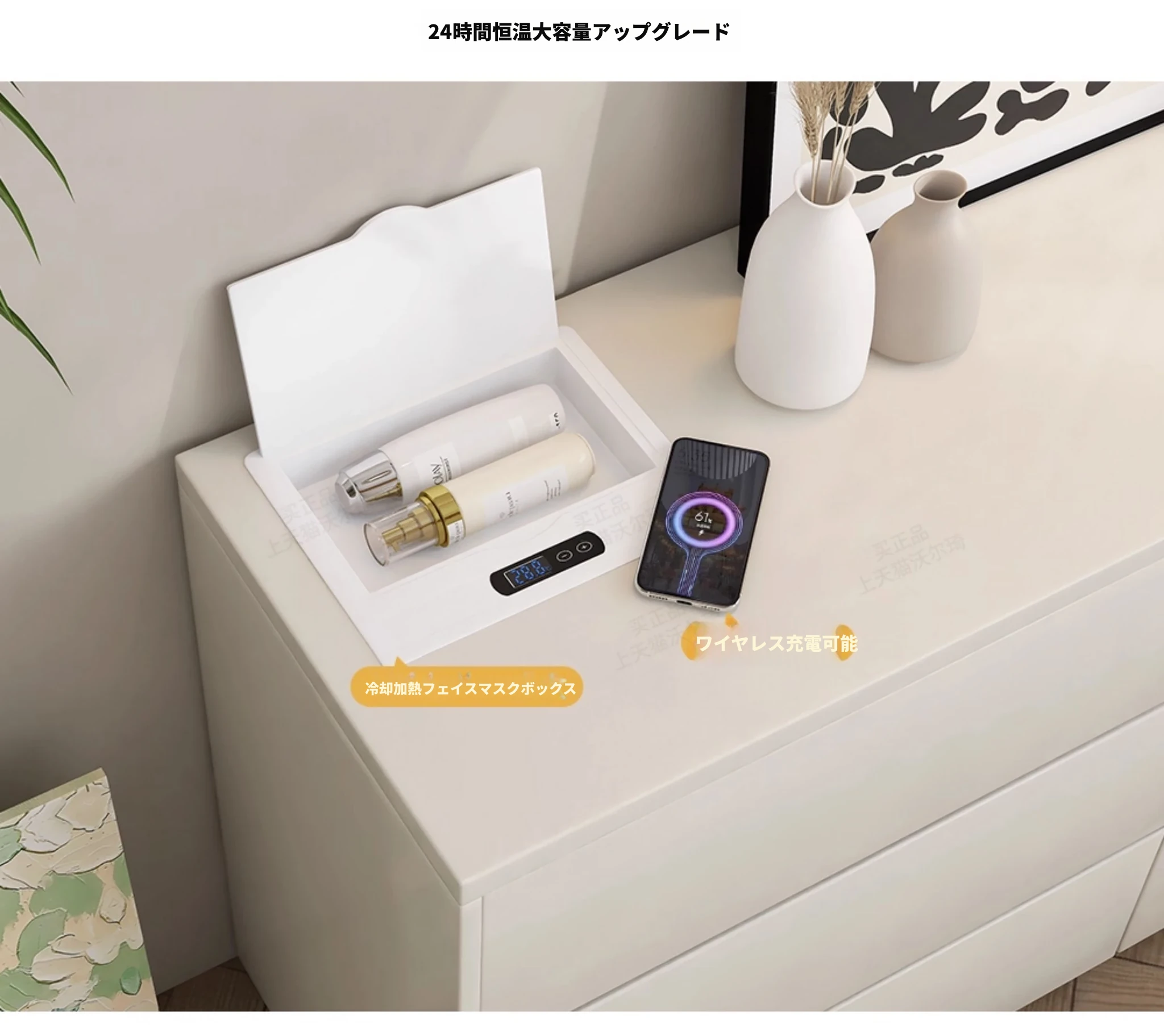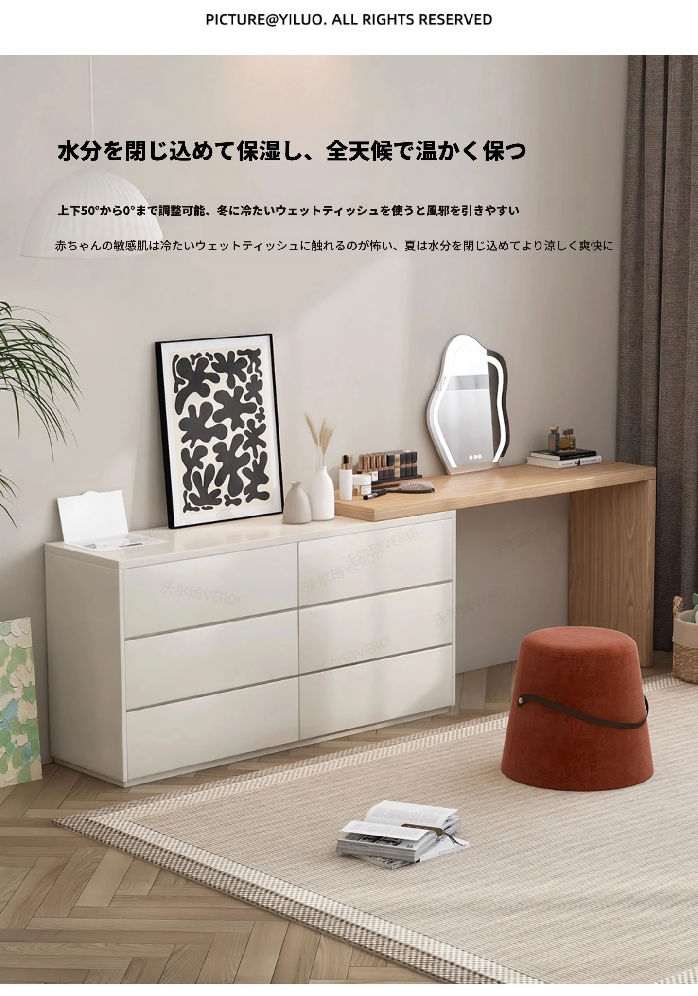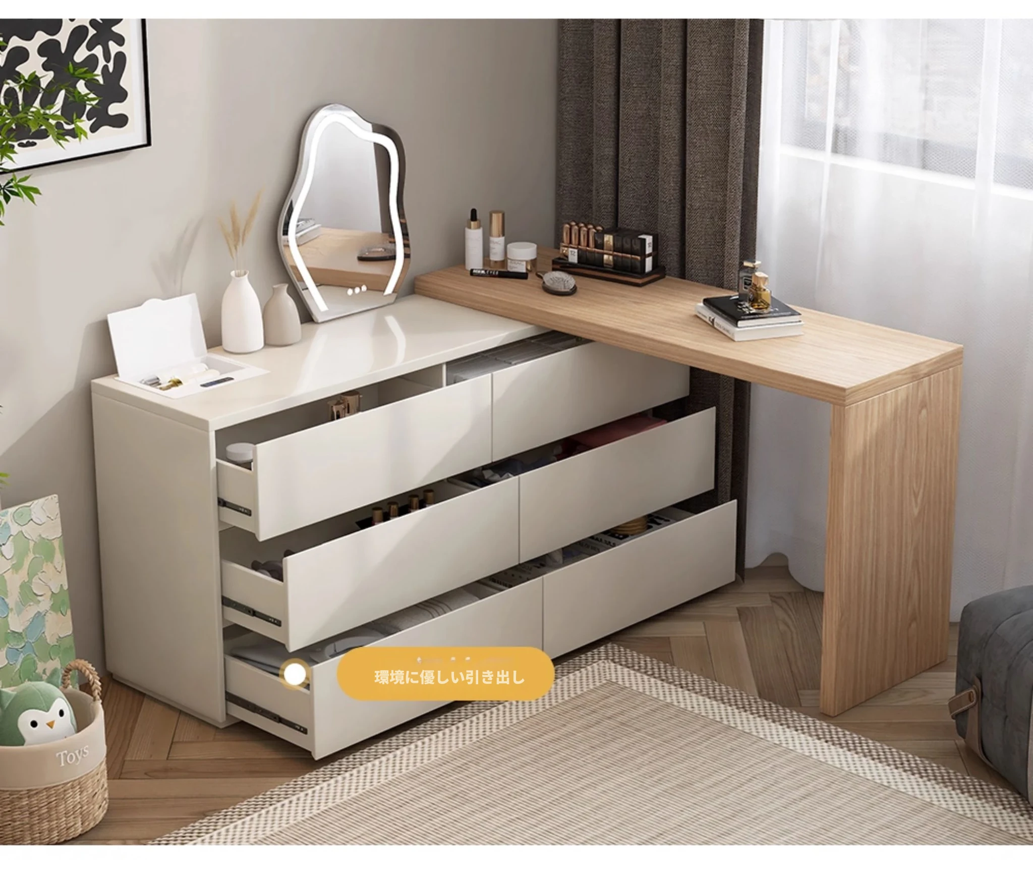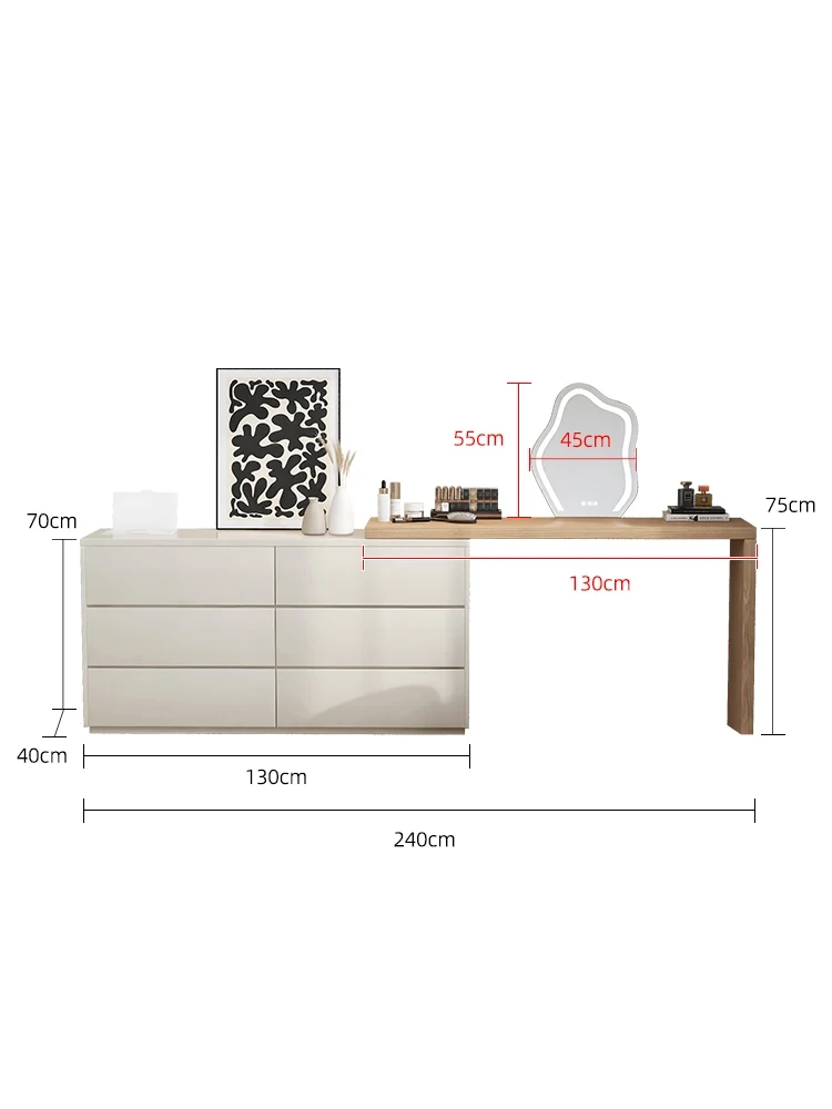 【2.4m六引き出しキャビネット】ドレッサー+雲の鏡+フェイスマスクボックス
