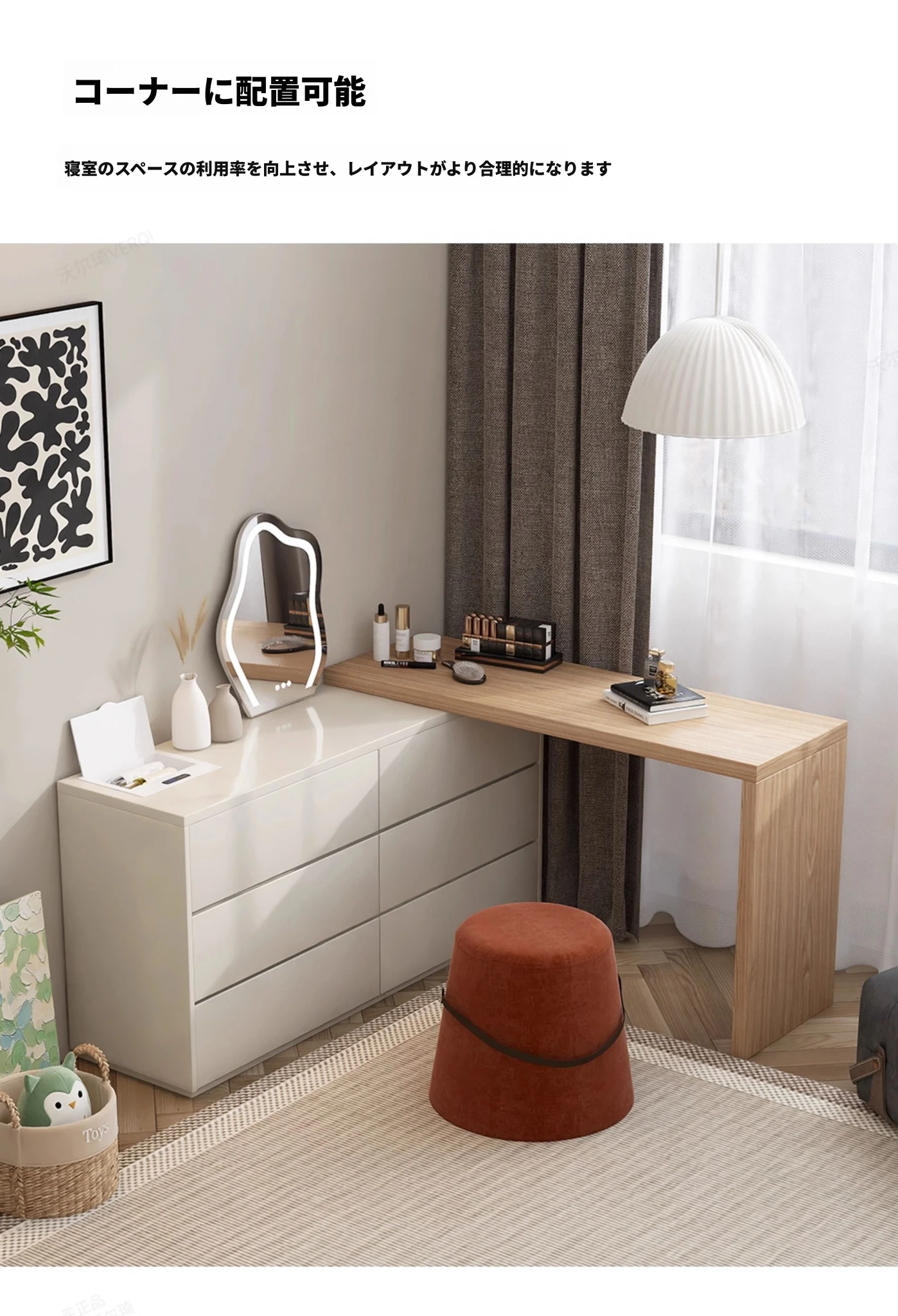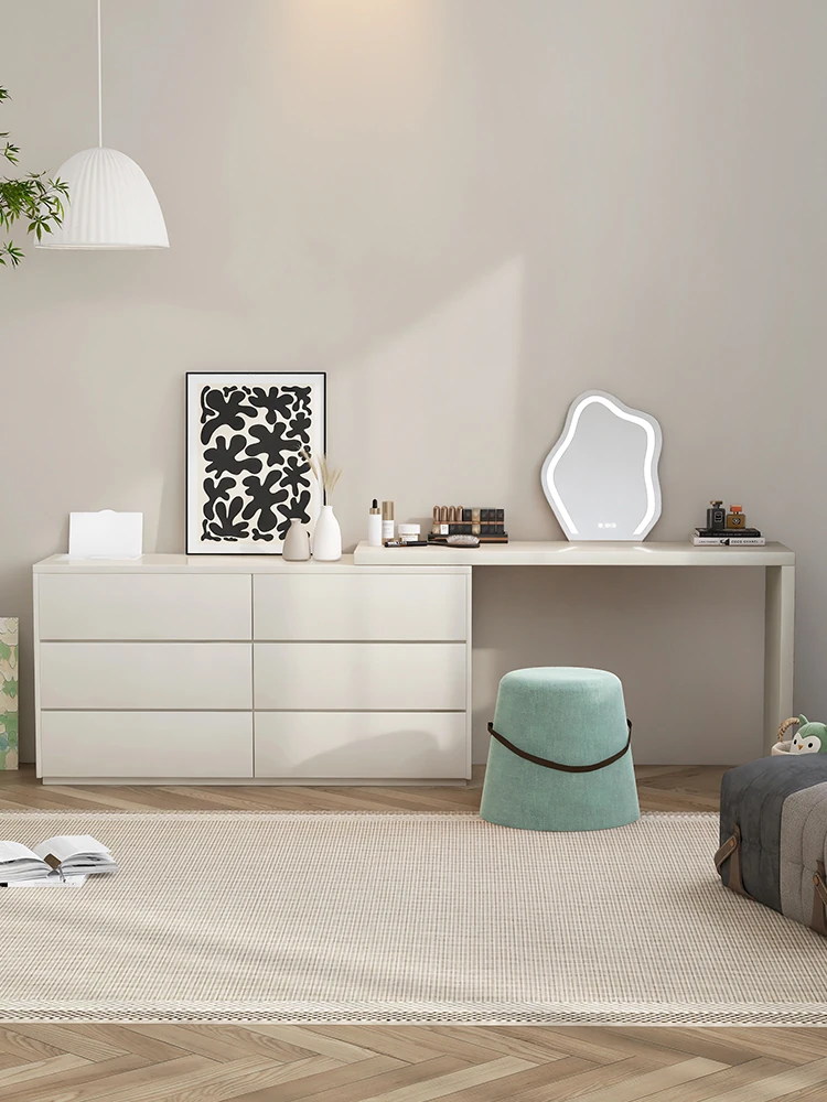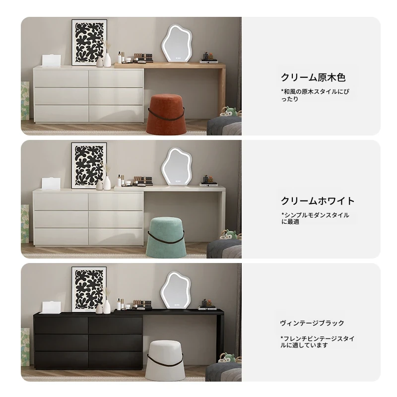 ウォルチュイ云锦ドレッサー・ネット人気の寝室用ベッドサイドキャビネット収納一体型メイクアップデスク・天然木製クリーム風デザインでおしゃれさと機能性を両立!