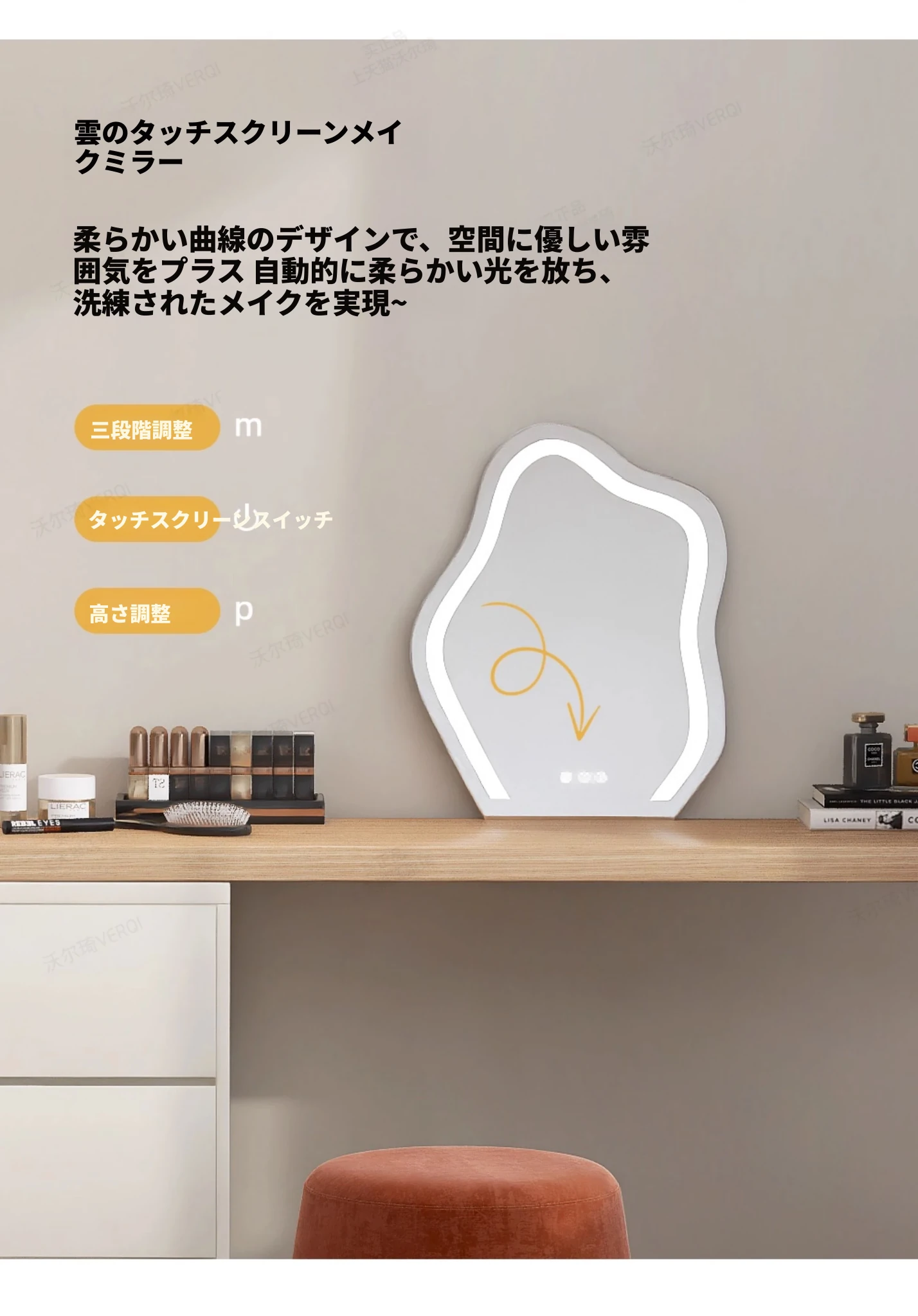 【1.6m三引き出しキャビネット】ドレッサー+雲の鏡+円形スツール+フェイスマスクボックス