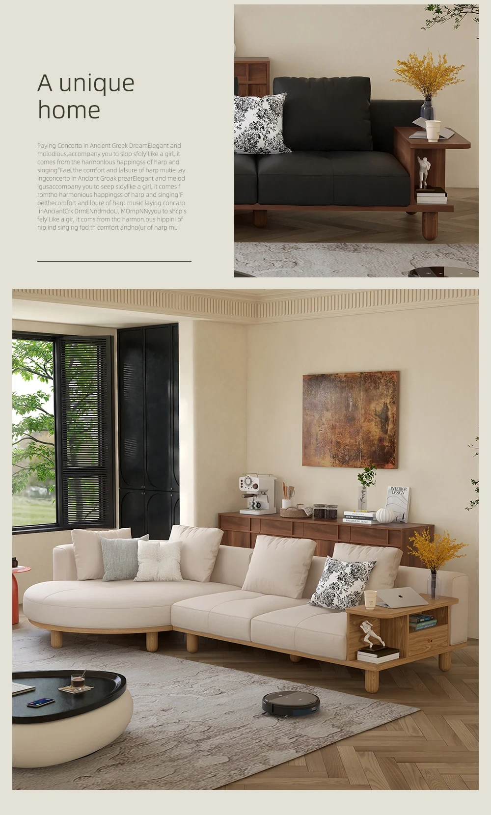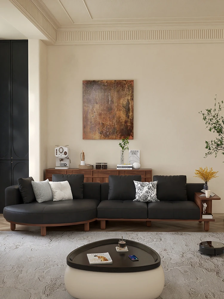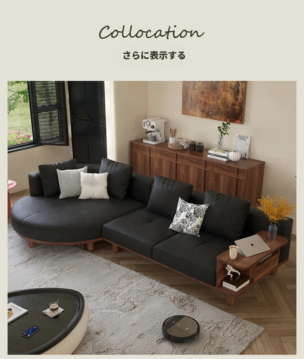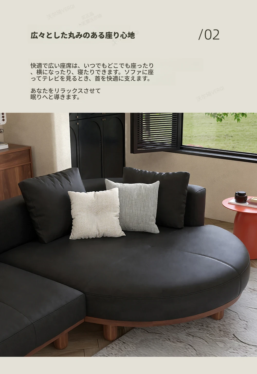 ウォルキ・コナリーの無垢材ソファ、レトロな別荘スタイルのリビングにぴったり!ラウンド型の貴婦人ソファ、アーチ形コーナー、ヴィンテージ風の本革仕上げで贅沢な安らぎを提供します。