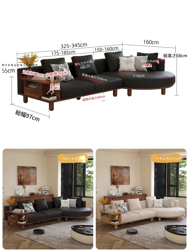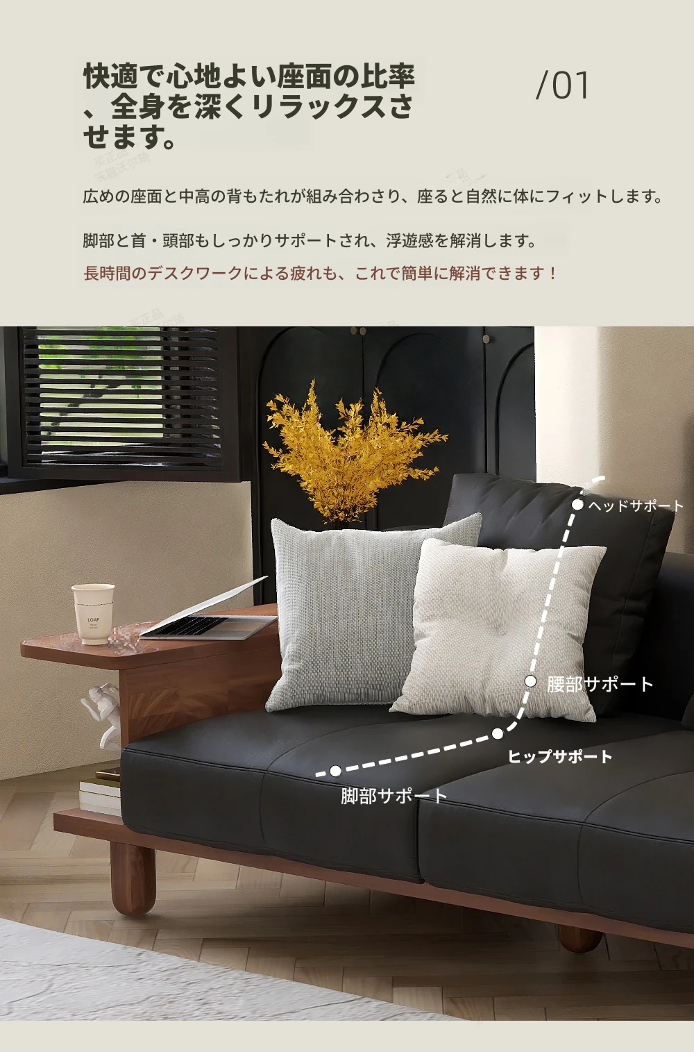 厚手の小型牛皮【ダウン+バイオレット+竹炭スポンジ】ウォールナット色フレーム