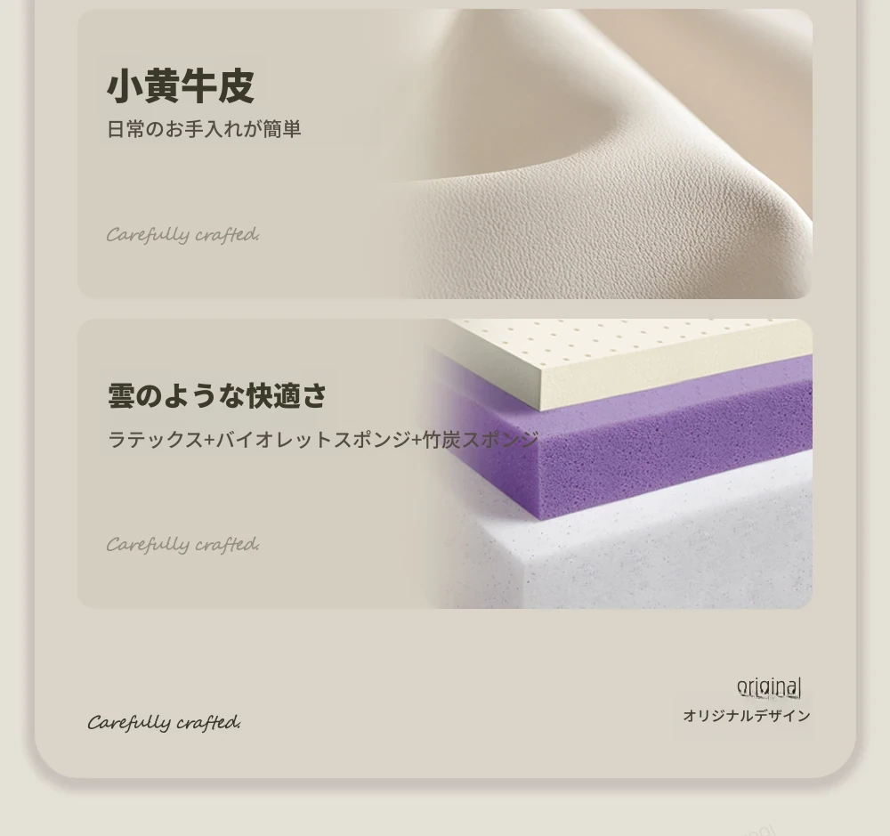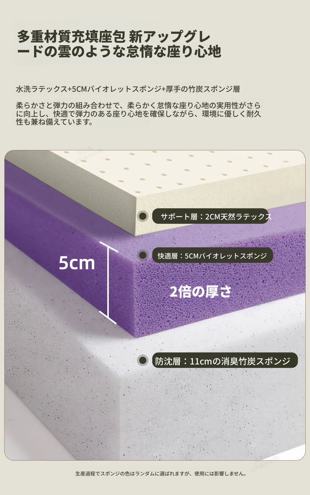 厚手の小型牛皮【ラテックス+バイオレット+竹炭スポンジ】ウォールナット色フレーム