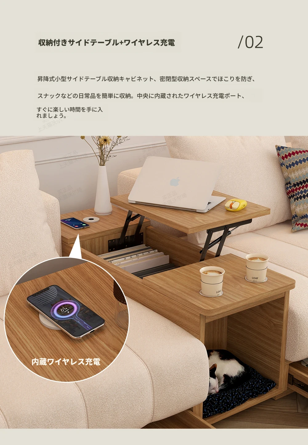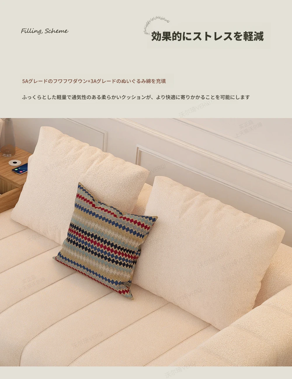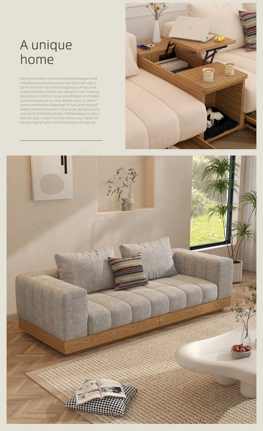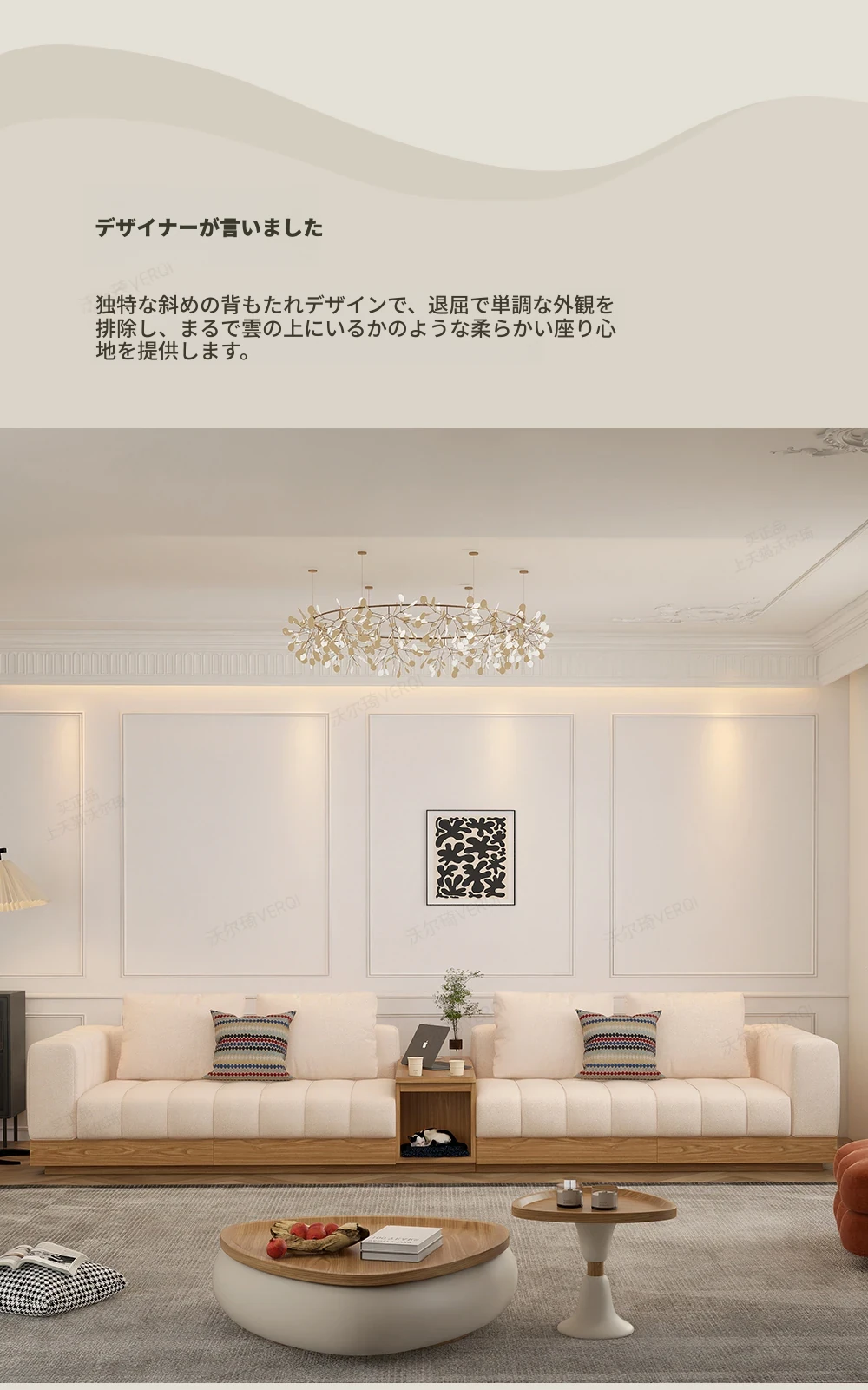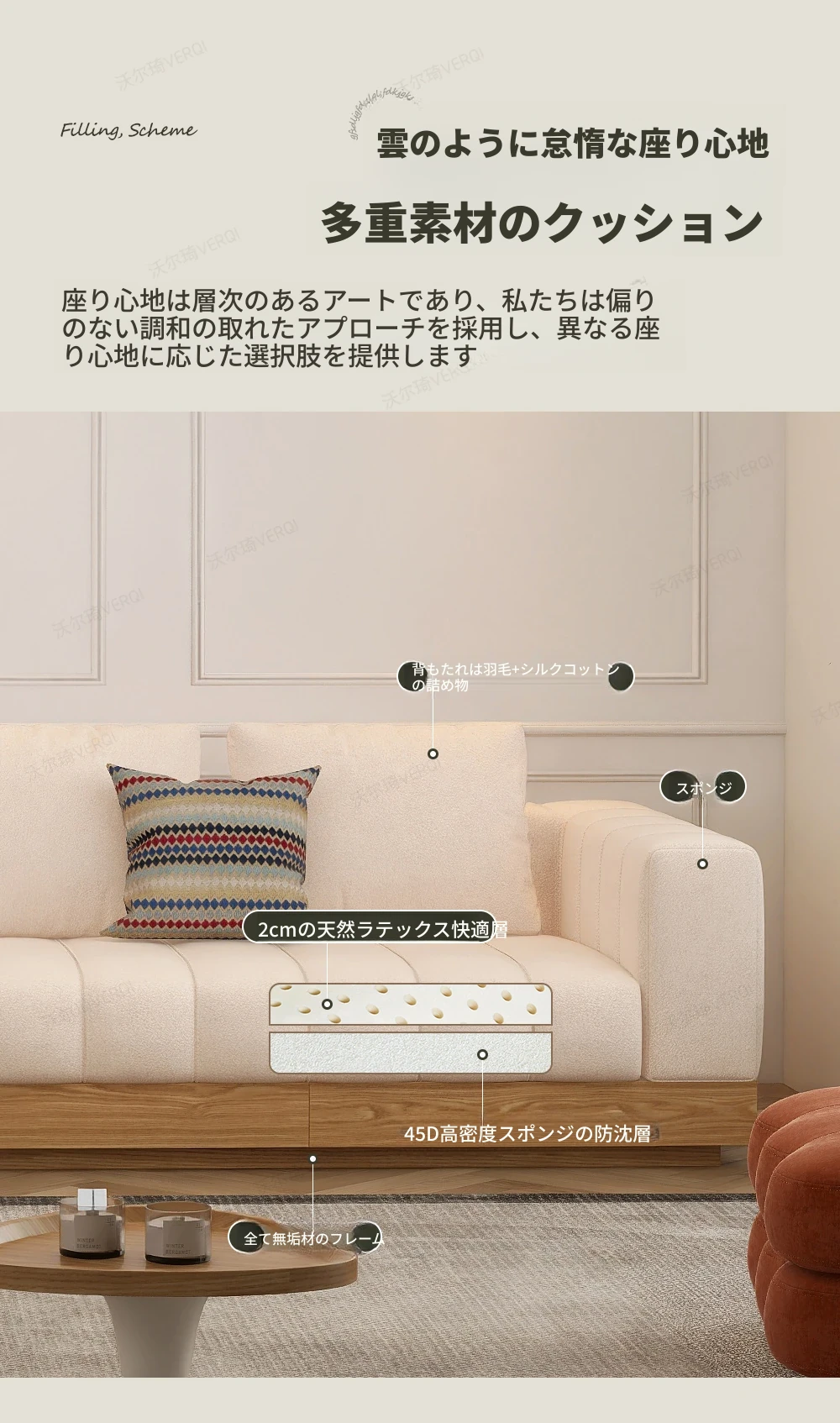ウォルチクリーム原木風ピアノ鍵ソファー - リビングにぴったりな和風北欧スタイル、機能的な収納スペースを備えた天然木製布製ソファ!心地よい空間を演出します。