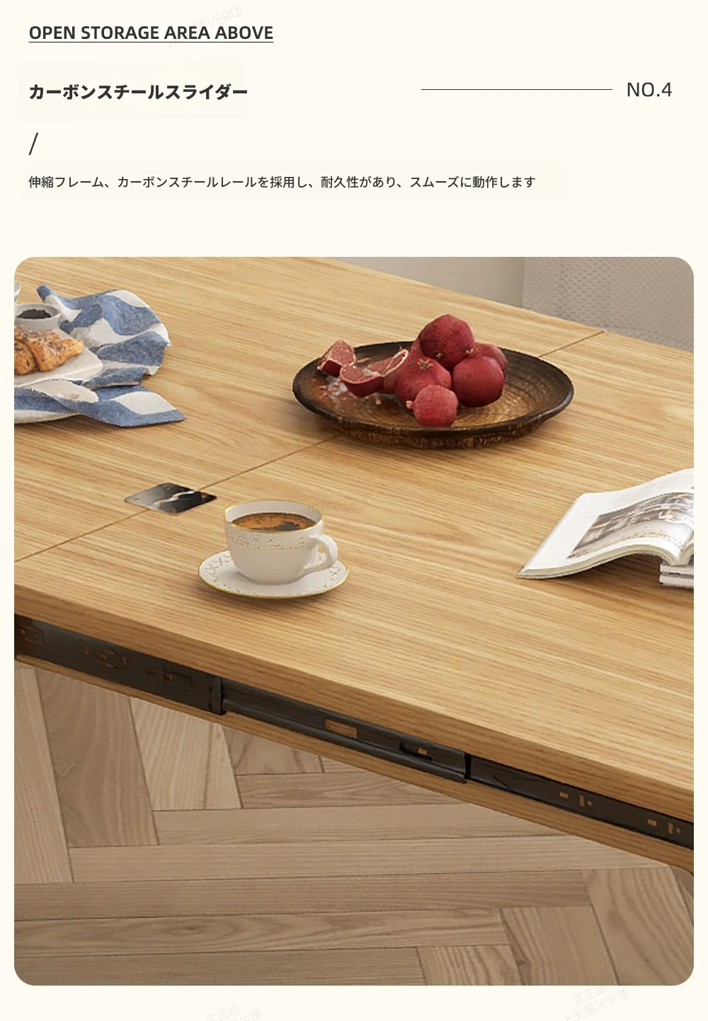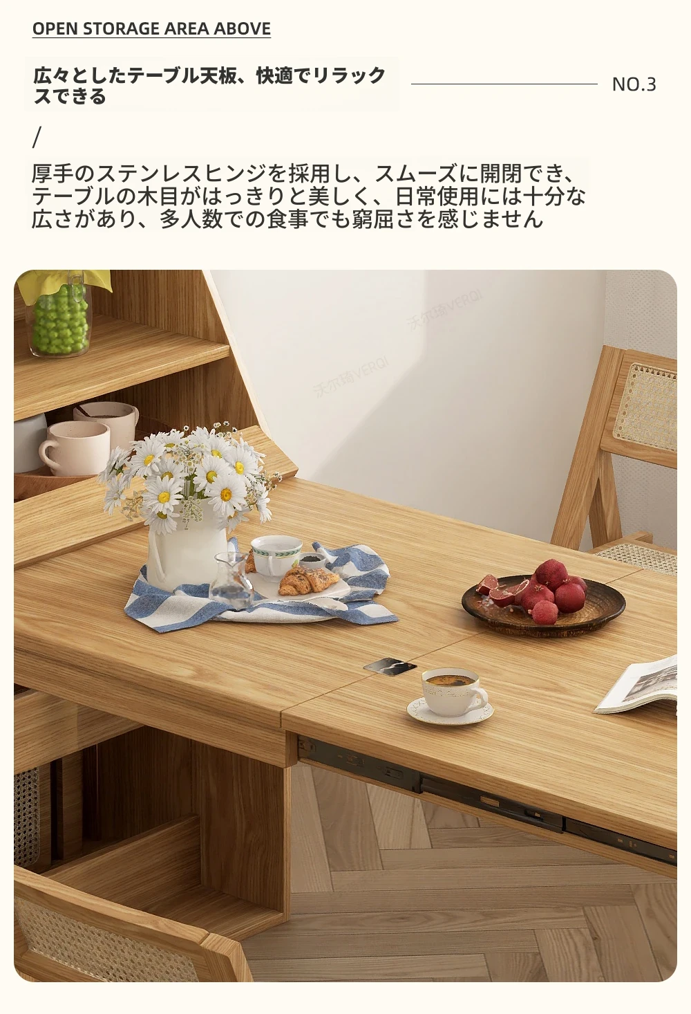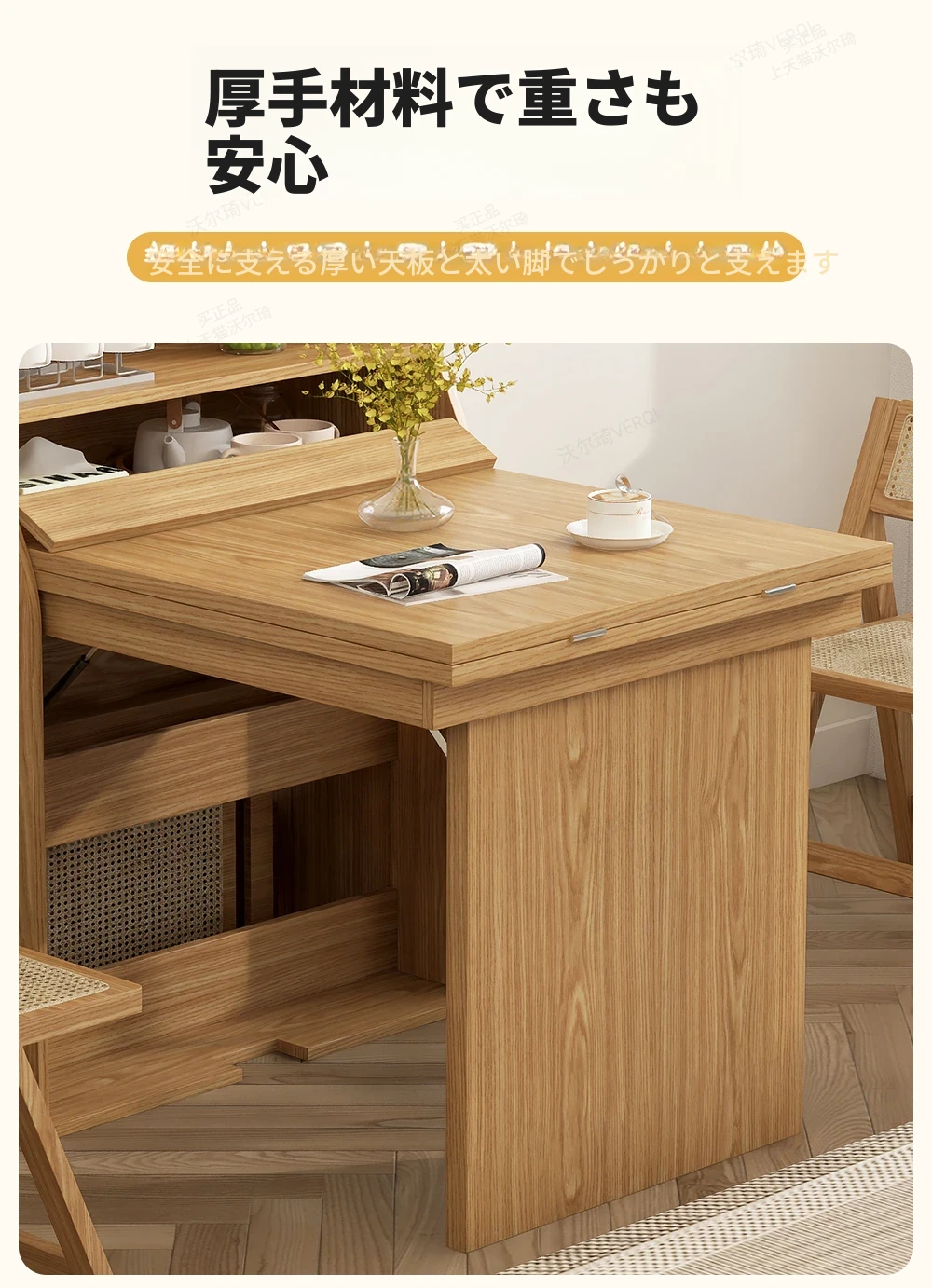 ウォルキ折りたたみテーブル - ナチュラルウッド風の収納可能なデザイン!北欧スタイルの実用的なダイニングテーブル、小型住宅に最適な長方形の食事テーブルです。おしゃれで機能的、あなたのリビングにぴったり!