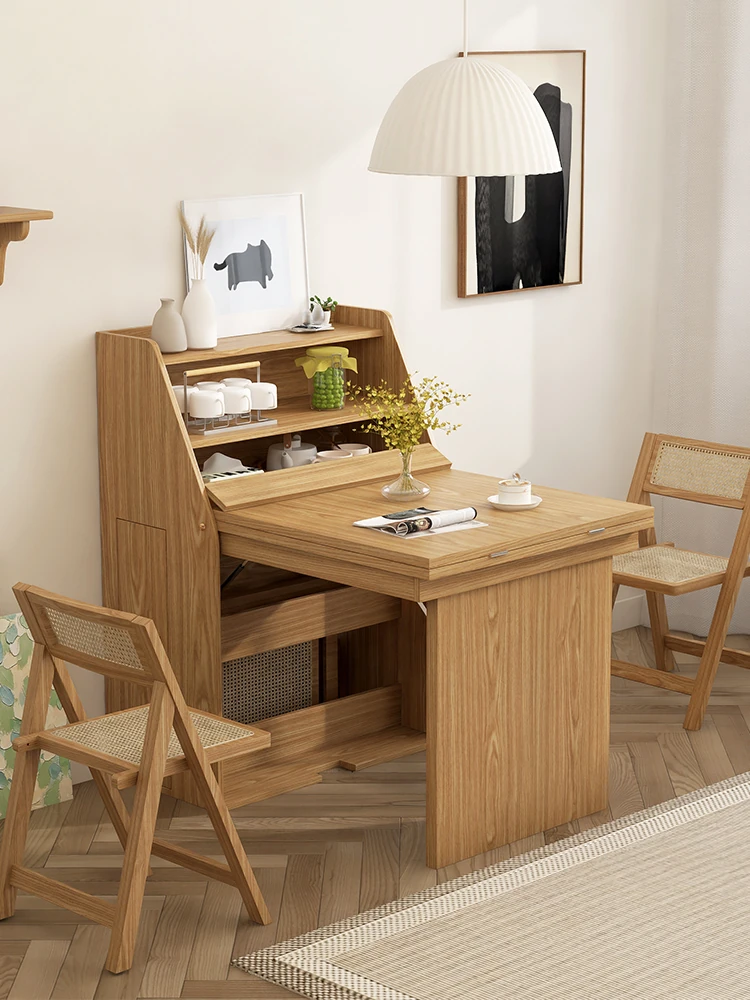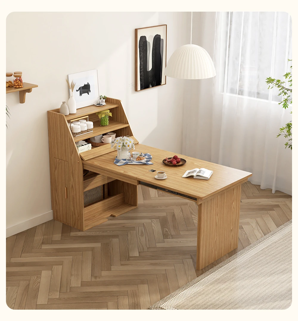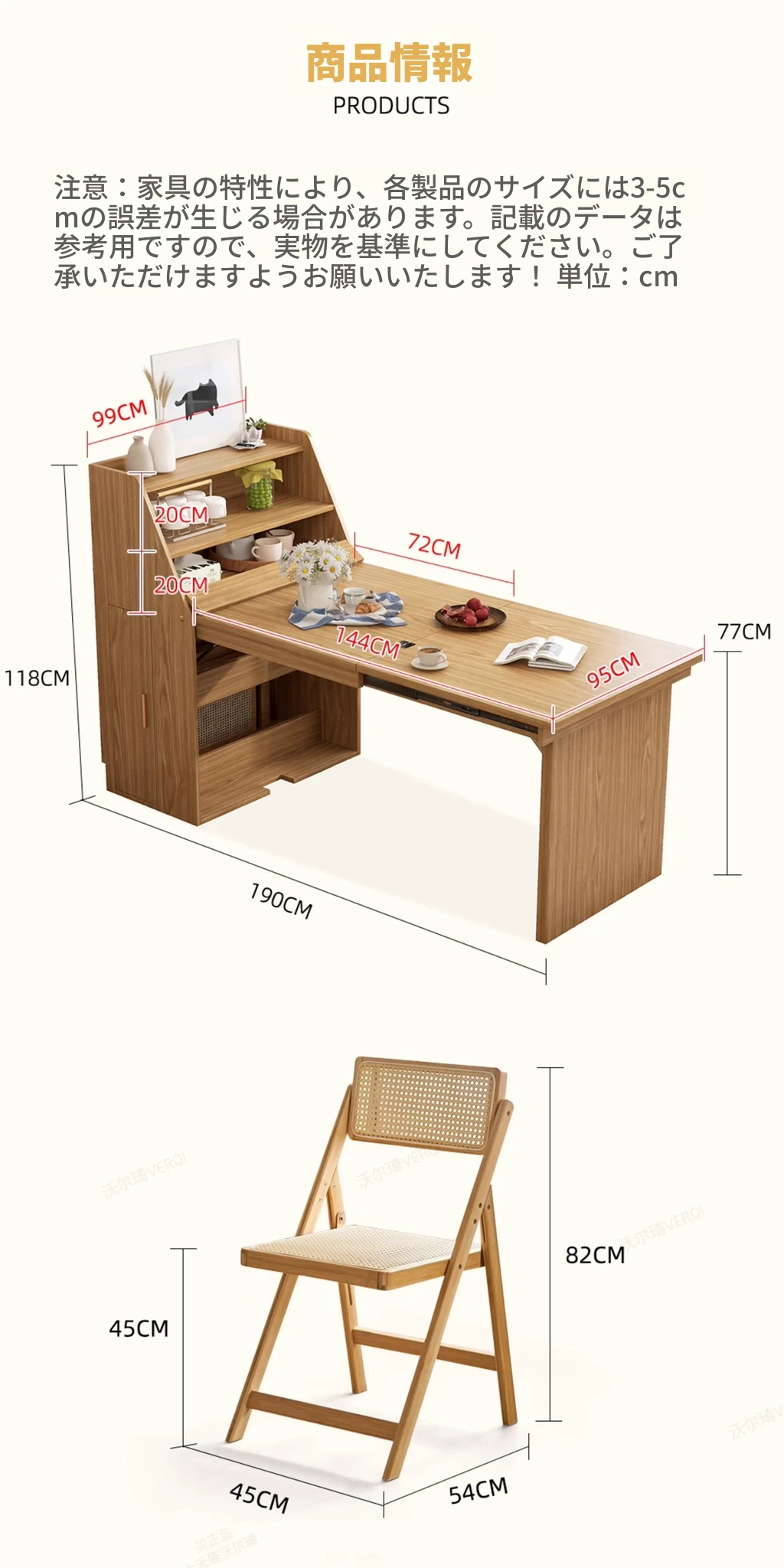 ウォルキ折りたたみテーブル - ナチュラルウッド風の収納可能なデザイン!北欧スタイルの実用的なダイニングテーブル、小型住宅に最適な長方形の食事テーブルです。おしゃれで機能的、あなたのリビングにぴったり!