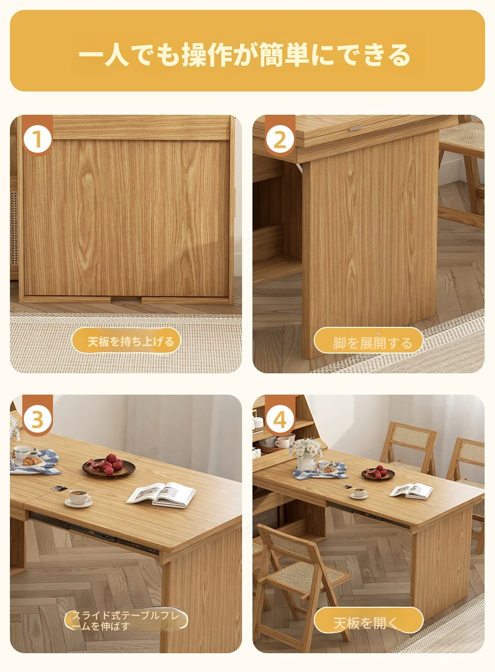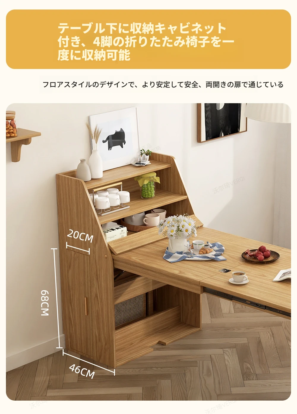 ダイニングテーブル【収納可能な折りたたみ椅子】