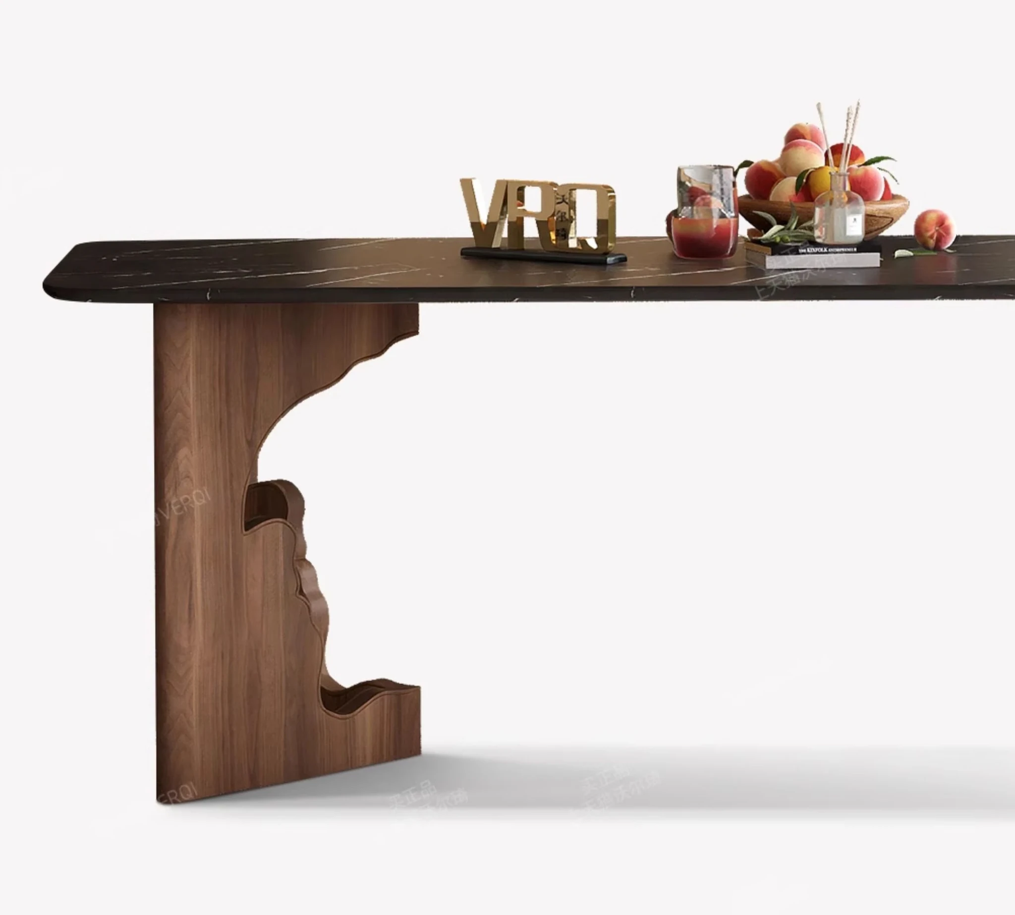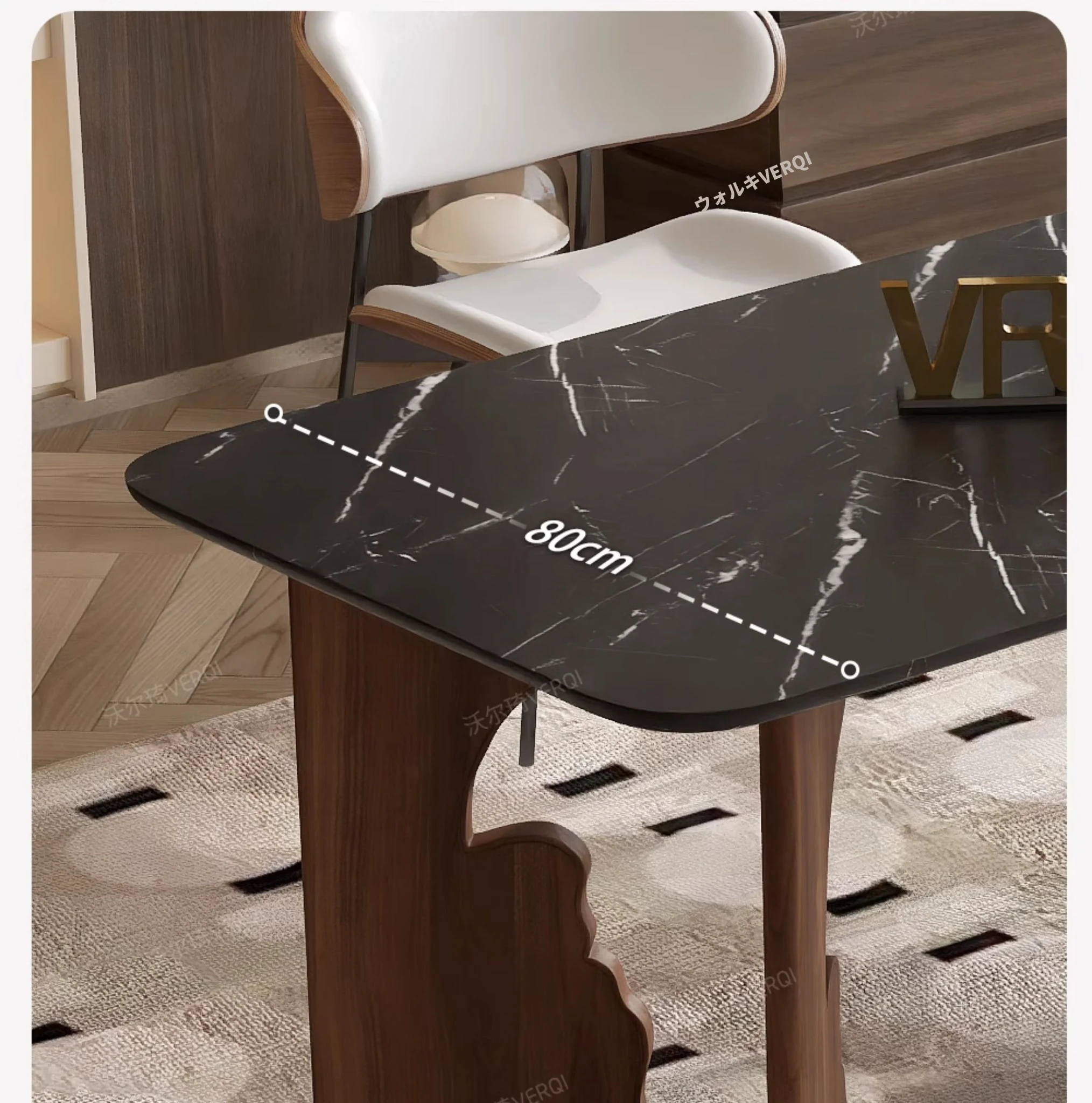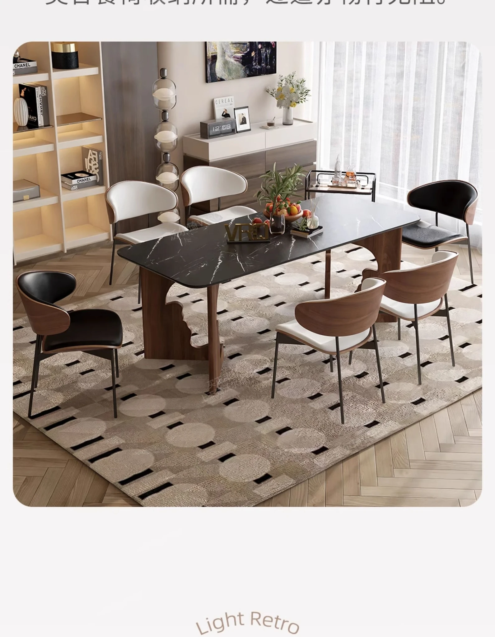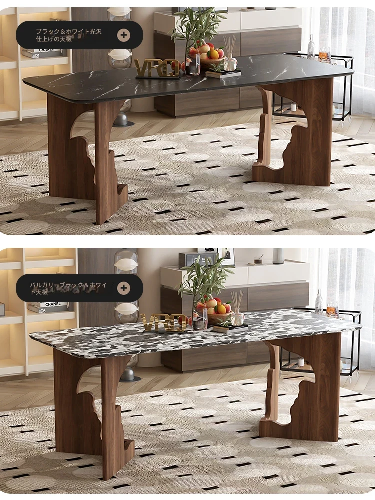 ウォルキの高級石材と無垢材を使用したレトロ風長方形ダイニングテーブル。シンプルでモダンなデザイン、リビングにぴったりなテーブル&チェアのセット。優雅な食事空間を演出します!