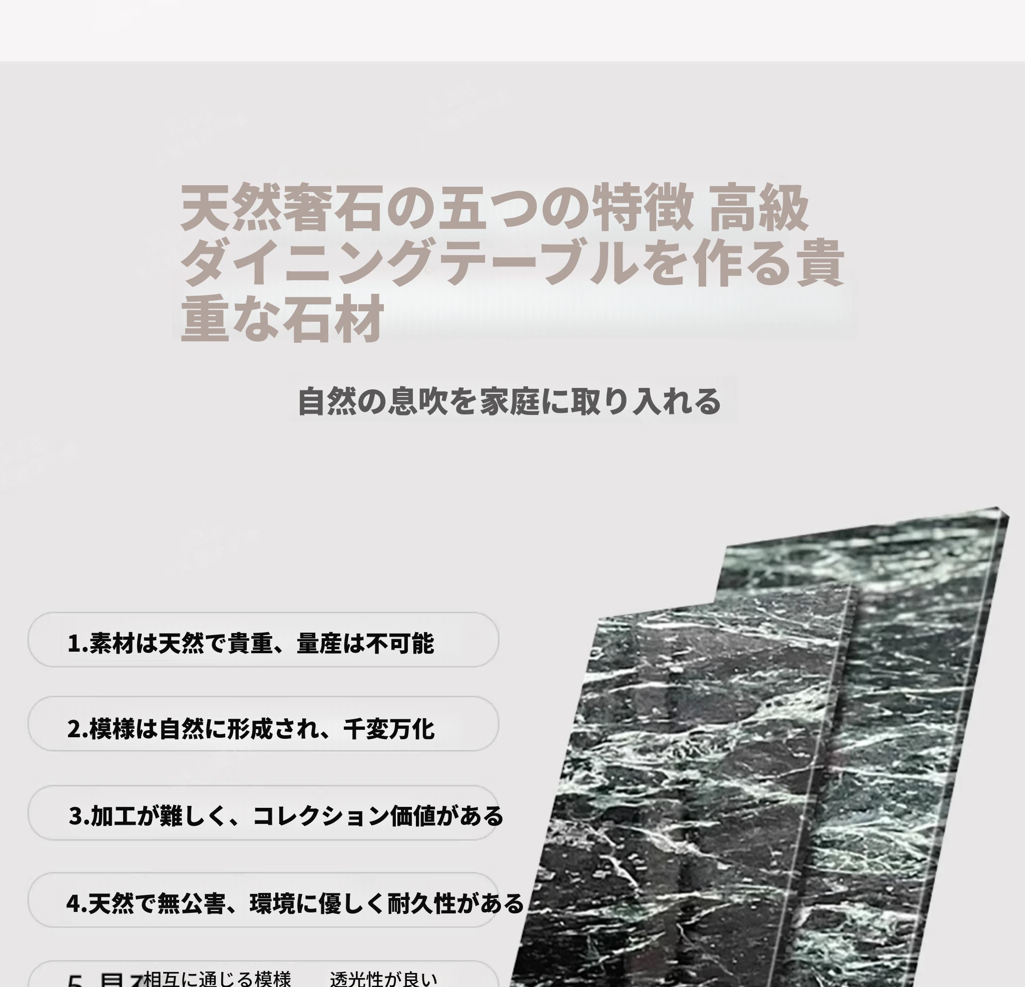 ラグジュアリー石ダイニングテーブル【36mm厚みのあるラグジュアリー石天板】