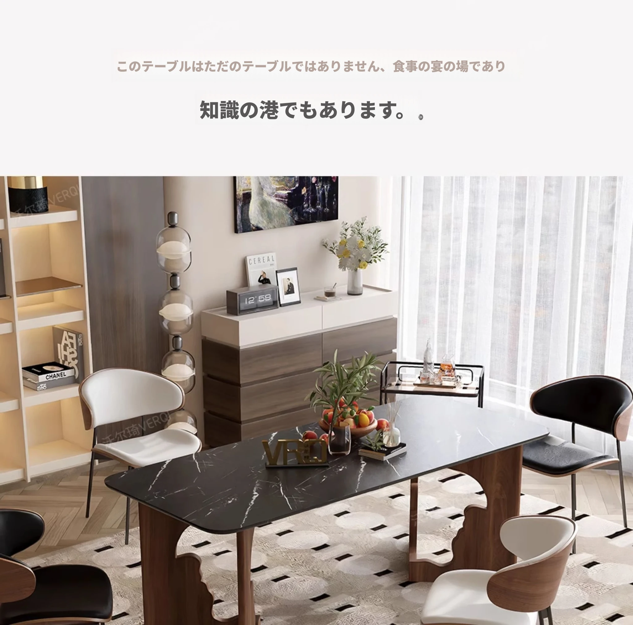 ラグジュアリー石ダイニングテーブル+6脚
