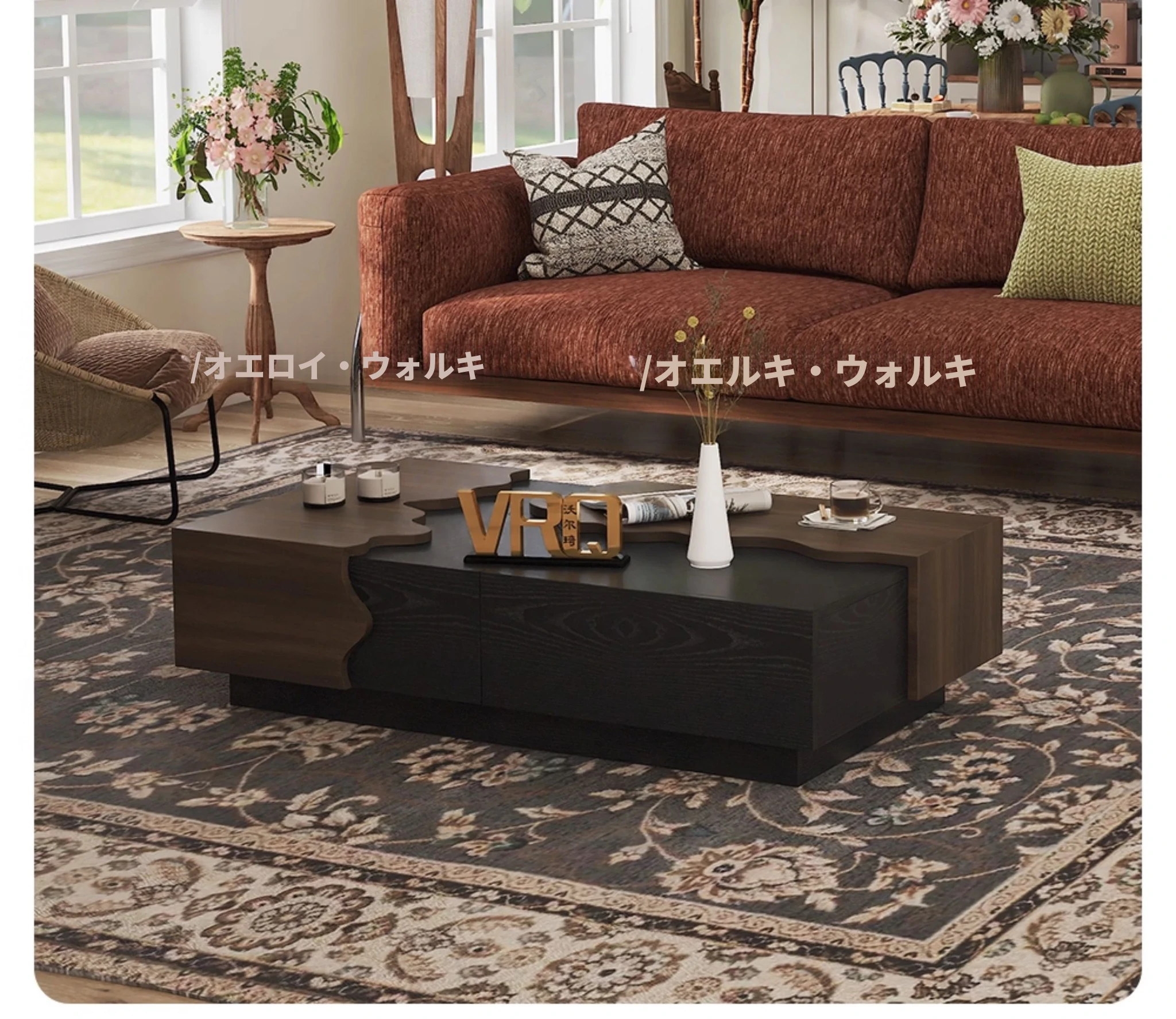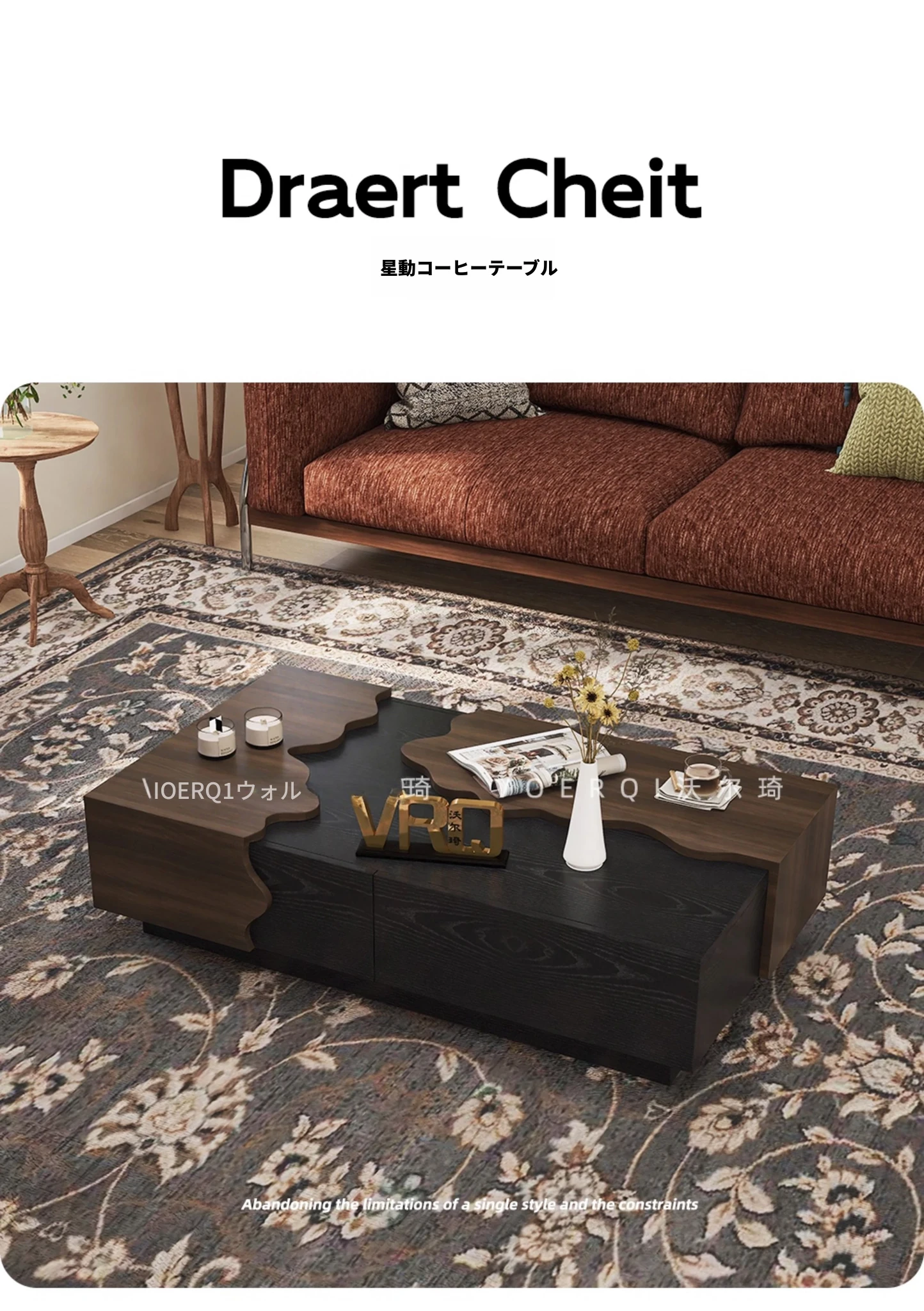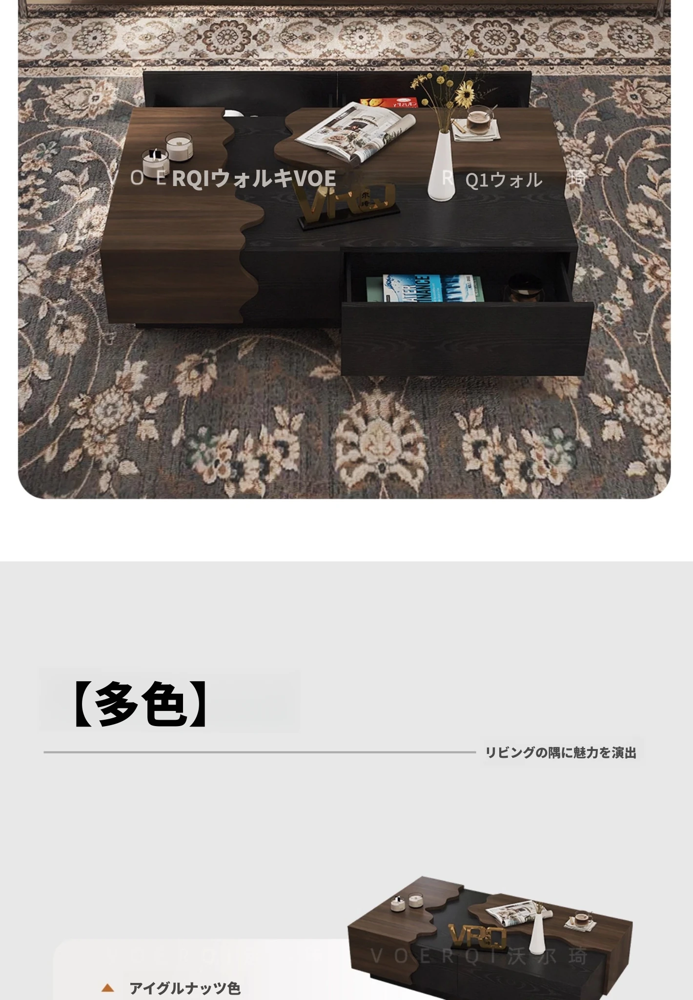 ウォルチ木製モダンデザインコーヒーテーブル - 小型住宅にぴったり!高級感あふれる長方形リビングテーブル、人気のアーティストデザインでお部屋を華やかに演出します。