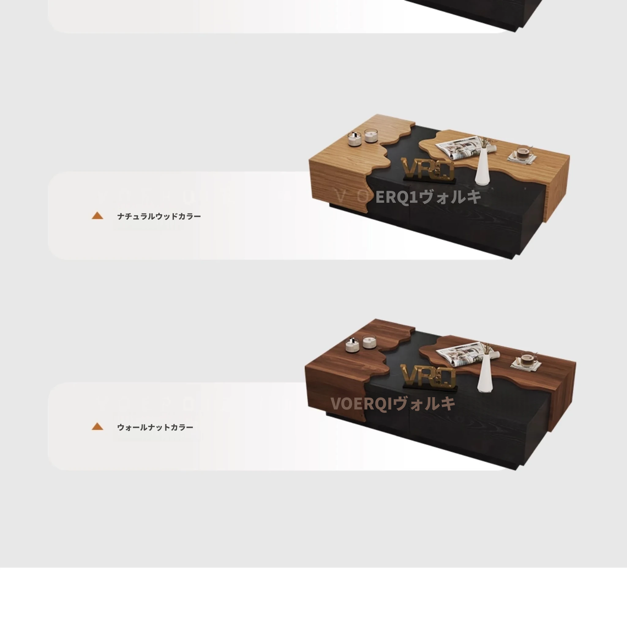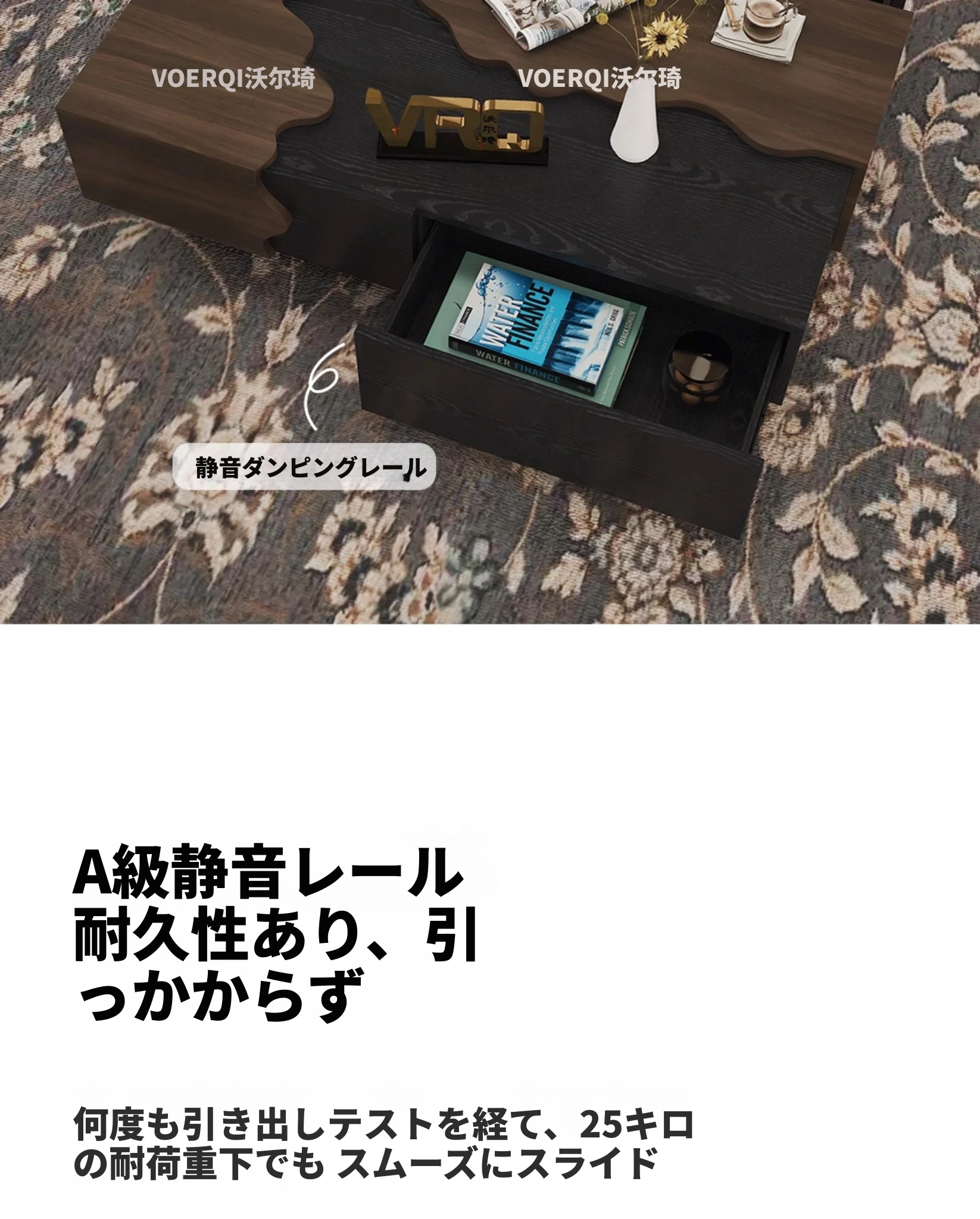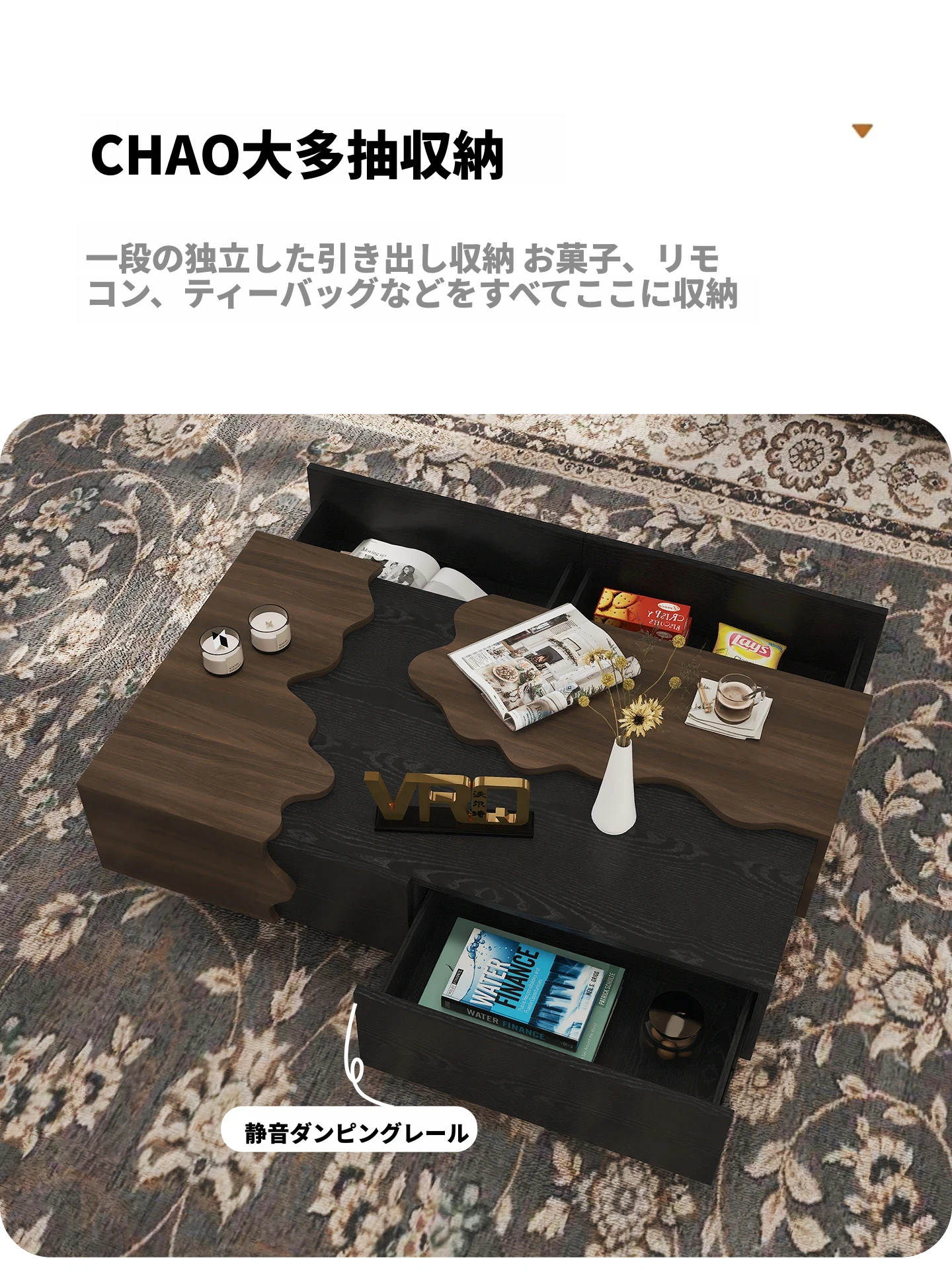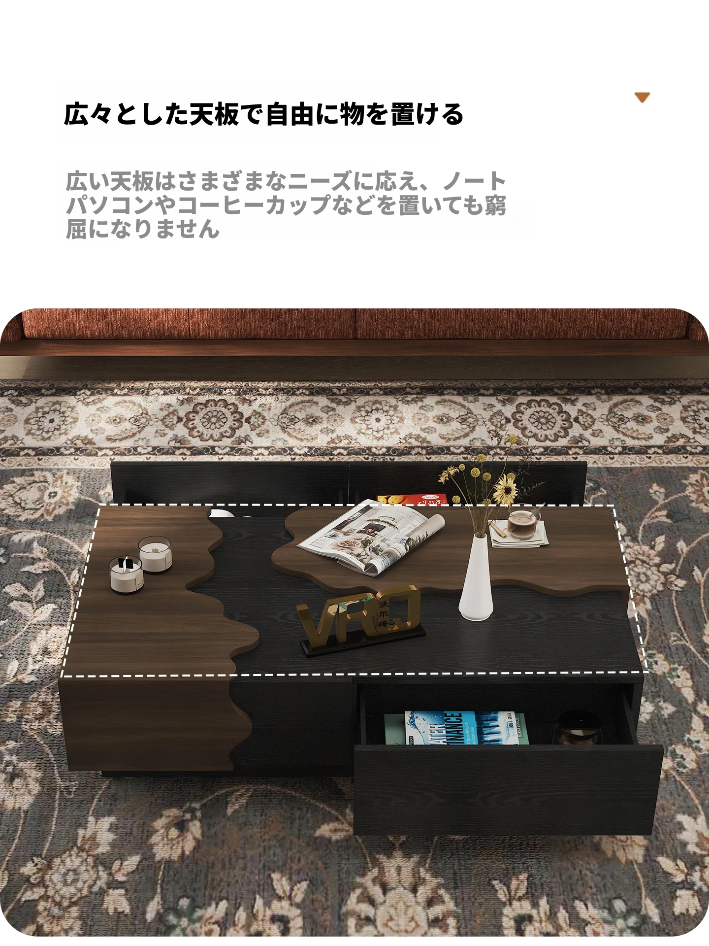 ウォルチ木製モダンデザインコーヒーテーブル - 小型住宅にぴったり!高級感あふれる長方形リビングテーブル、人気のアーティストデザインでお部屋を華やかに演出します。