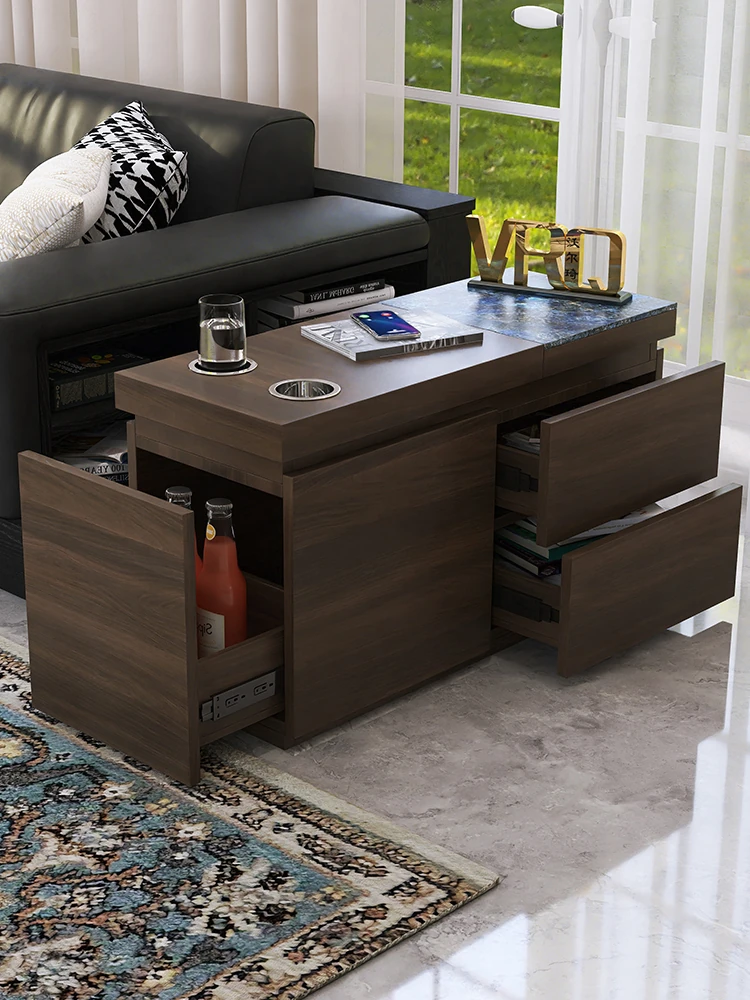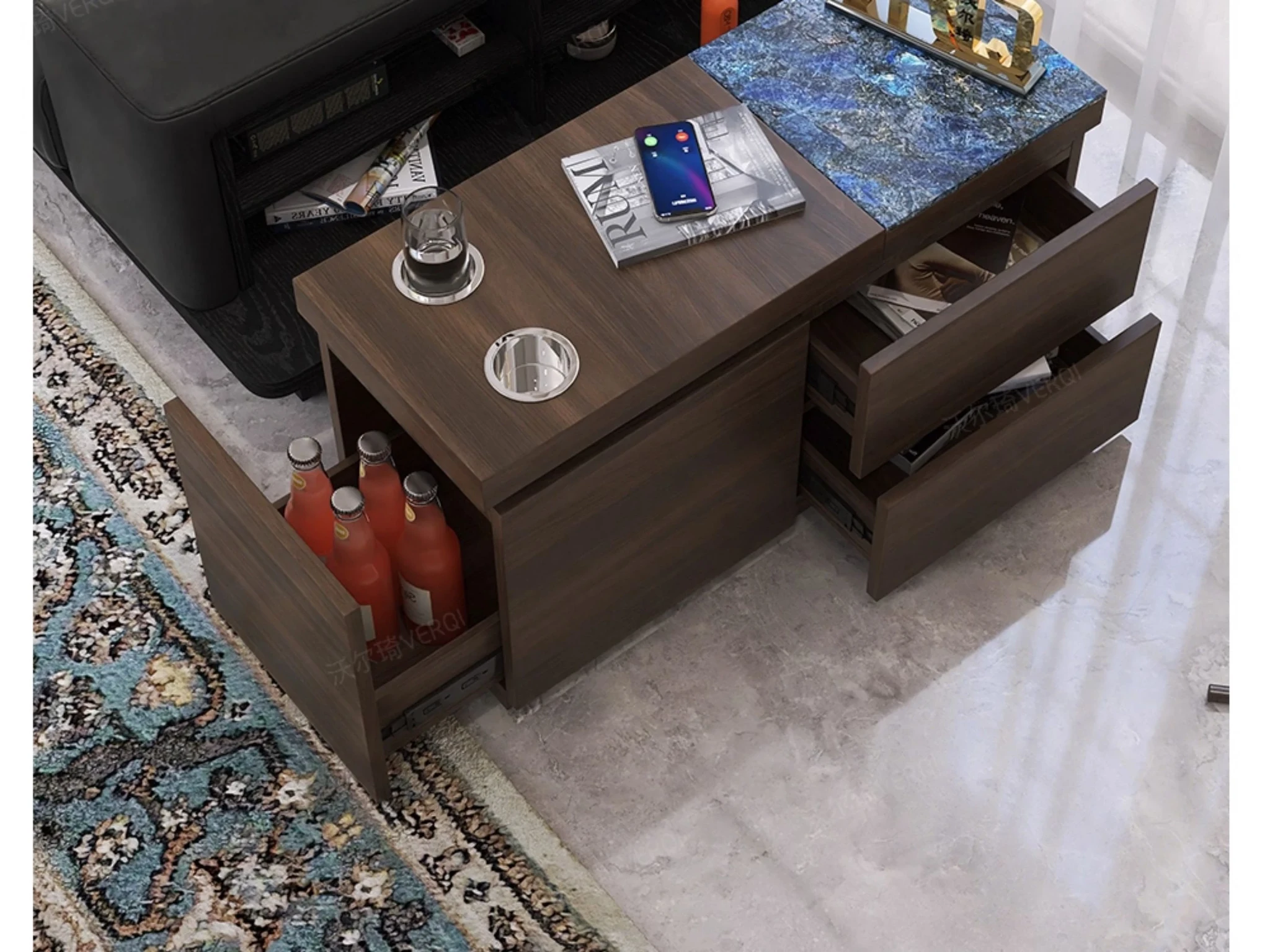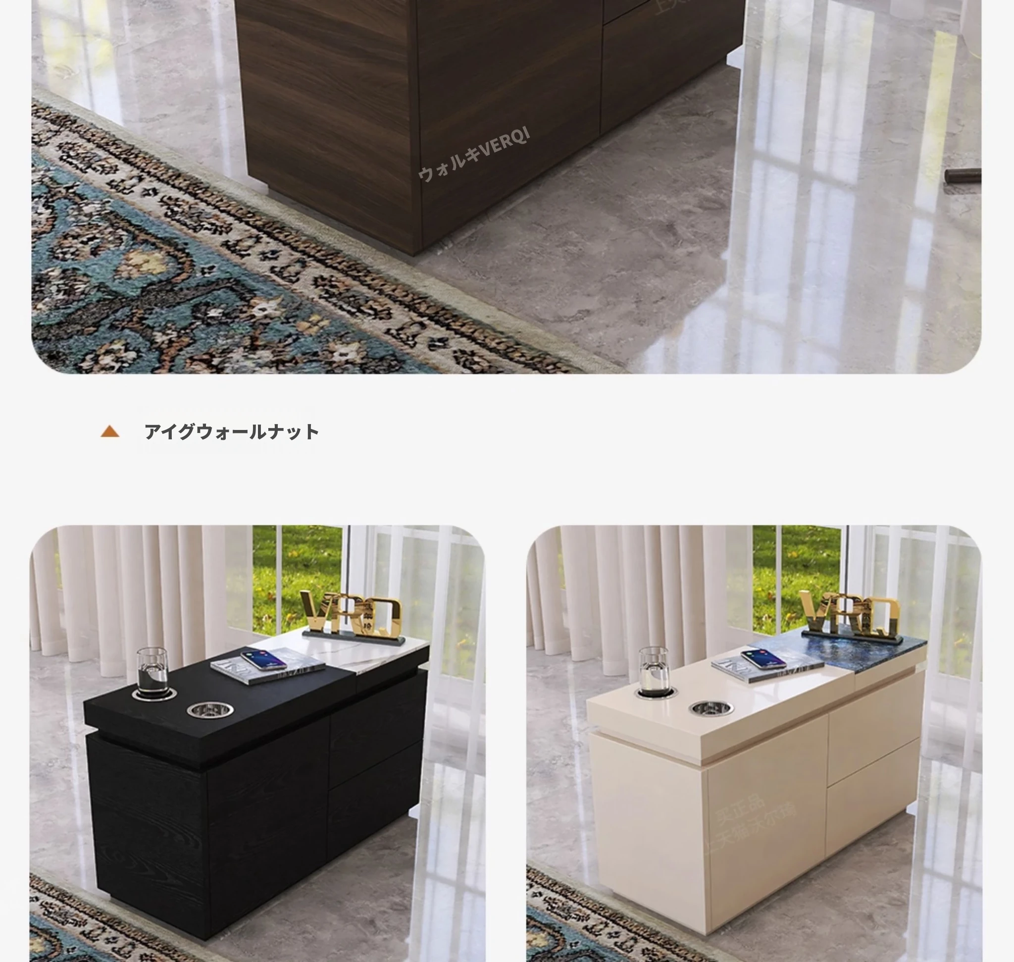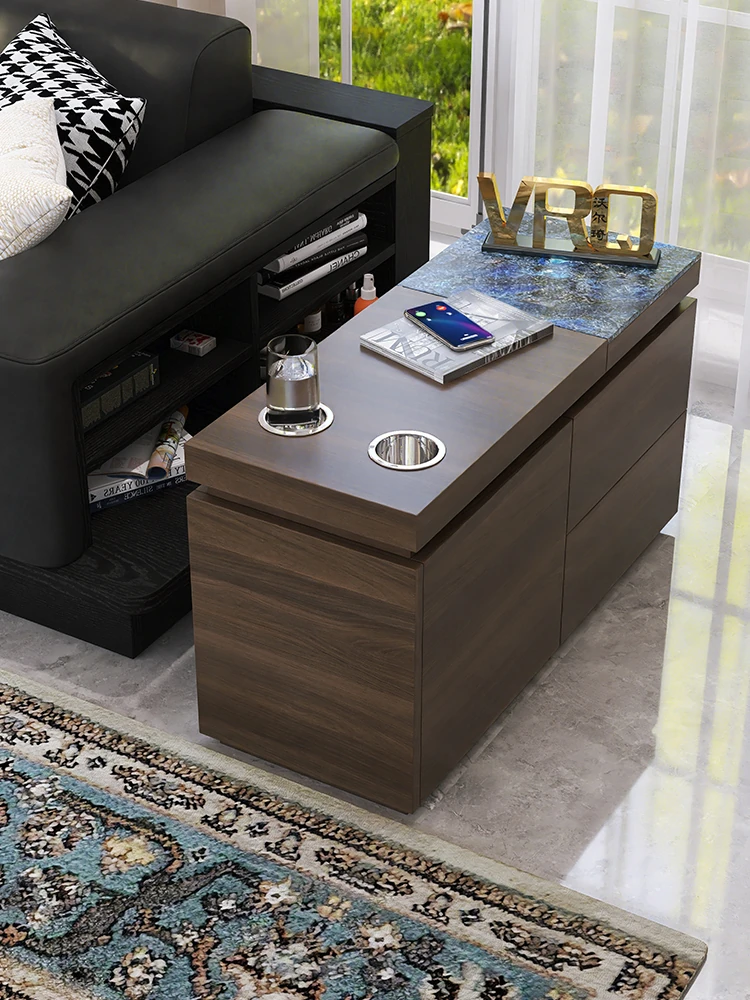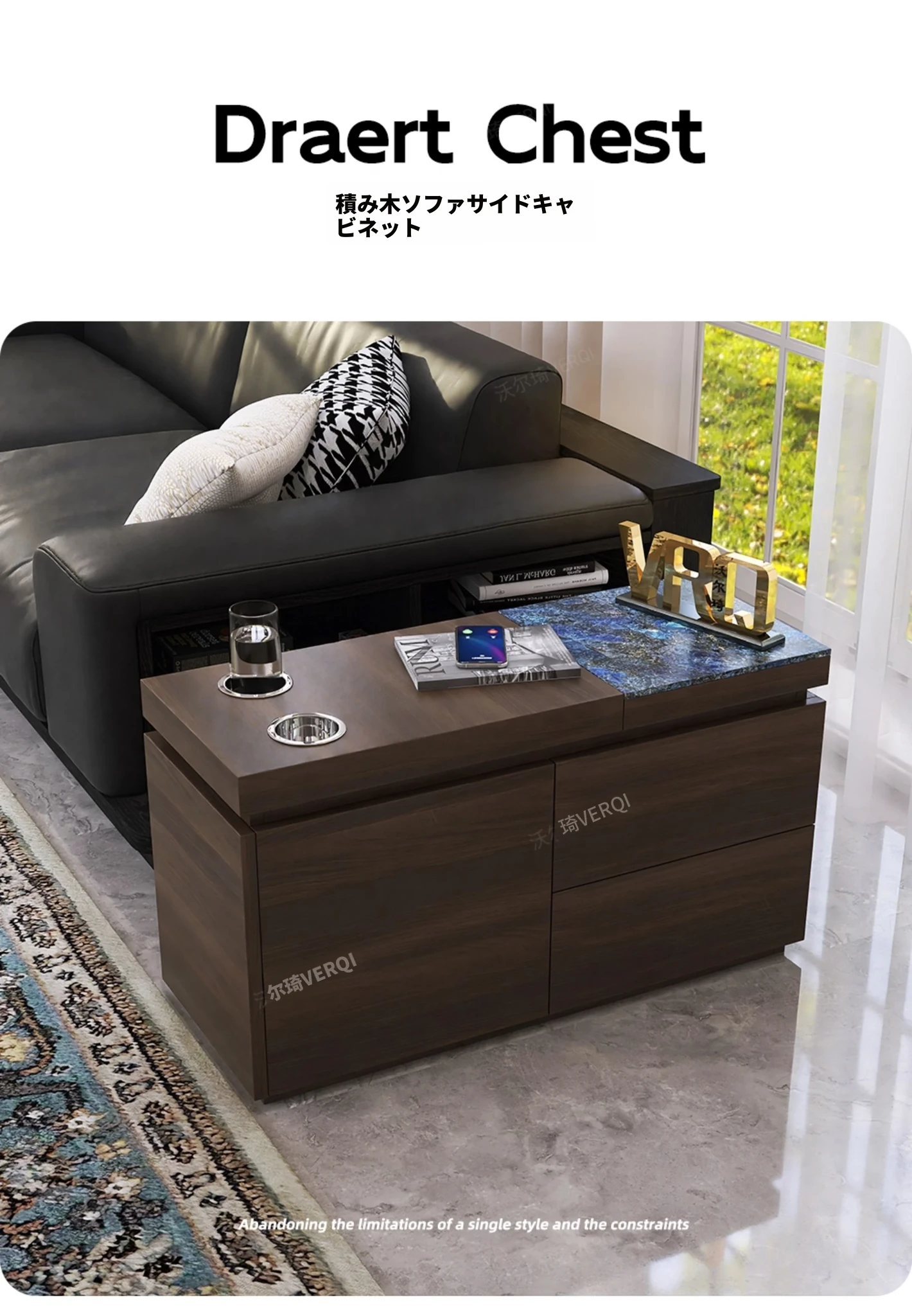 ウォルキの無垢材ソファサイドテーブル - イタリアンミニマルスタイルのリビング用サイドキャビネット、ウォールナットカラーの収納ボックスでおしゃれな空間を演出!