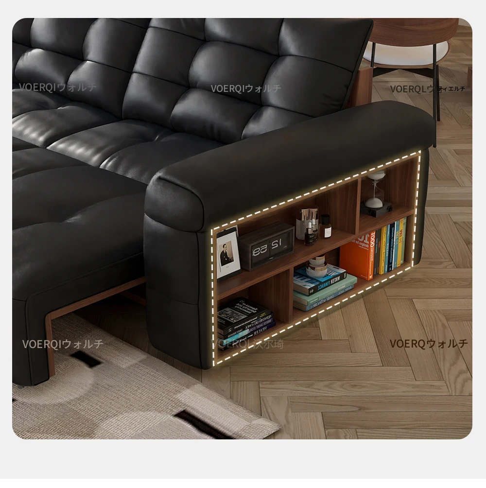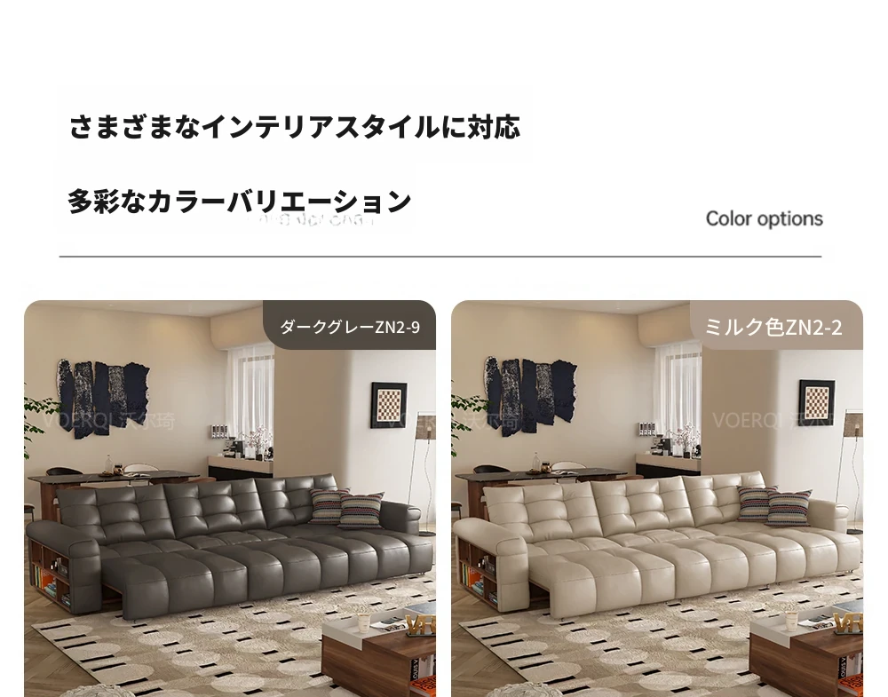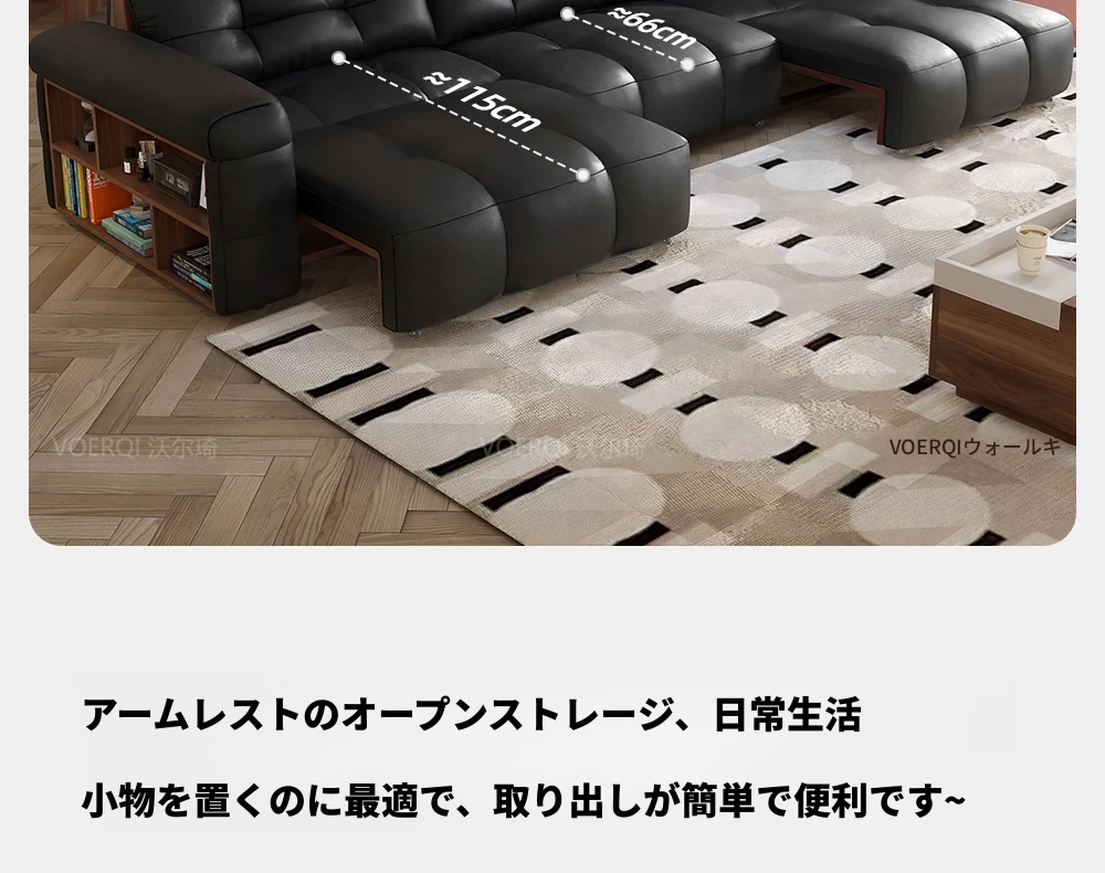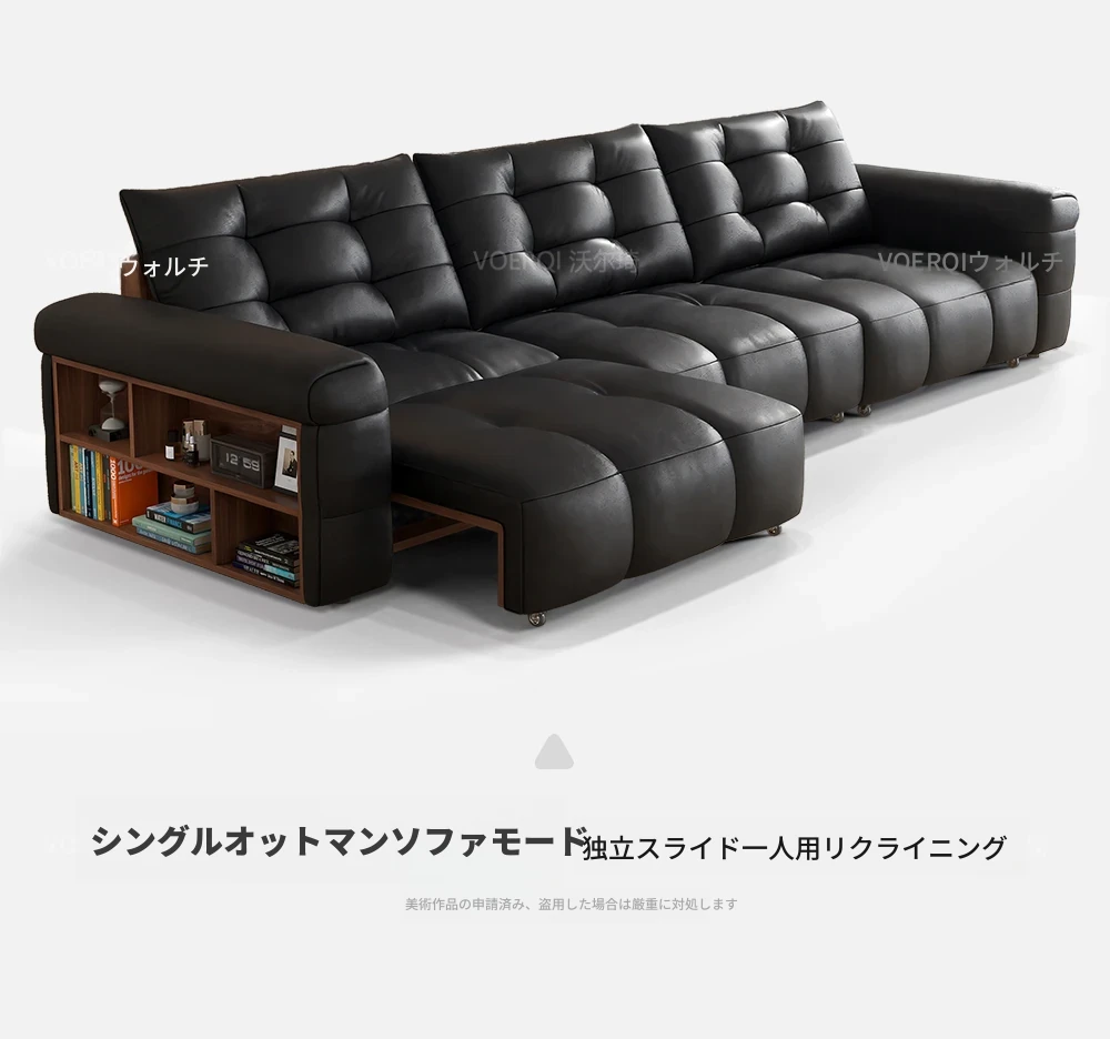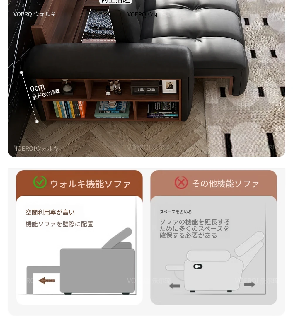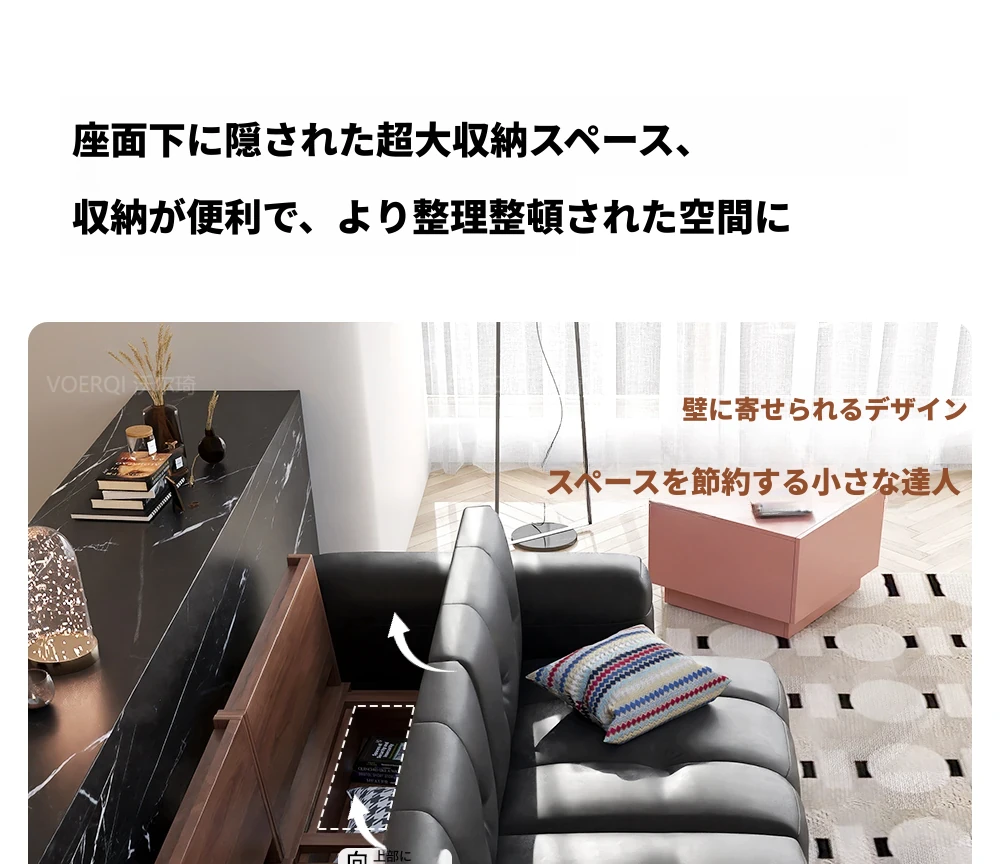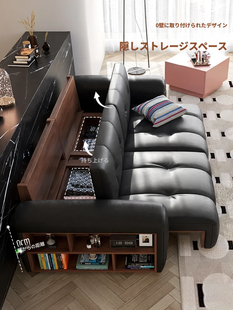 ウォルキ・ゼロ壁寄せ多機能本革ソファー、ラウンドソフトパッケージ、レトロ風のシンプルなデザイン、牛革製の収納ソファーです。おしゃれなリビングにぴったり!