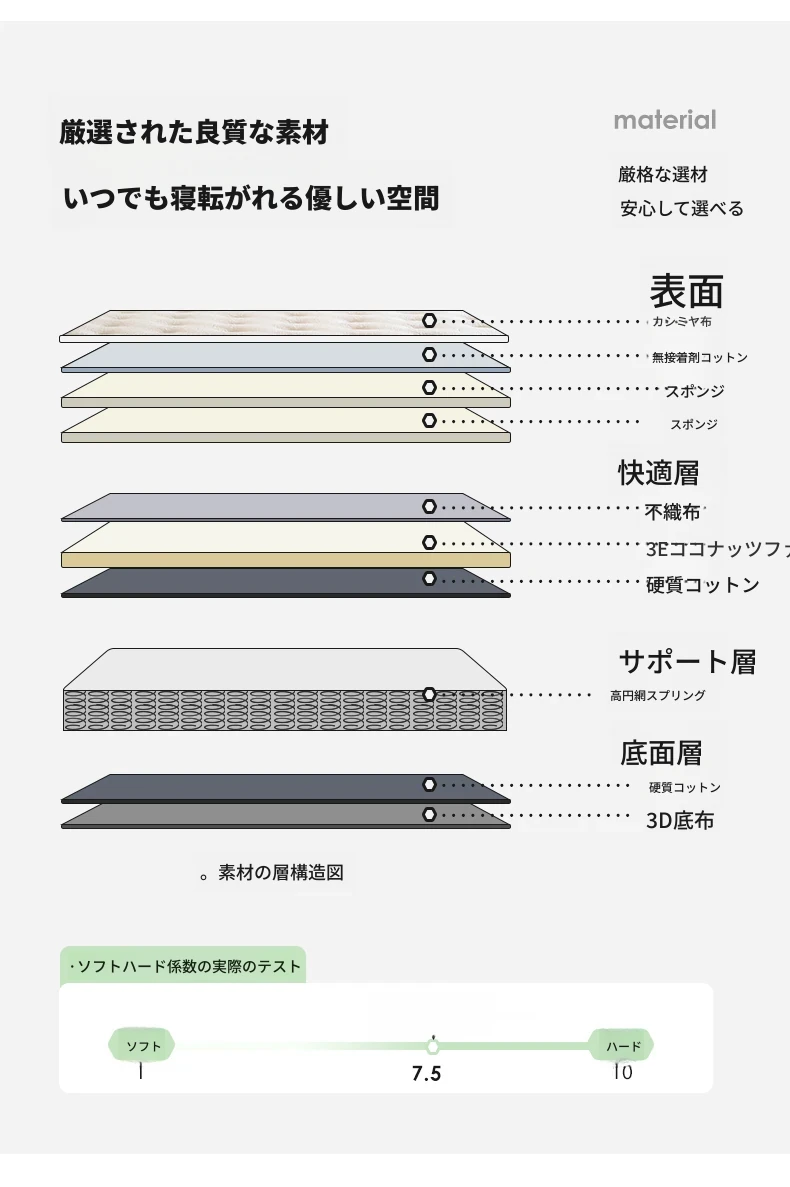 ウォルキーキャメルカシミヤ背中保護エコココナッツマットレス - 柔らかさと硬さの絶妙なバランスを実現した、厚みのあるスプリングマットレスで快適な眠りをサポート!
